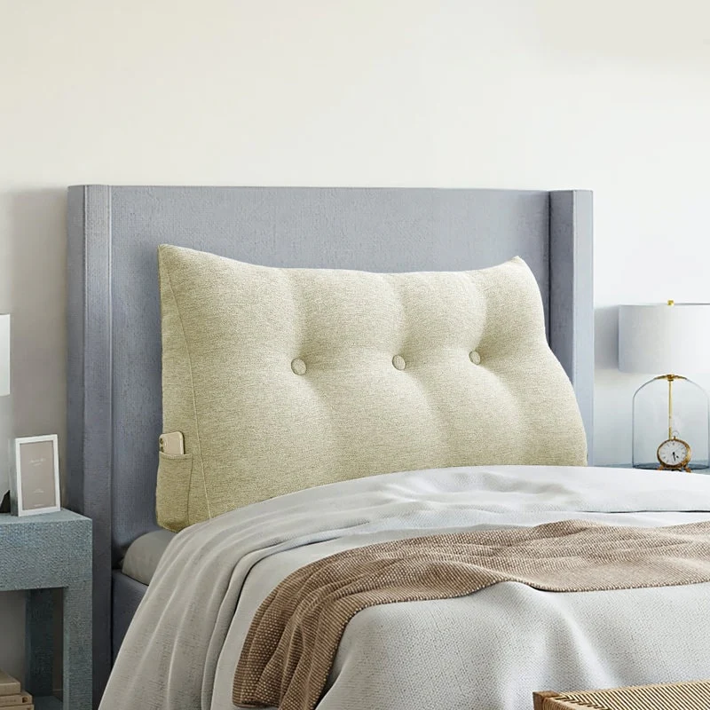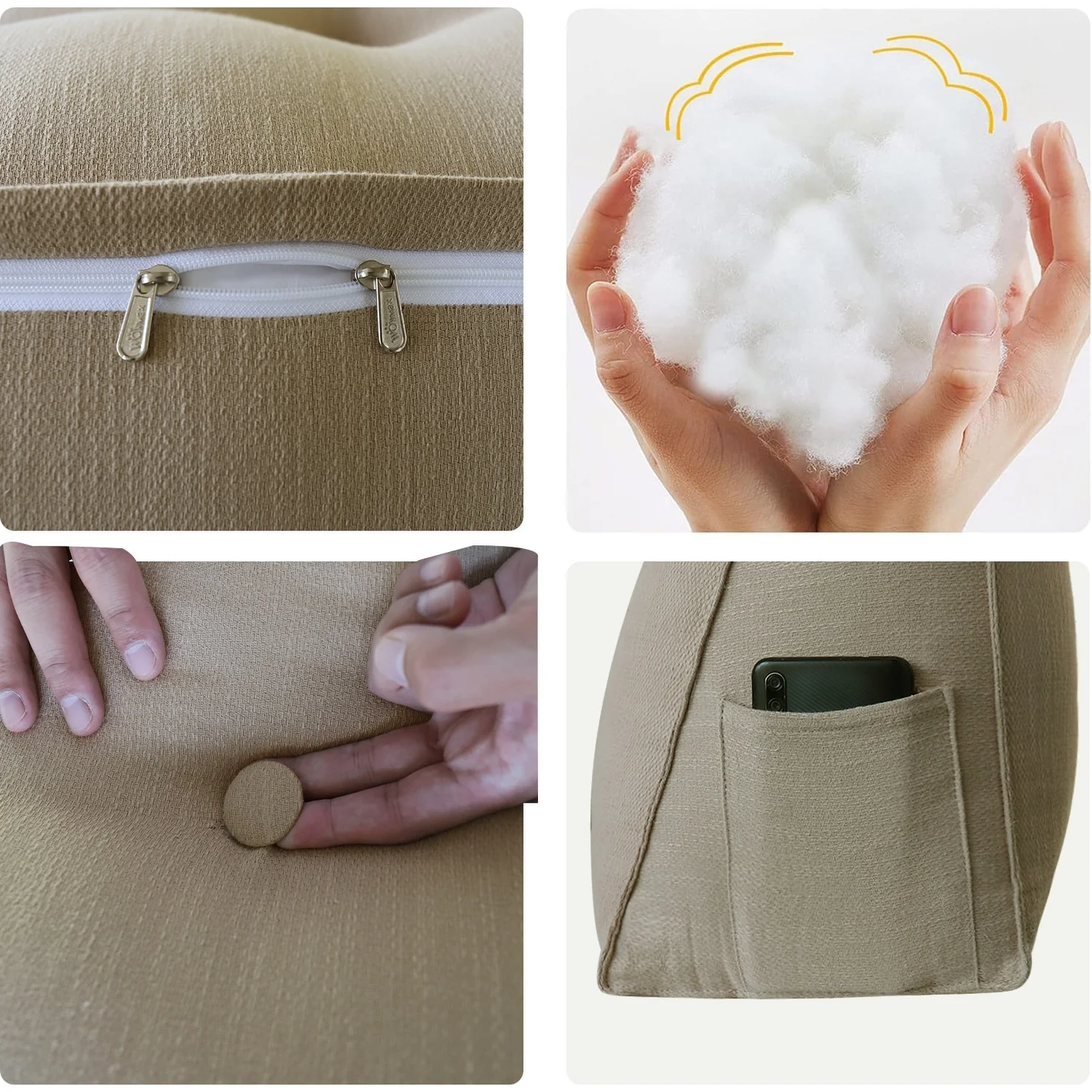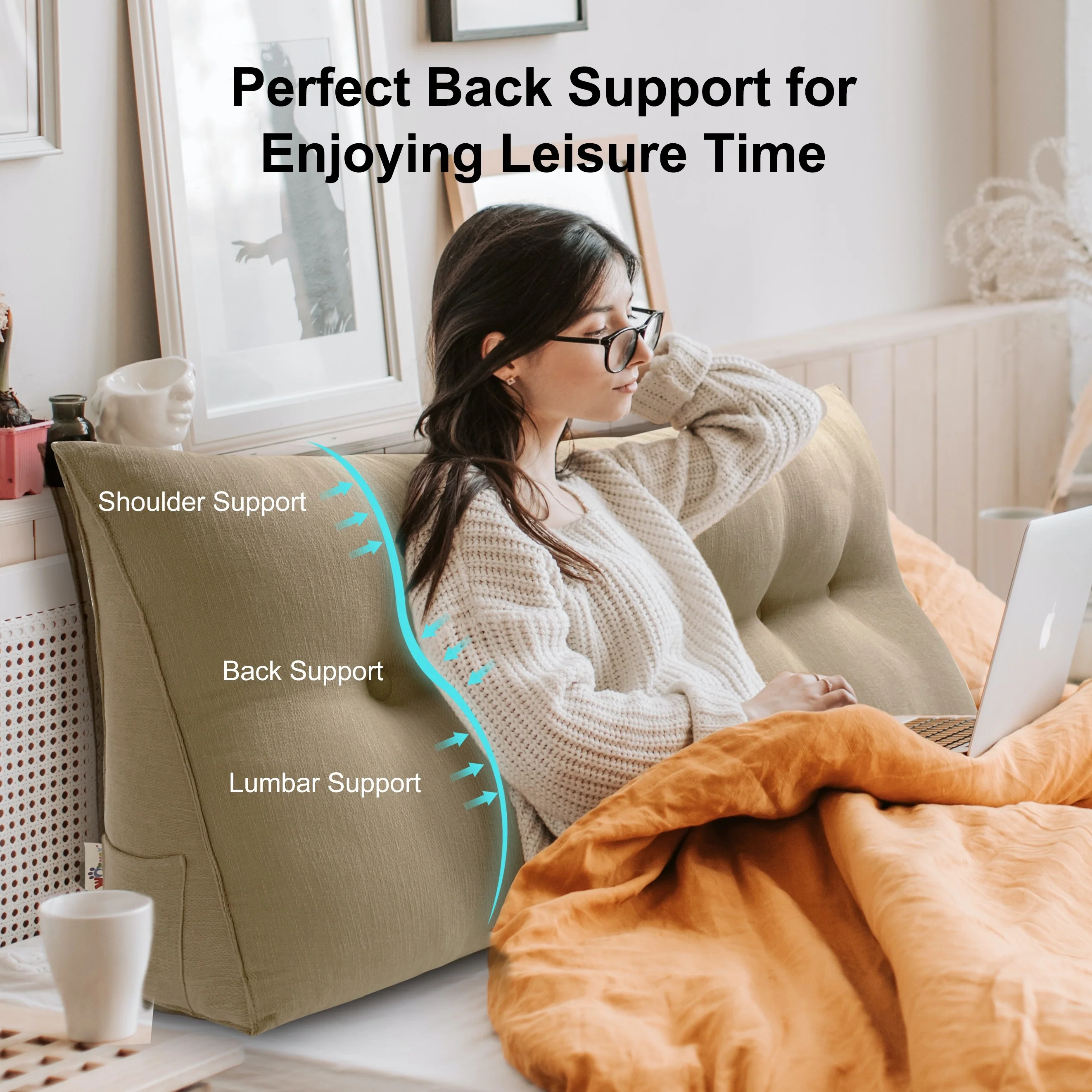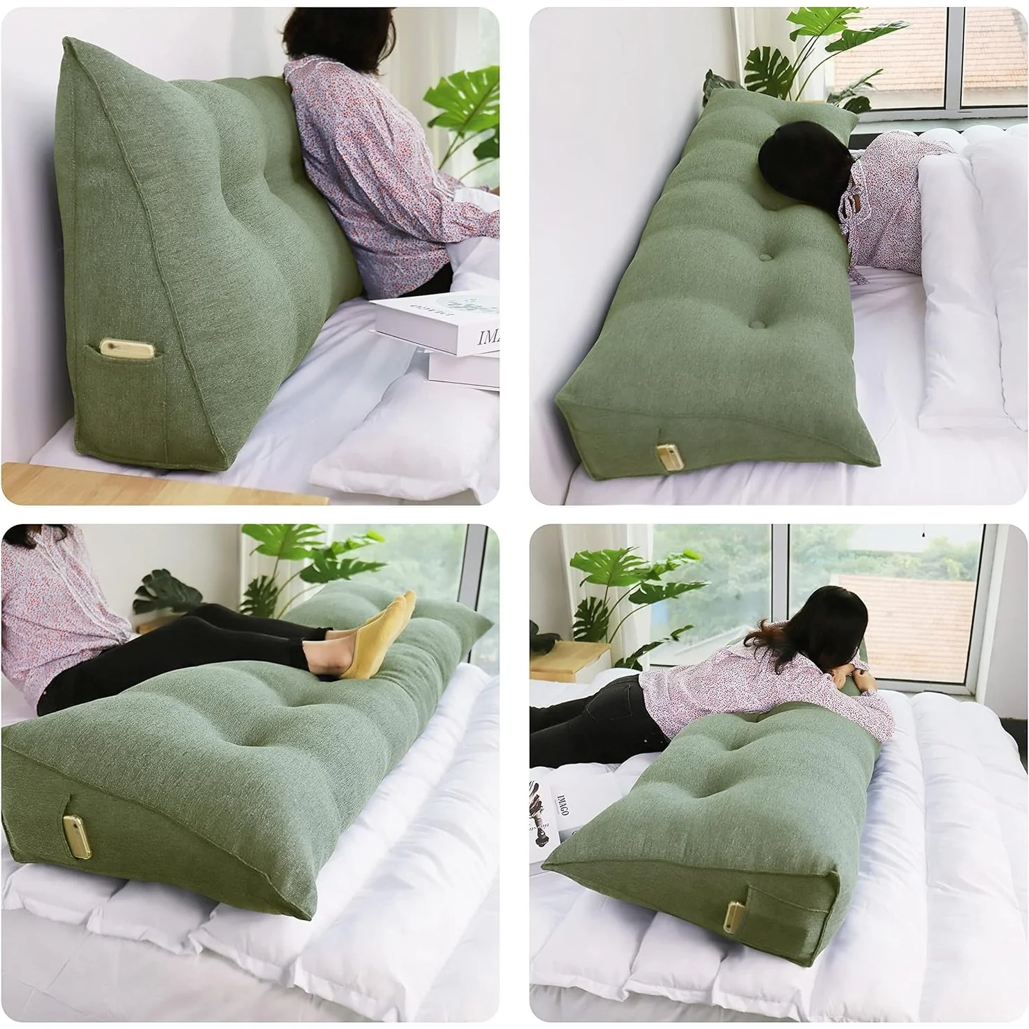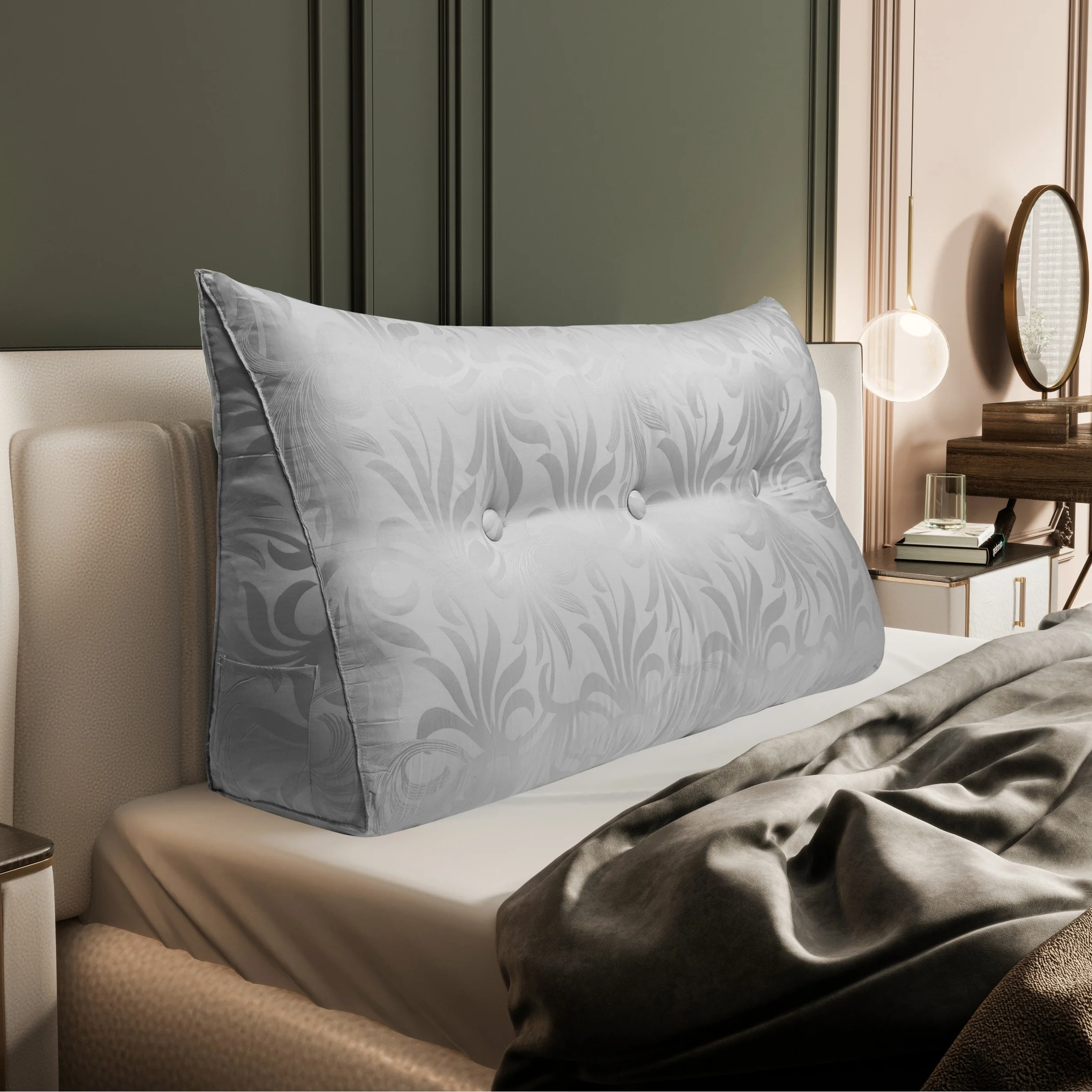 Upgrade your bed with the WOWMAX Bed Rest Wedge Reading Pillow Headboard Back Support Cushion. This versatile pillow provides comfortable and firm back support and works as a removable headboard alternative. Its unique wedge shape fills the gap between your back and the wall, and the button tufts keep the 100% polyester fiberfill in place. Use it for reading, watching TV, body positioning, leg elevation, or as a child bumper. The linen blend cover is detachable and washable, and the pillow fits all standard bed sizes. Choose from a variety of colors to match your decor.