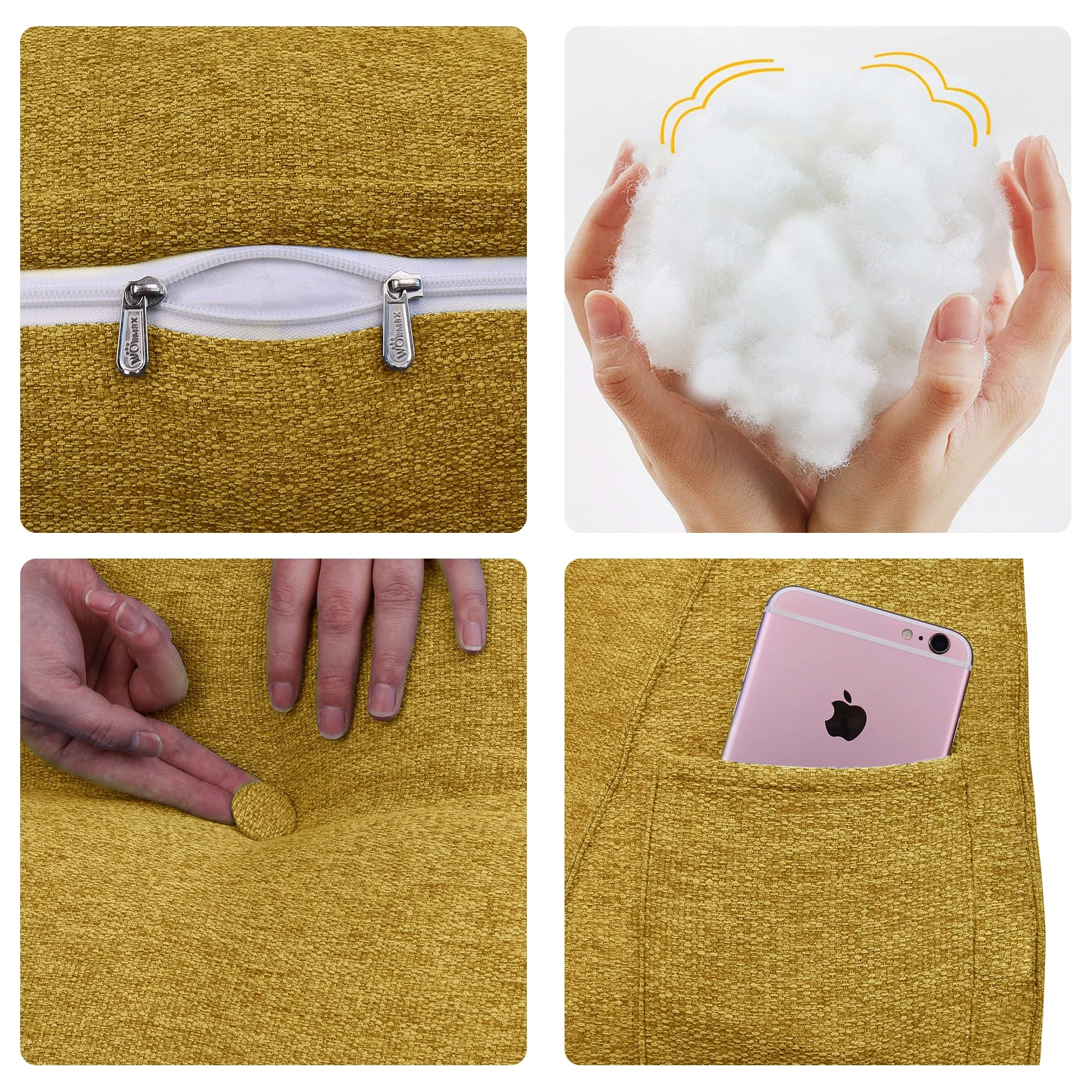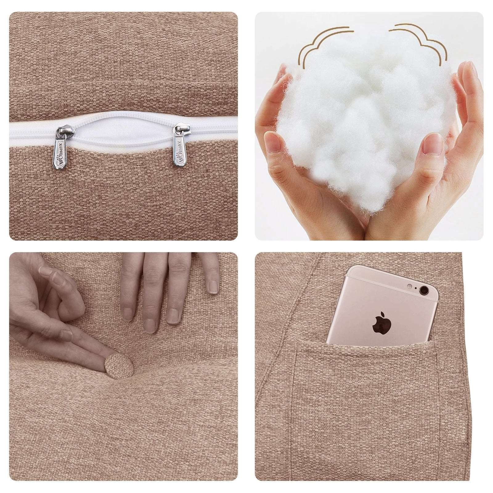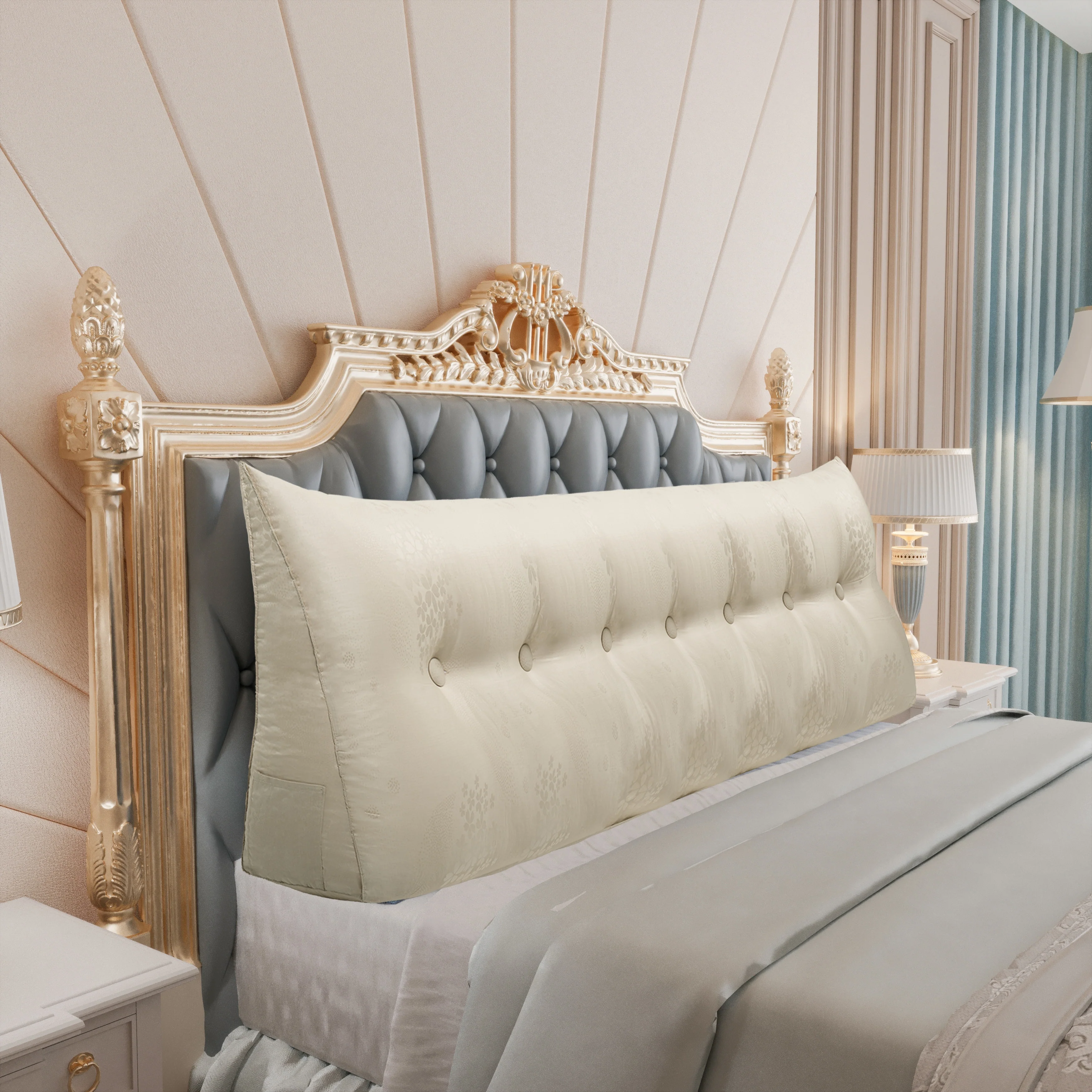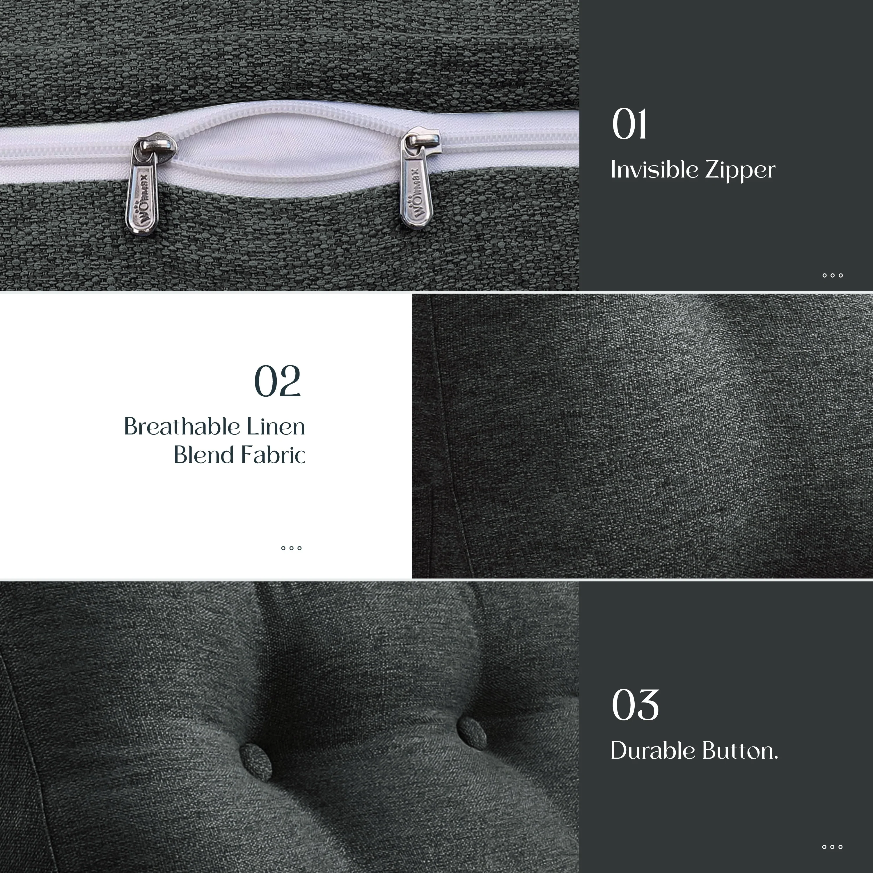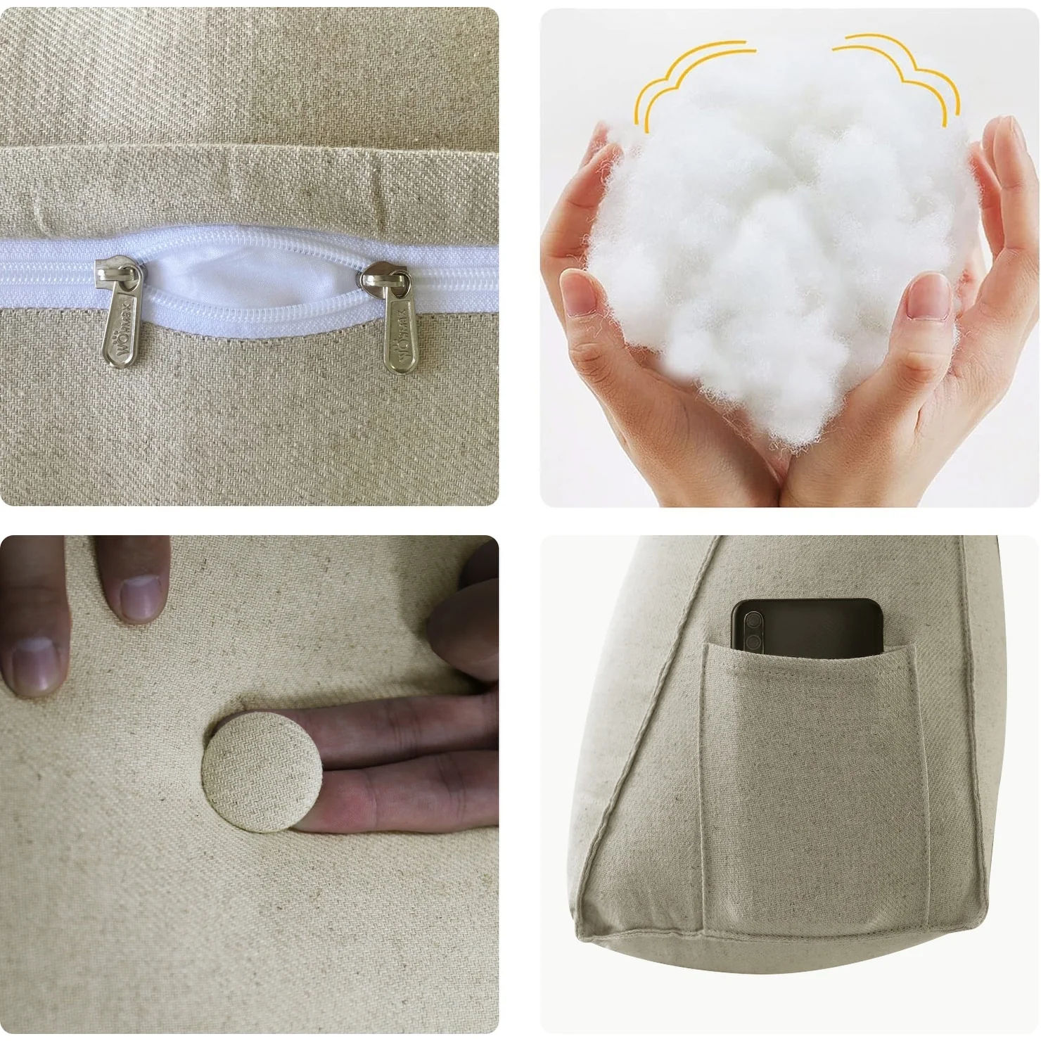 Upgrade your bed with the WOWMAX Bed Rest Wedge Reading Pillow Headboard Back Support Cushion. This versatile pillow provides comfortable and firm back support and works as a removable headboard alternative. Its unique wedge shape fills the gap between your back and the wall, and the button tufts keep the 100% polyester fiberfill in place. Use it for reading, watching TV, body positioning, leg elevation, or as a child bumper. The linen blend cover is detachable and washable, and the pillow fits all standard bed sizes. Choose from a variety of colors to match your decor.