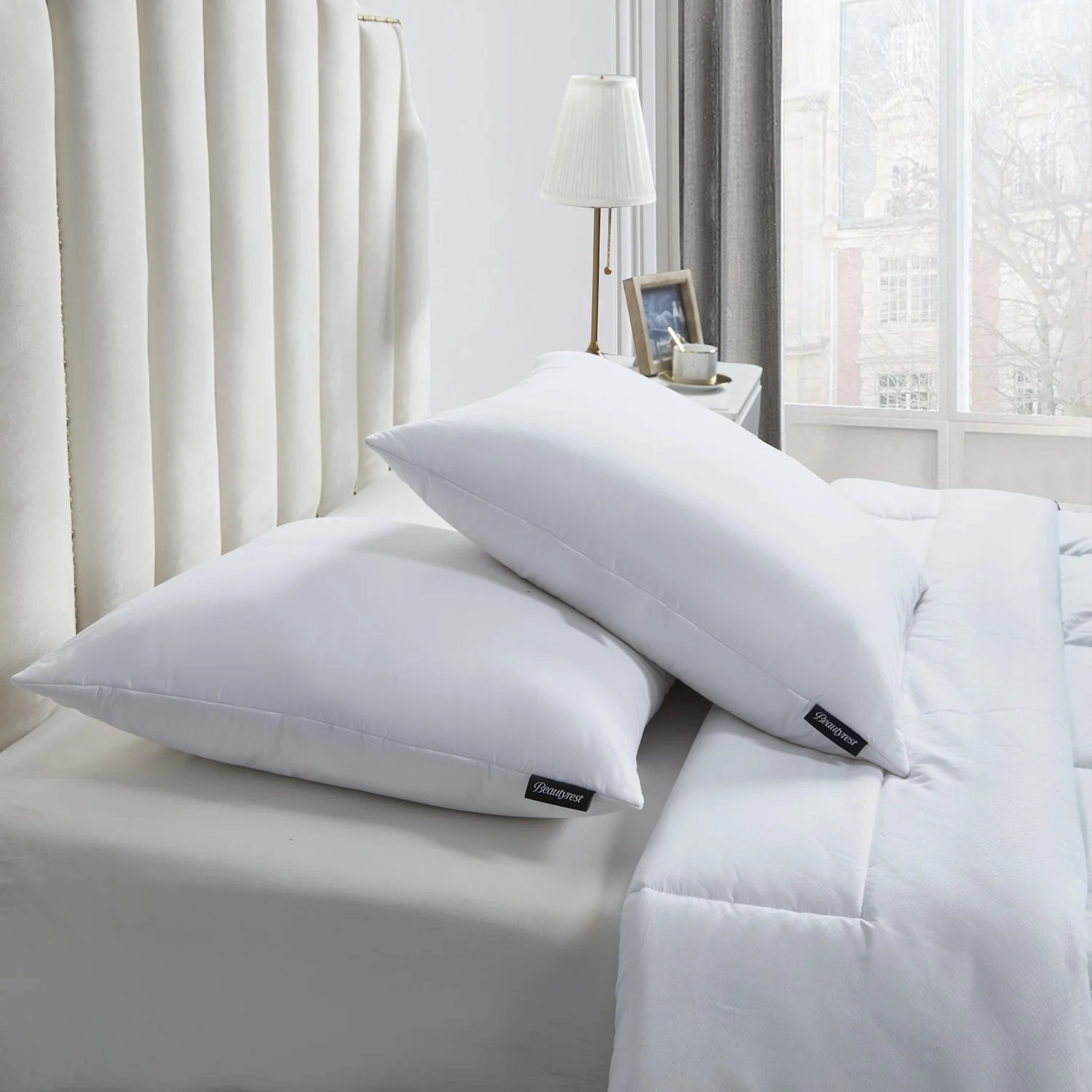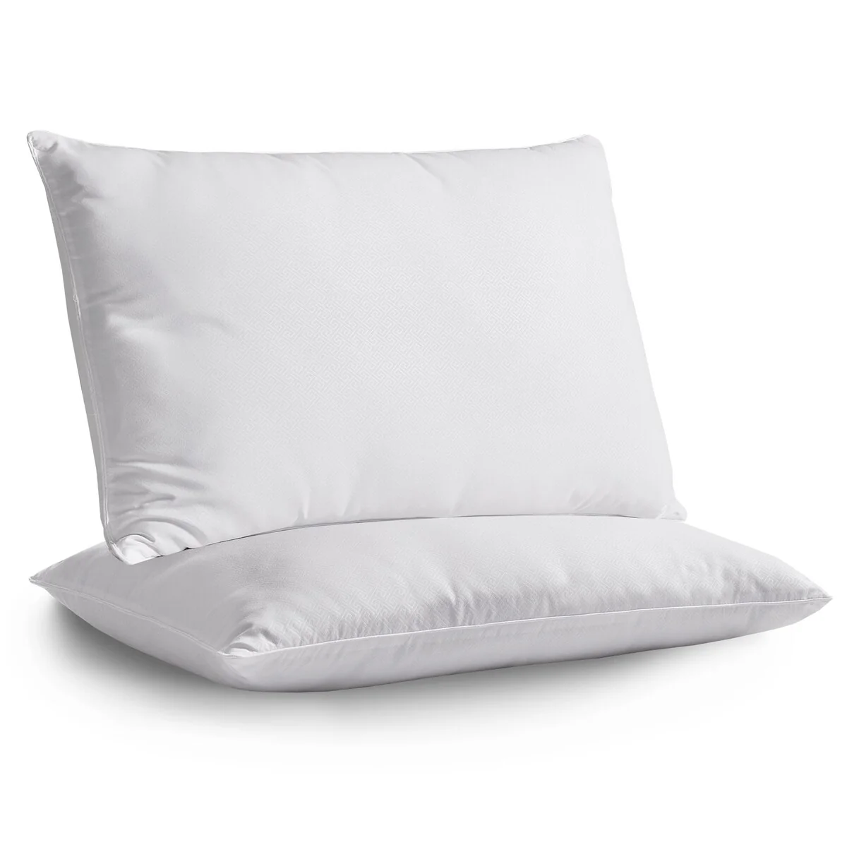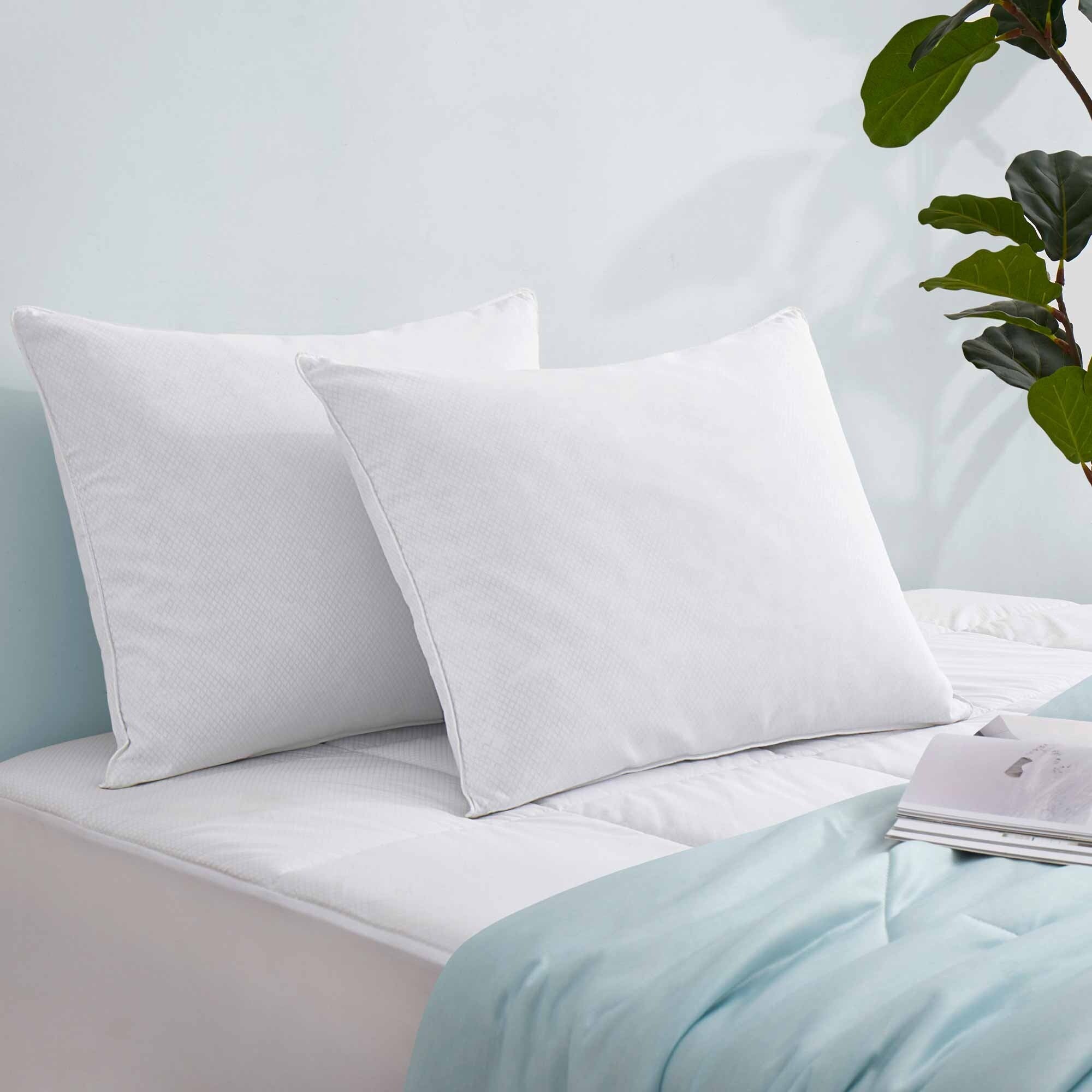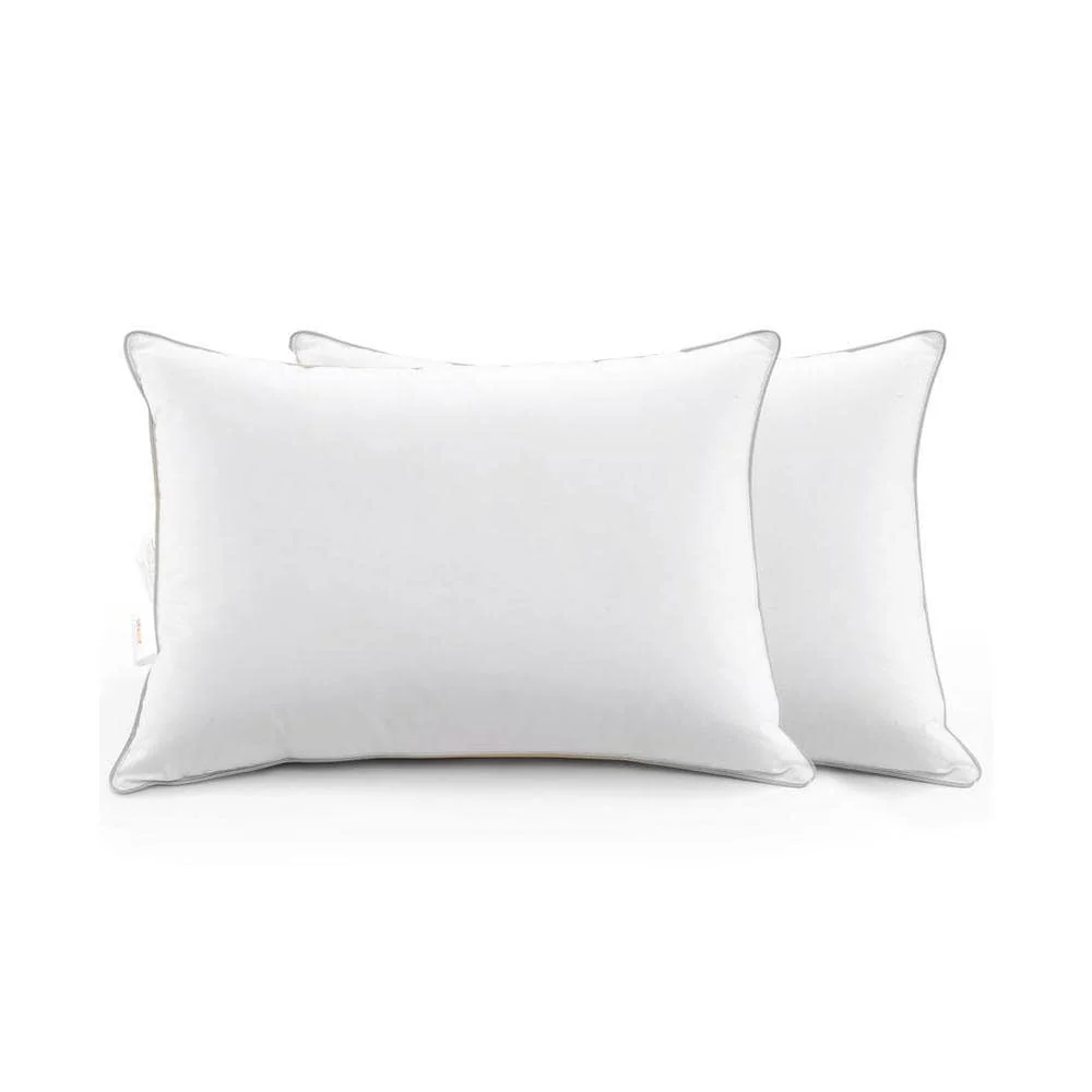 Set of 2 Goose Feather Bed Pillows Medium-Firm for Back and Side Sleepers - White