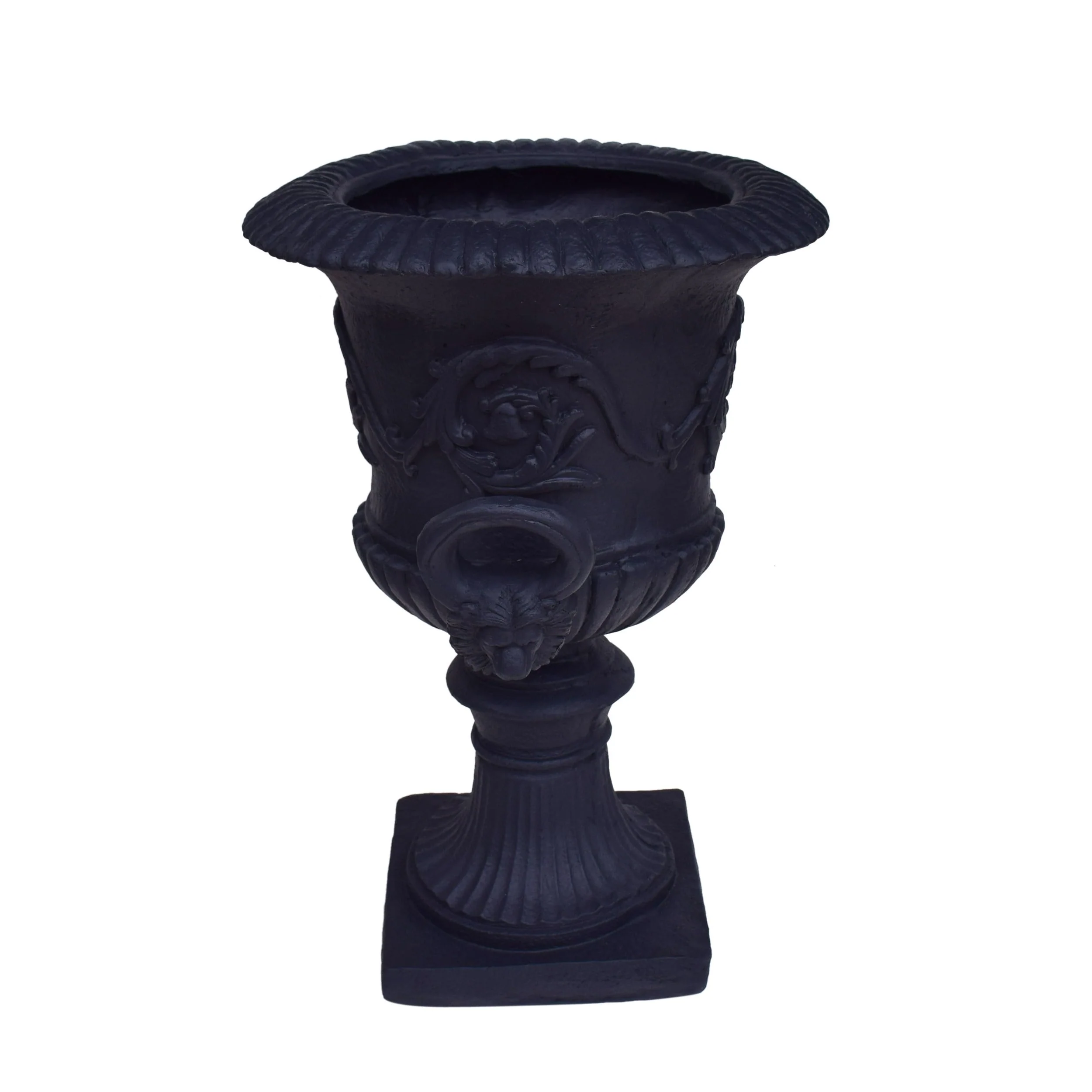 ELEGANT STYLE - Black lightweight concrete gives this planter a high-end, faux-stone appearance. This piece boasts a Roman design with botanical accents and a square base.