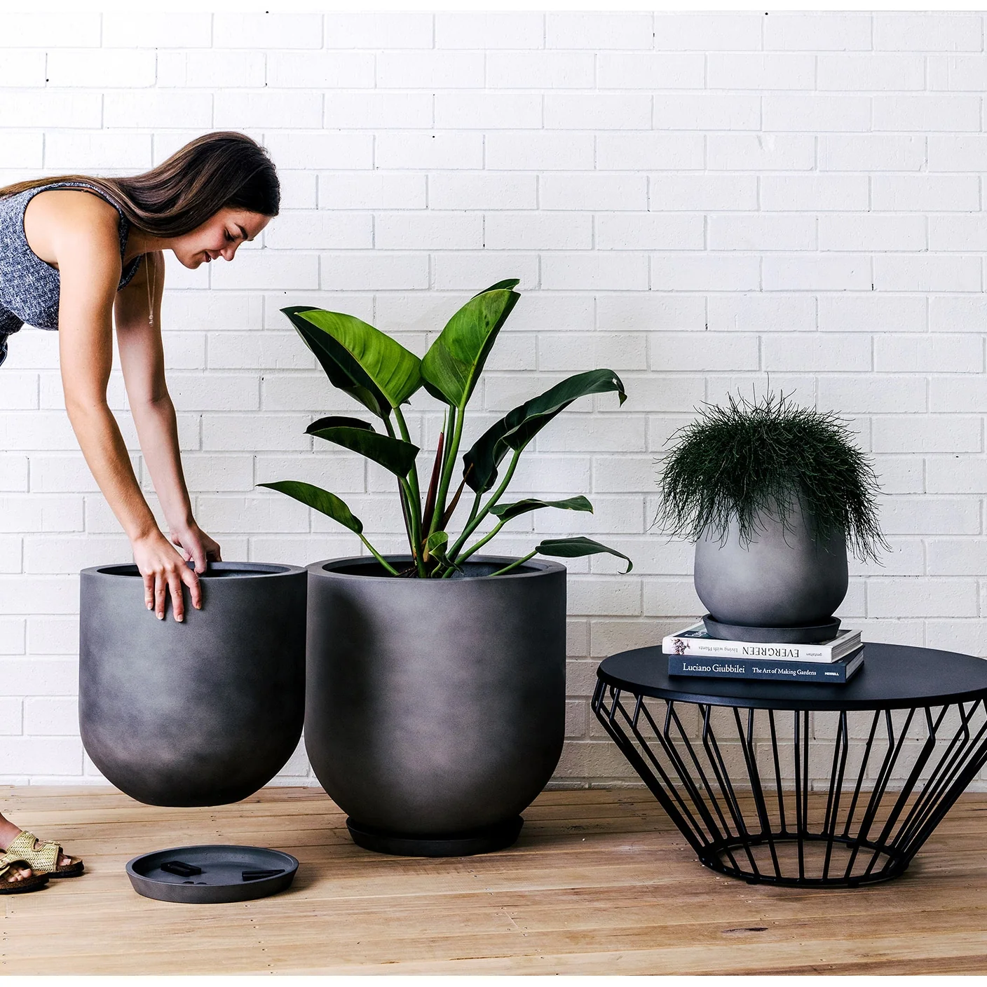 Protect floor/furniture surfaces from water damage when you place this DreamPatio Fiberstone saucer beneath your potted plants. Available in 3 sizes to fit your pots perfectly, this saucer is made of sturdy yet lightweight fiberstone (a mixture of fiberglass, stone powder and resin) for easy portability. These saucers are perfectly compatible with the DreamPatio Fiberstone Planters range.