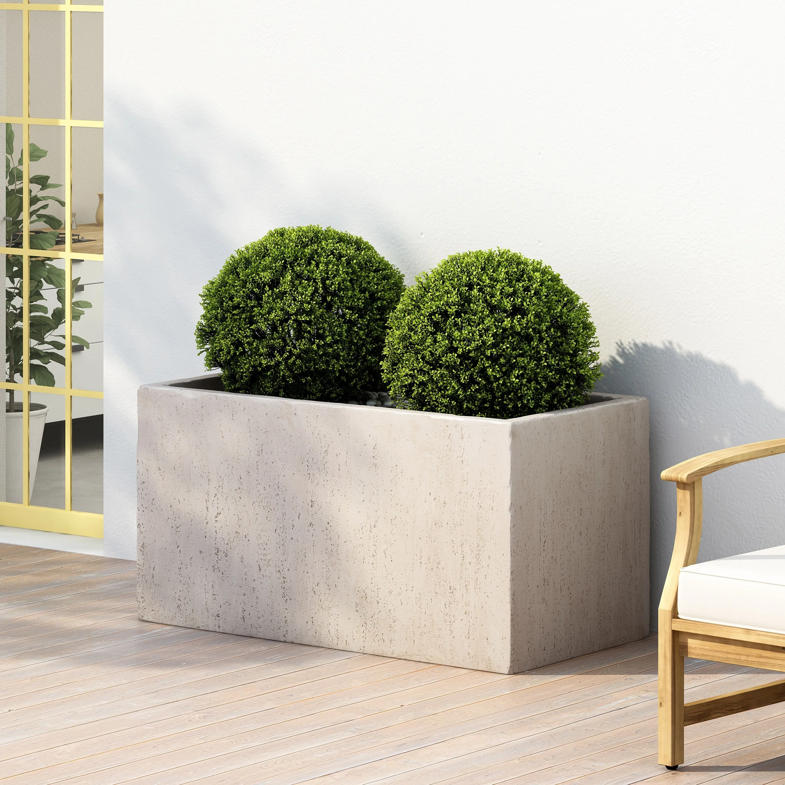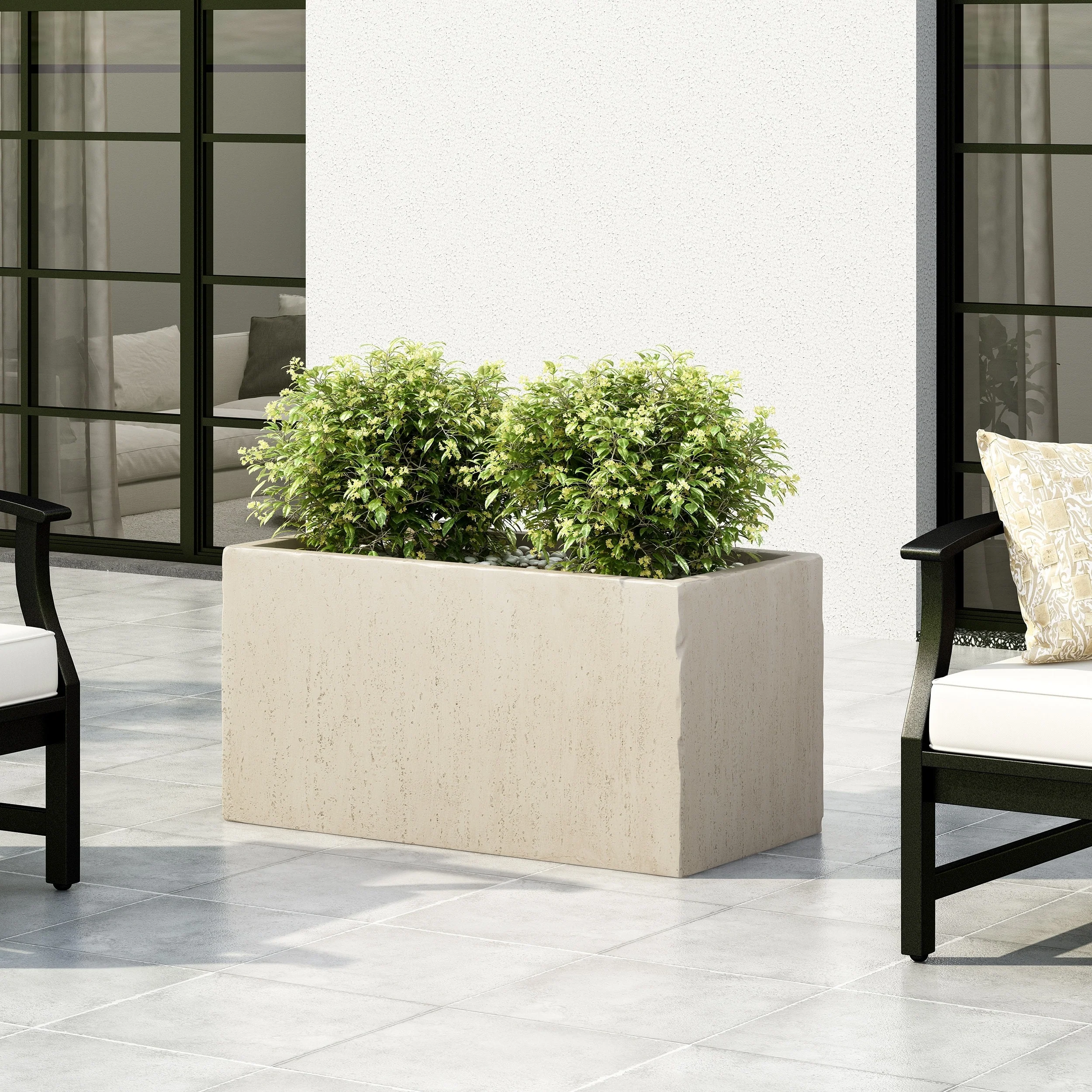 Elevate your outdoor space with a simple and effortless touch. From its simple rectangular design to its lightweight concrete structure, our planter will instantly enhance your patio or backyard space with style. This accessory offers a durable construction to ensure that your plant has a stable home to grow. Complemented with a stone-like finish, this planter offers a classic look to your garden or porch. Perfectly crafted to hold your plants, this piece is the perfect accessory for your green thumb.