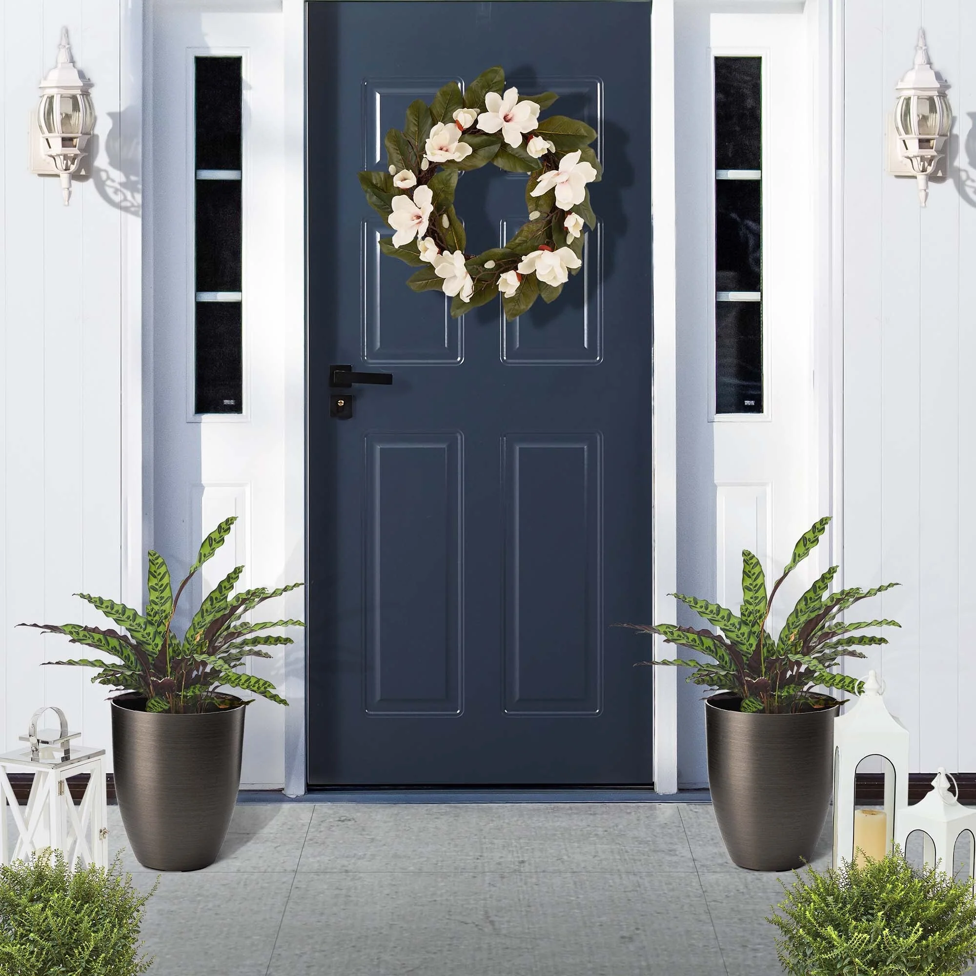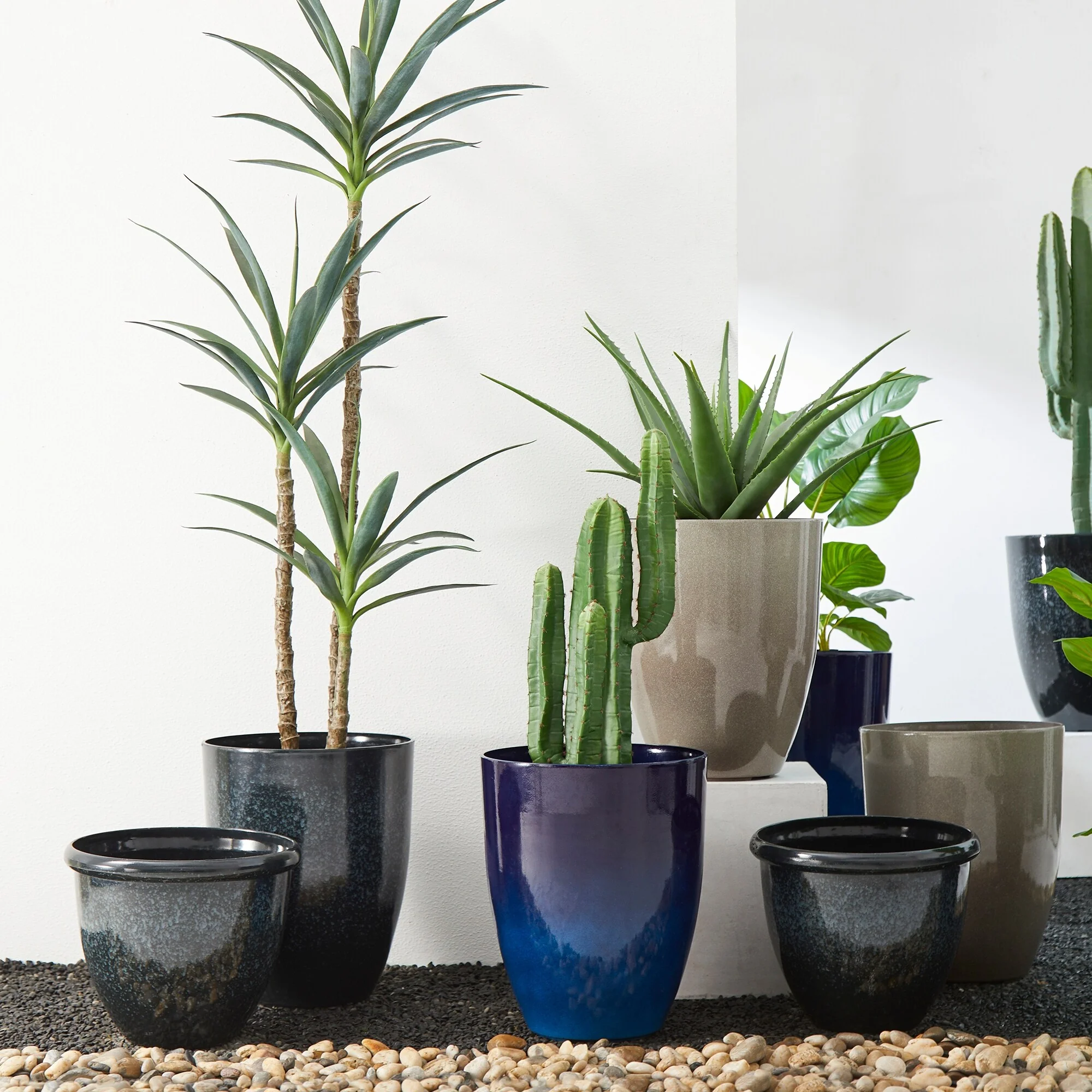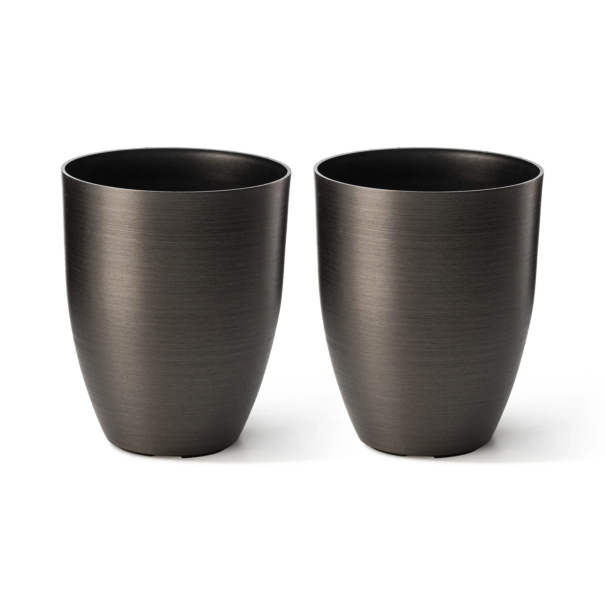 Enhance your indoor or outdoor space with this stylish set of 2 tall planters. Our planters come with hassle-free Knock-out drainage holes for convenient use. This decorative and versatile set is a perfect choice to showcase your favorite greenery or blooms, forming an intriguing and vibrant landscape that helps to transform your garden, patio, or home space into a beautiful, delightful, and relaxing environment.