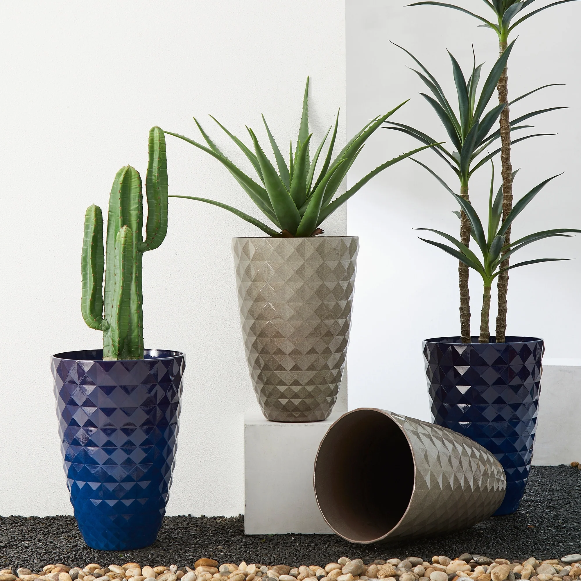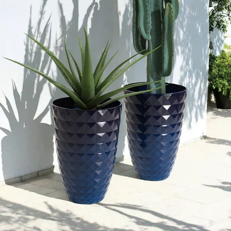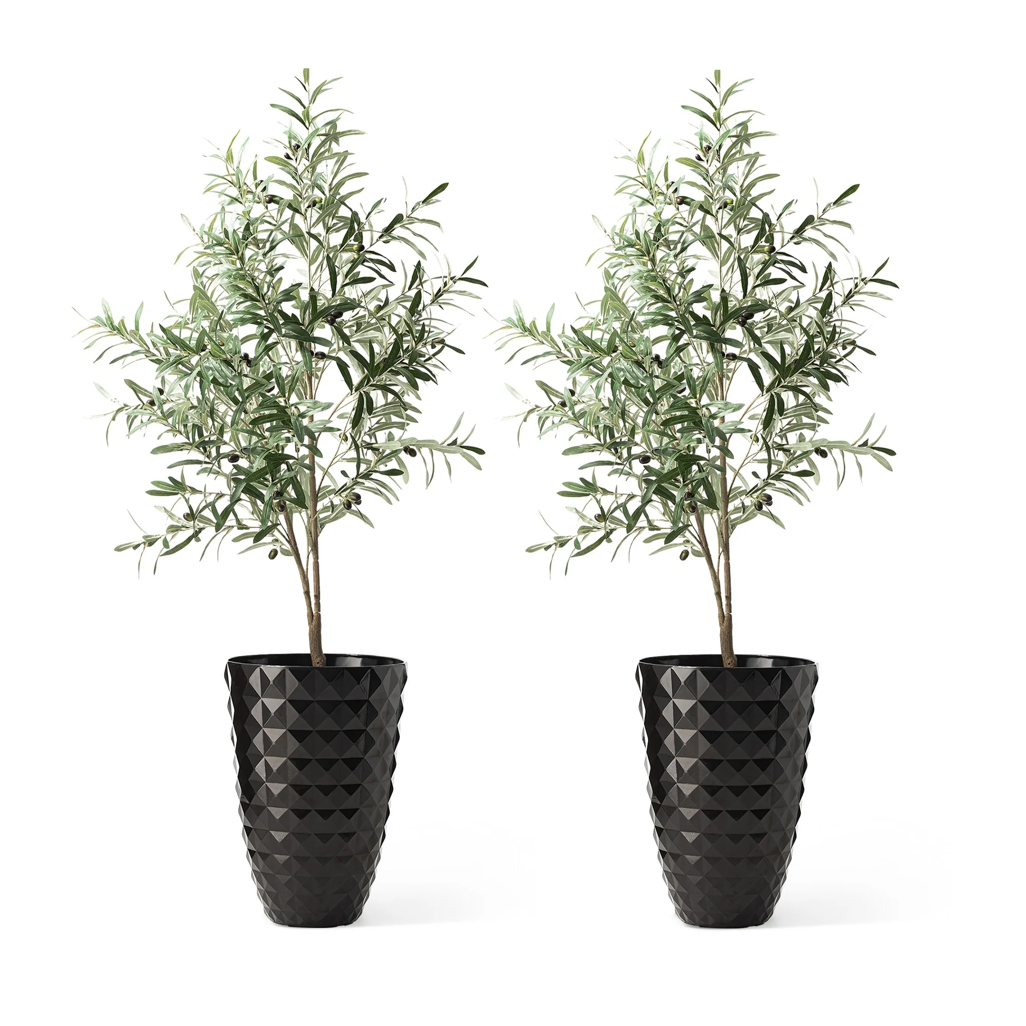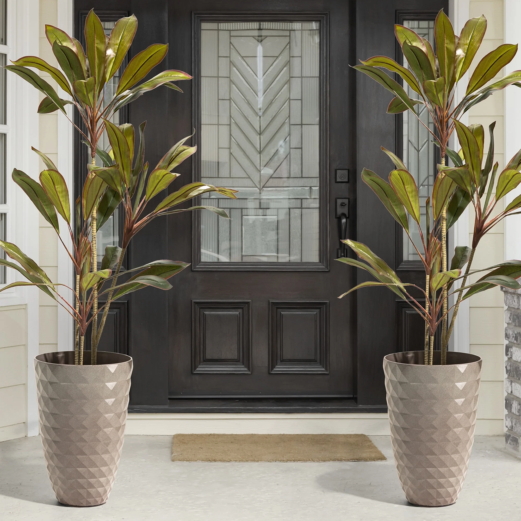Enhance your indoor or outdoor space with this stylish set of 2 tall planters. This decorative and versatile set is a perfect choice to showcase your favorite greenery or blooms, forming an intriguing and vibrant landscape that helps to transform your garden, patio, or home space into a beautiful, delightful, and relaxing environment.
