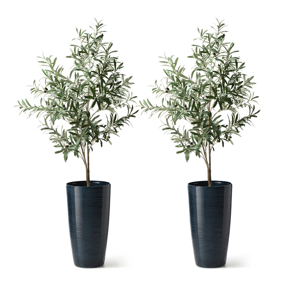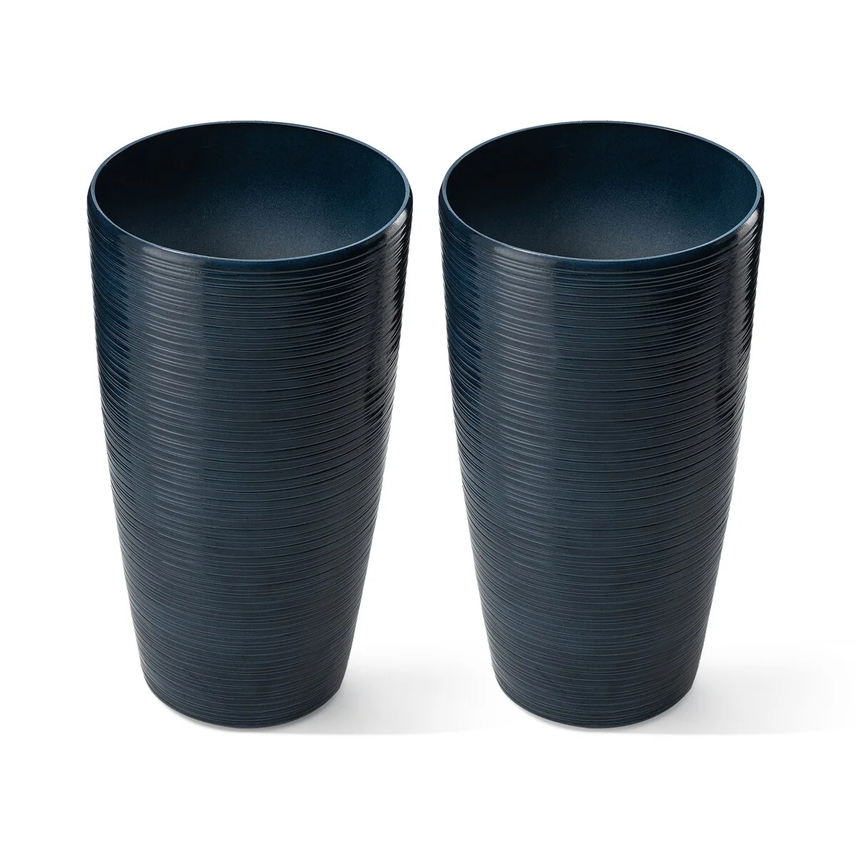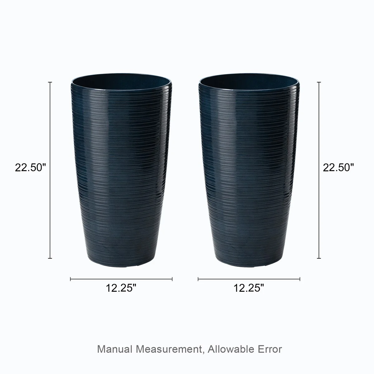 Enhance your indoor or outdoor space with this stylish set of 2 tall planters. Crafted from a durable, recyclable resin and stone mixture with a UV-protected finish, they are eco-friendly, safe, and weather-resistant, perfect for all seasons. The V-shape round design, coupled with elegant and charm faux ceramic finish and brushed texture, effortlessly blends with various decor styles, creating an eye-catching focal point. Our planters come with hassle-free Knock-out drainage holes for convenient use. This decorative and versatile set is a perfect choice to showcase your favorite greenery or blooms, forming an intriguing and vibrant landscape that helps to transform your garden, patio, or home space into a beautiful, delightful, and relaxing environment.