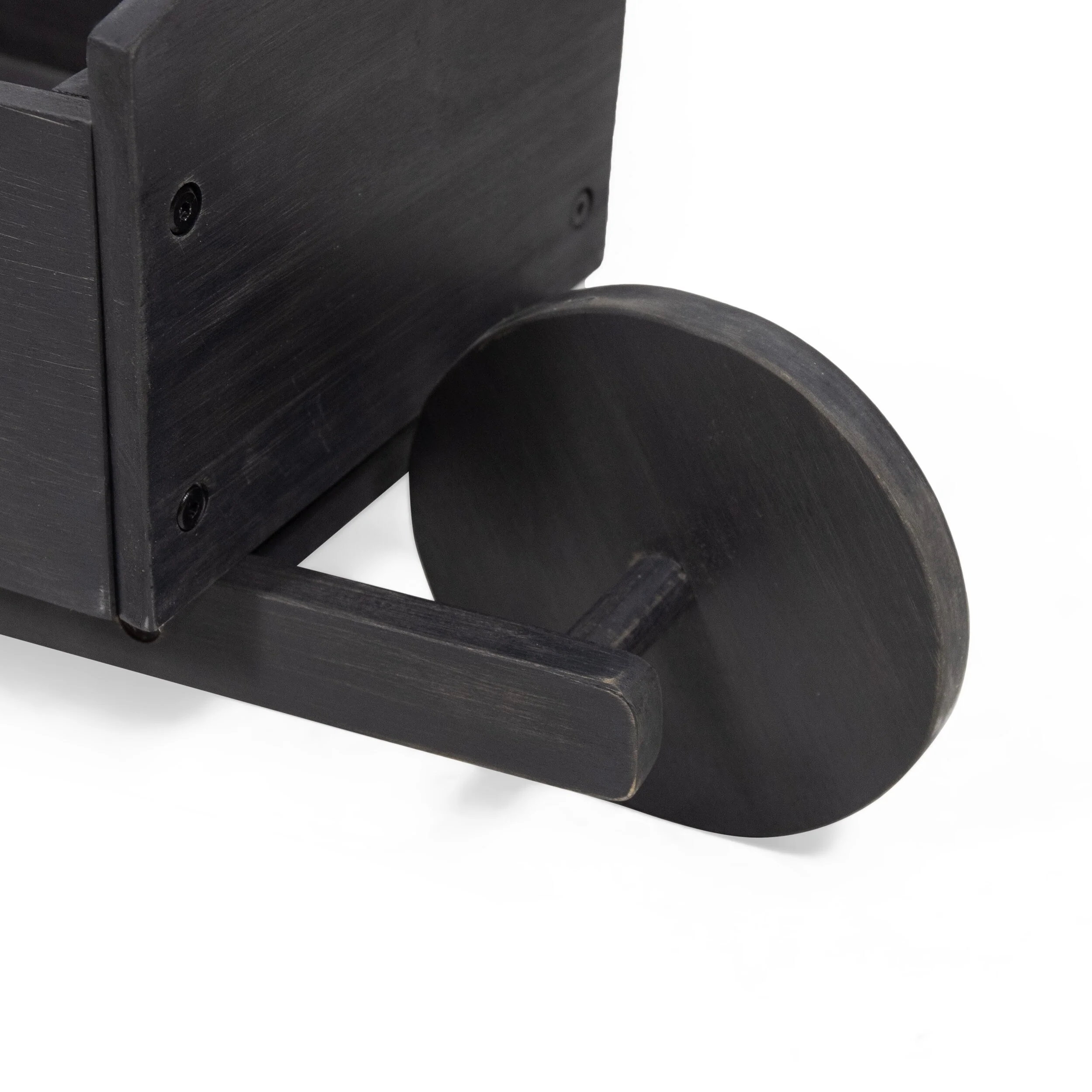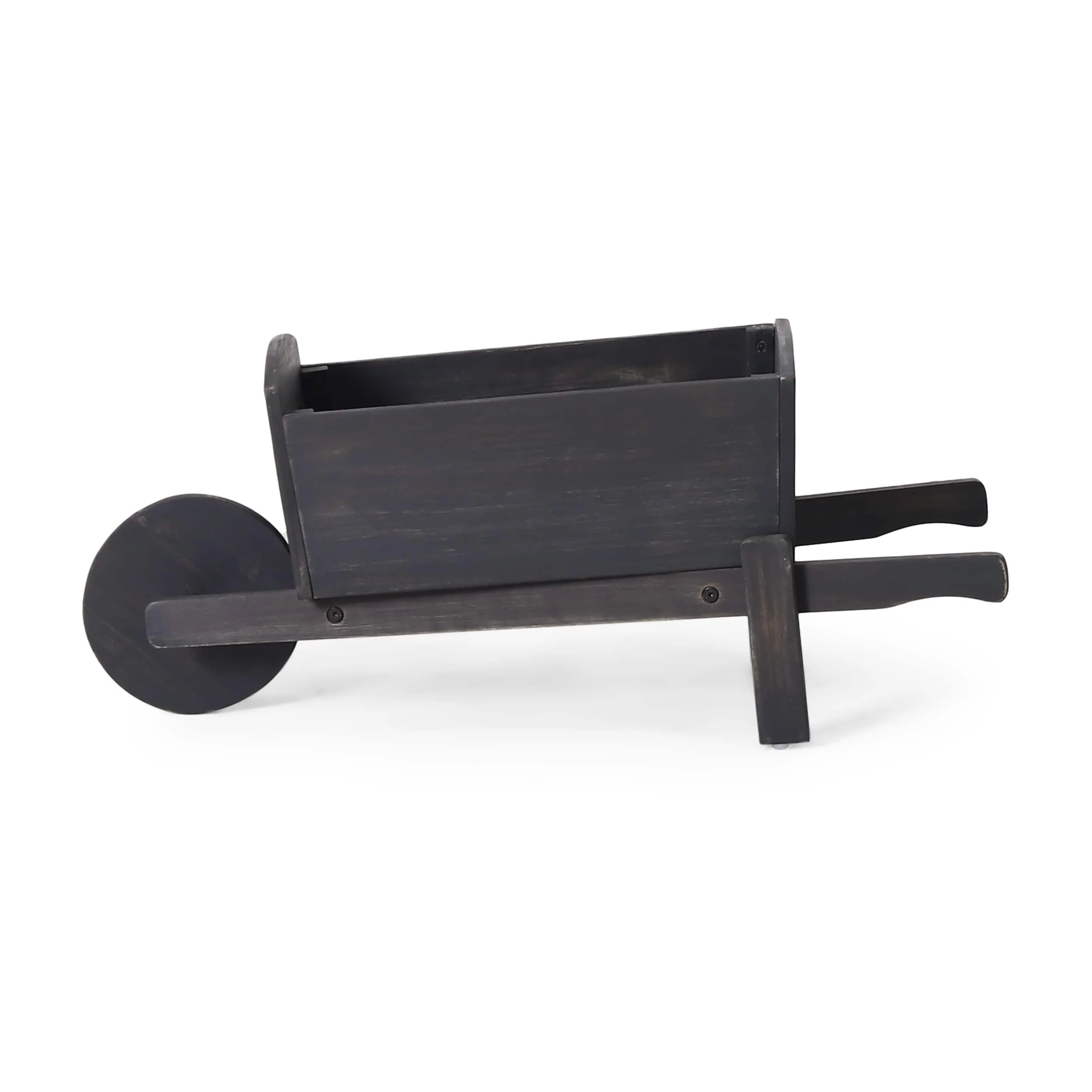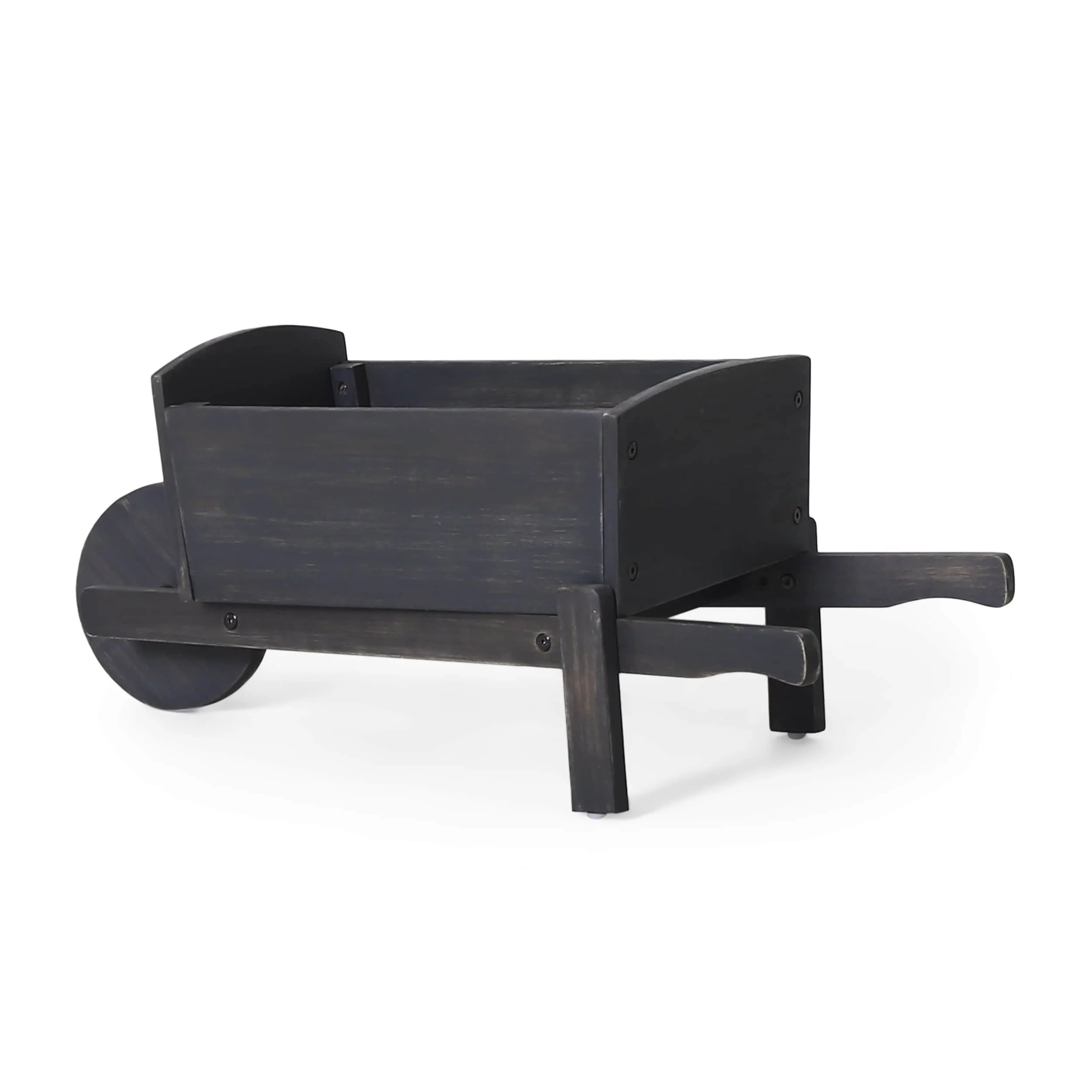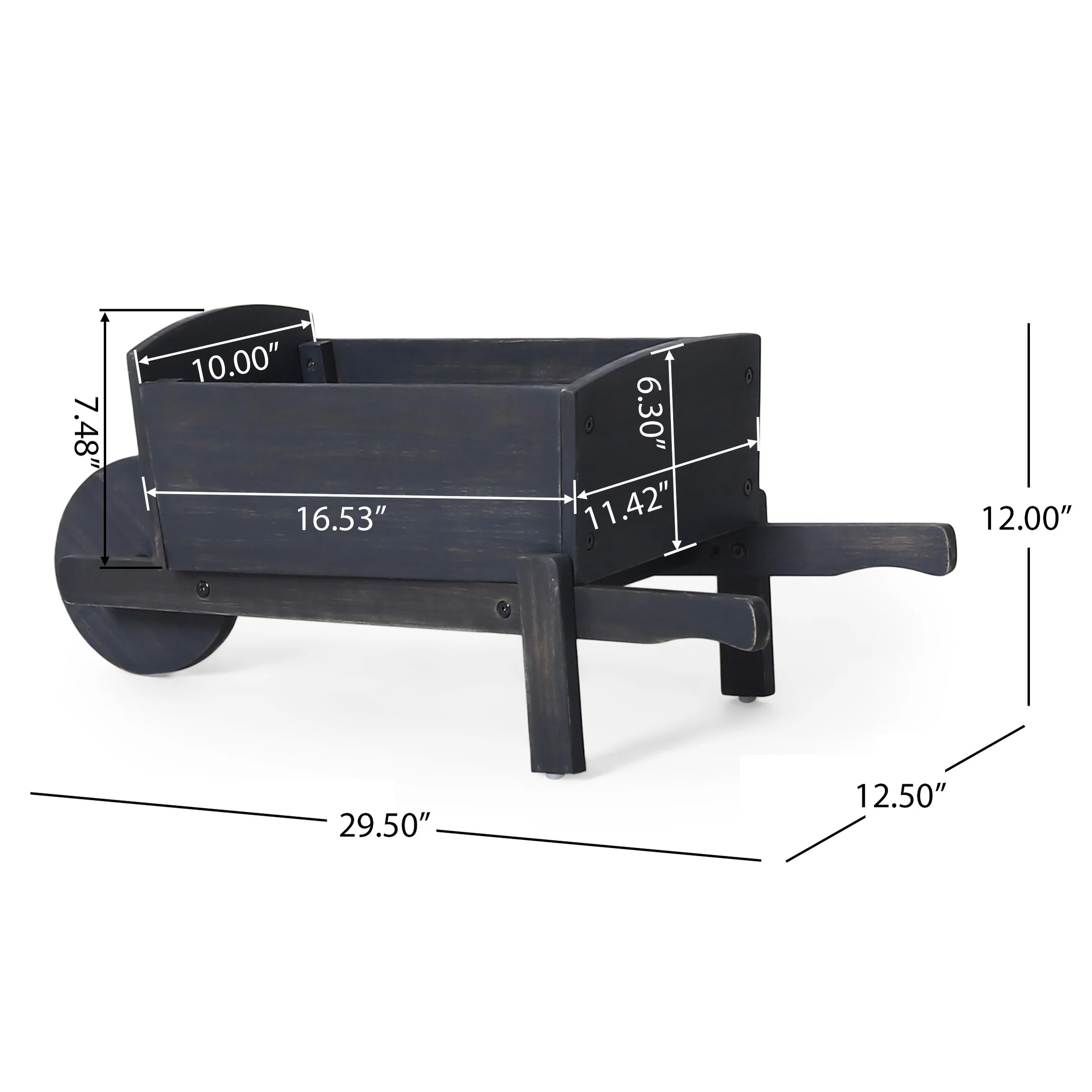 Offer your outdoor space the charisma it deserves with eye-catching sophistication and excellent function. From its charming wheelbarrow design to its rich acacia wood structure, our planter will instantly enhance your patio or backyard with delightful farmhouse aesthetics. This accessory offers durable construction and a drainage hole to ensure that your plant has a stable home to grow. Complemented with a dark gray finish, this planter offers a classic look to your garden or porch. Perfectly crafted to hold your plants, this piece is the perfect accessory for your green thumb.