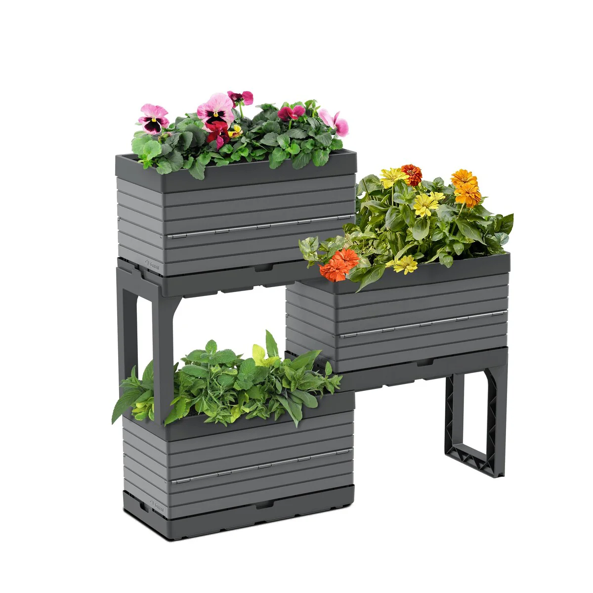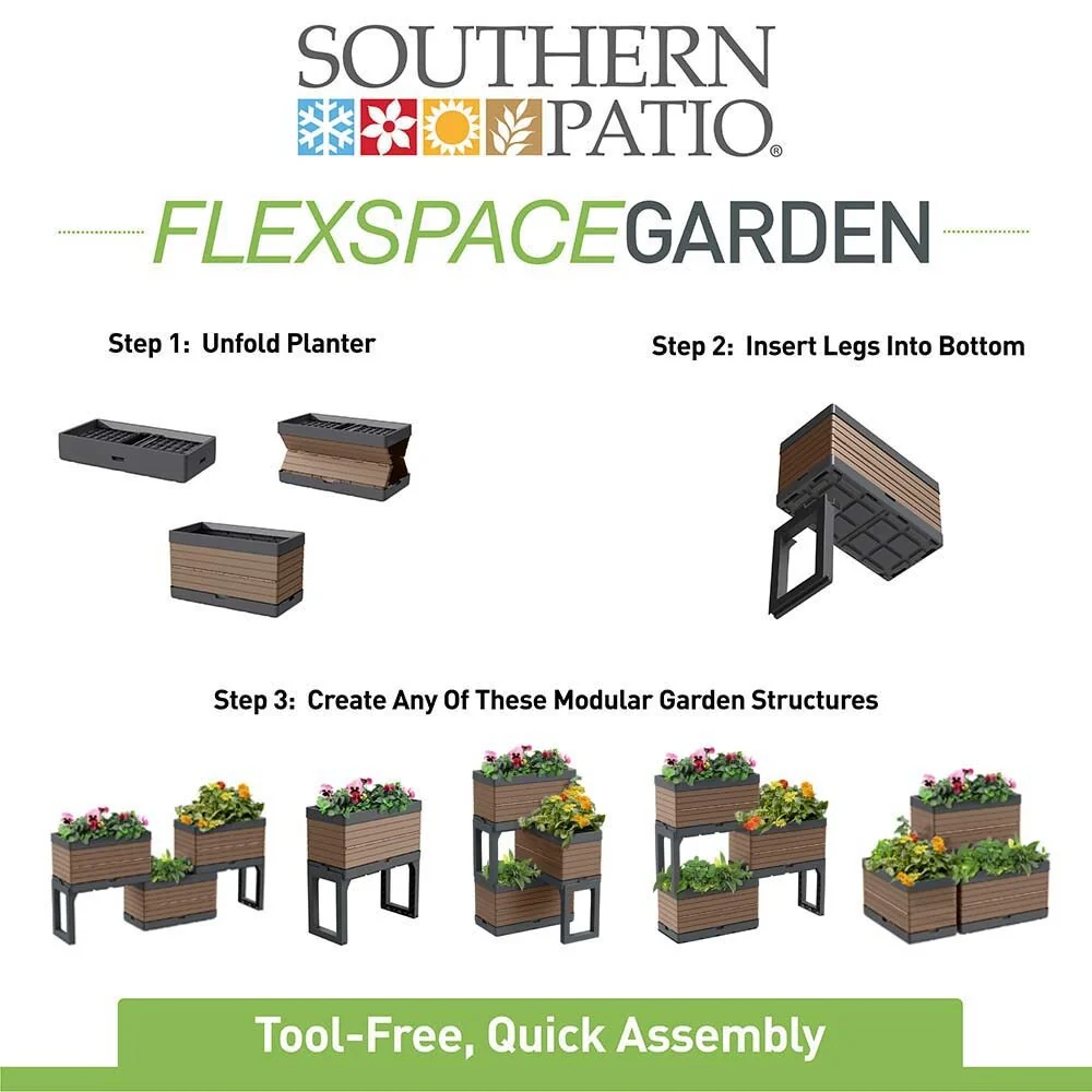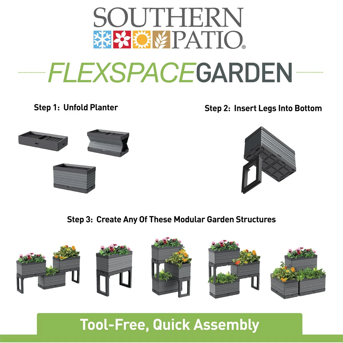 Elevate your gardening game with Southern Patio's FlexSpace Modular Planter Garden! This durable garden is constructed with long-lasting polypropylene and its flexible, modular design allows for easy gardening anywhere. These planter boxes can be repurposed as storage bins or conveniently collapsed for flat storage when not in use. It's perfect for small spaces like balconies and patios, giving you the convenience of hassle-free and tool-free assembly.