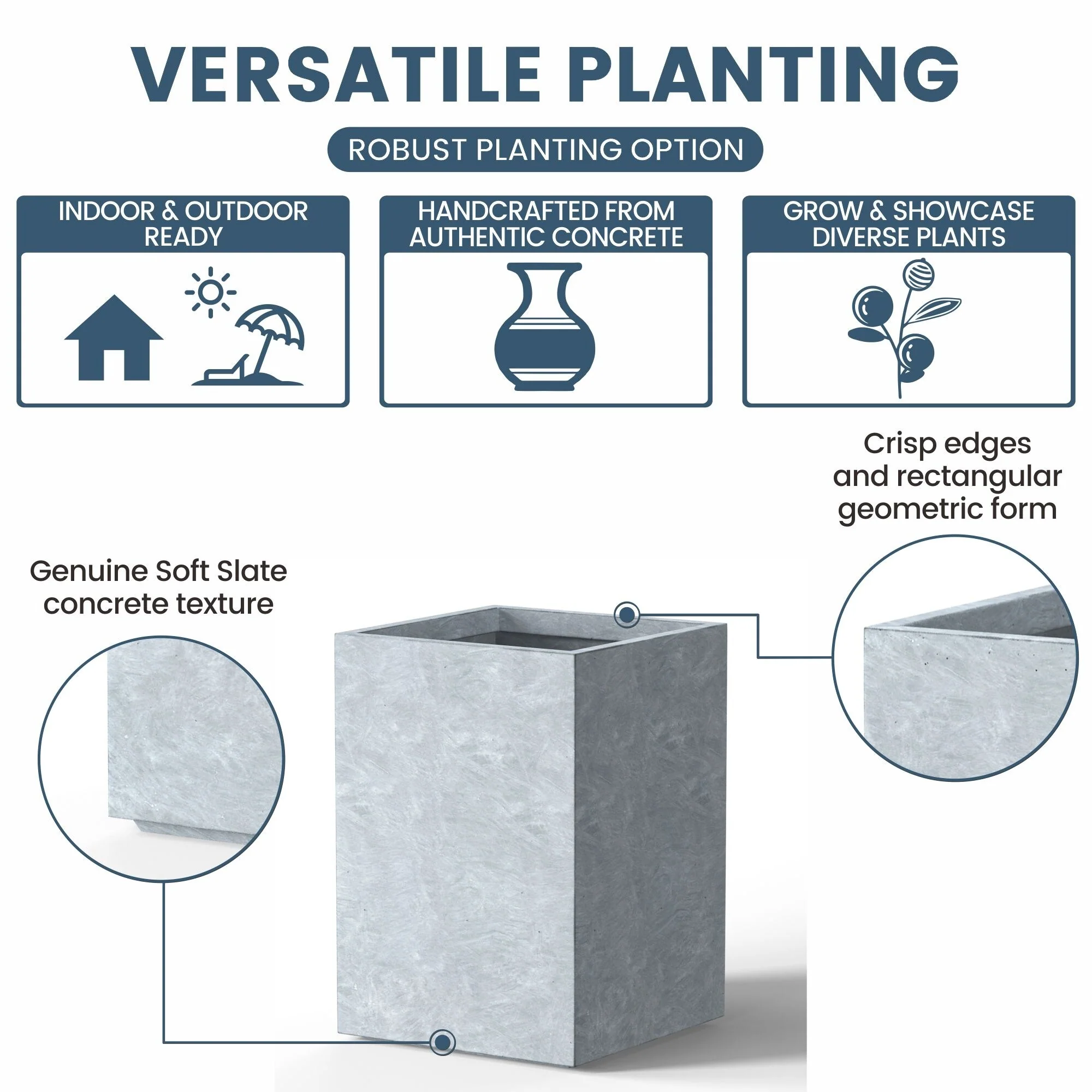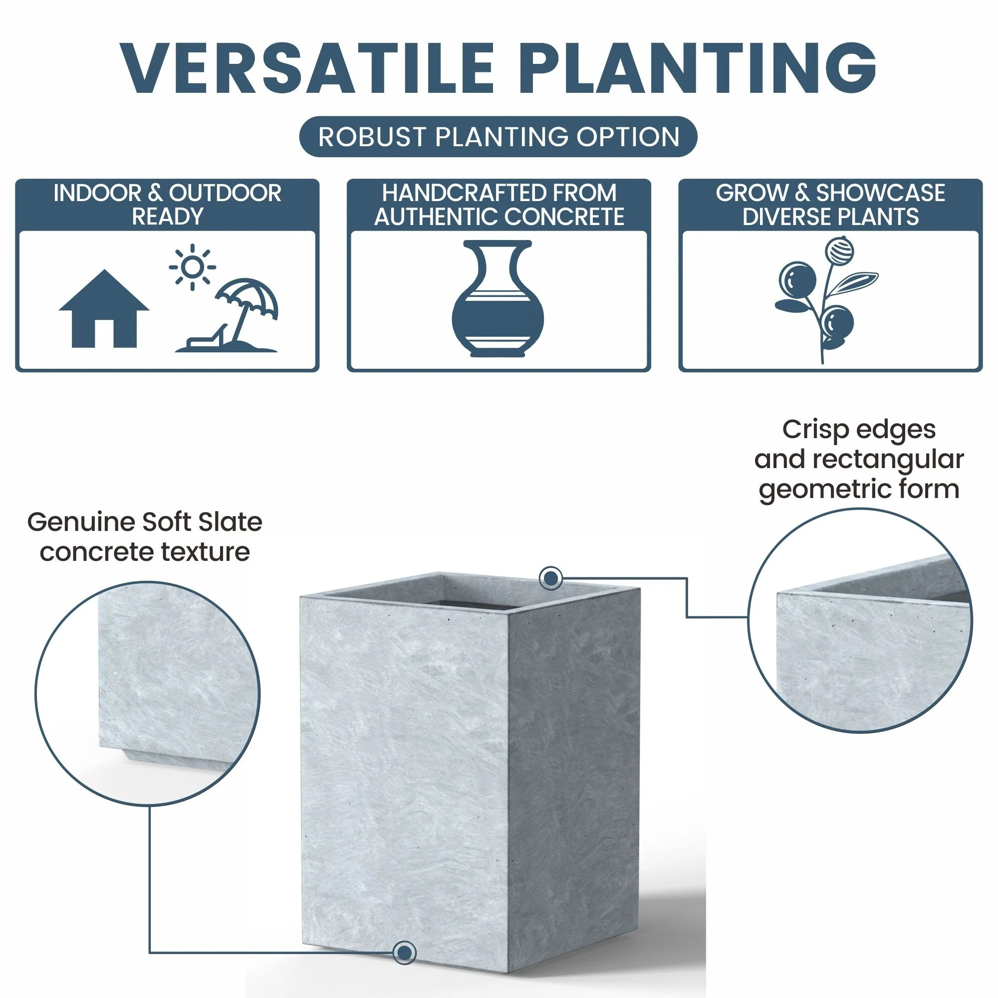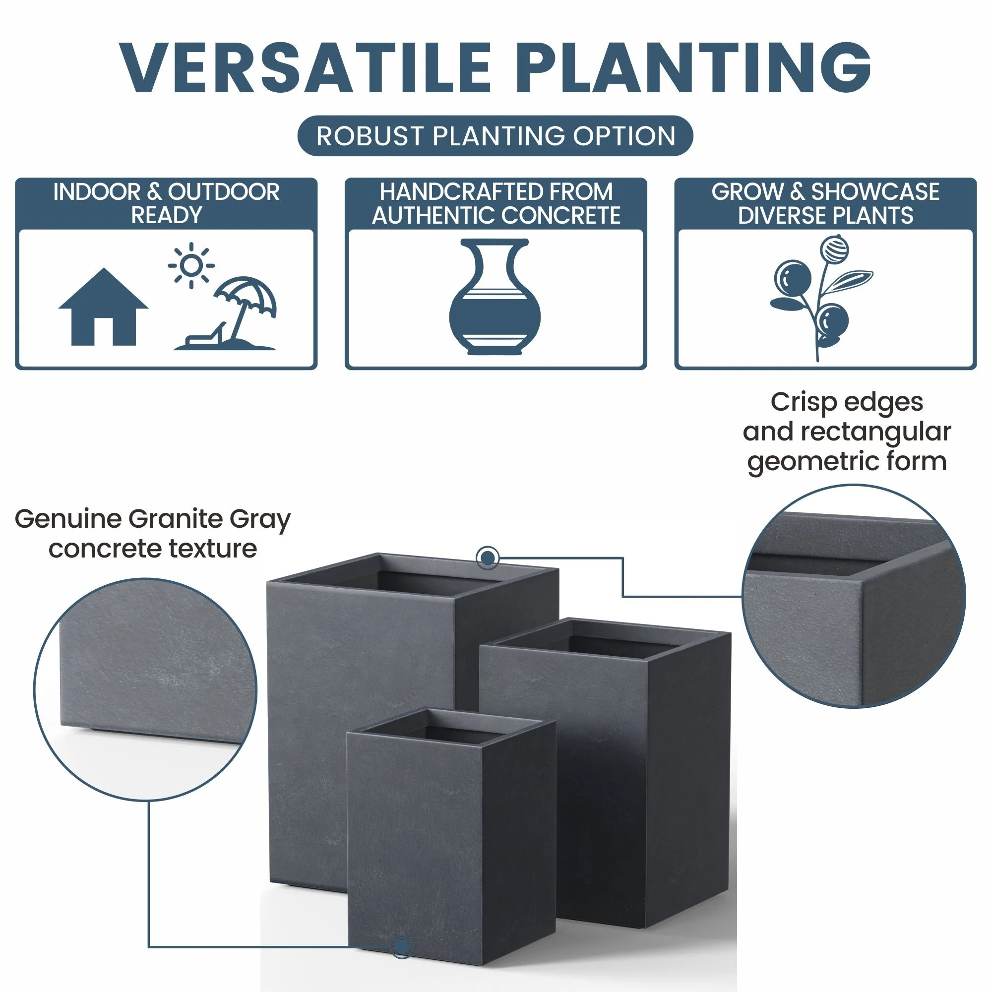 *Durability with Modern Flair: Our cement planter varieties are designed to last and complement the contemporary decor of any North American dwelling, with both stone and faux concrete finishes that resonate with style
