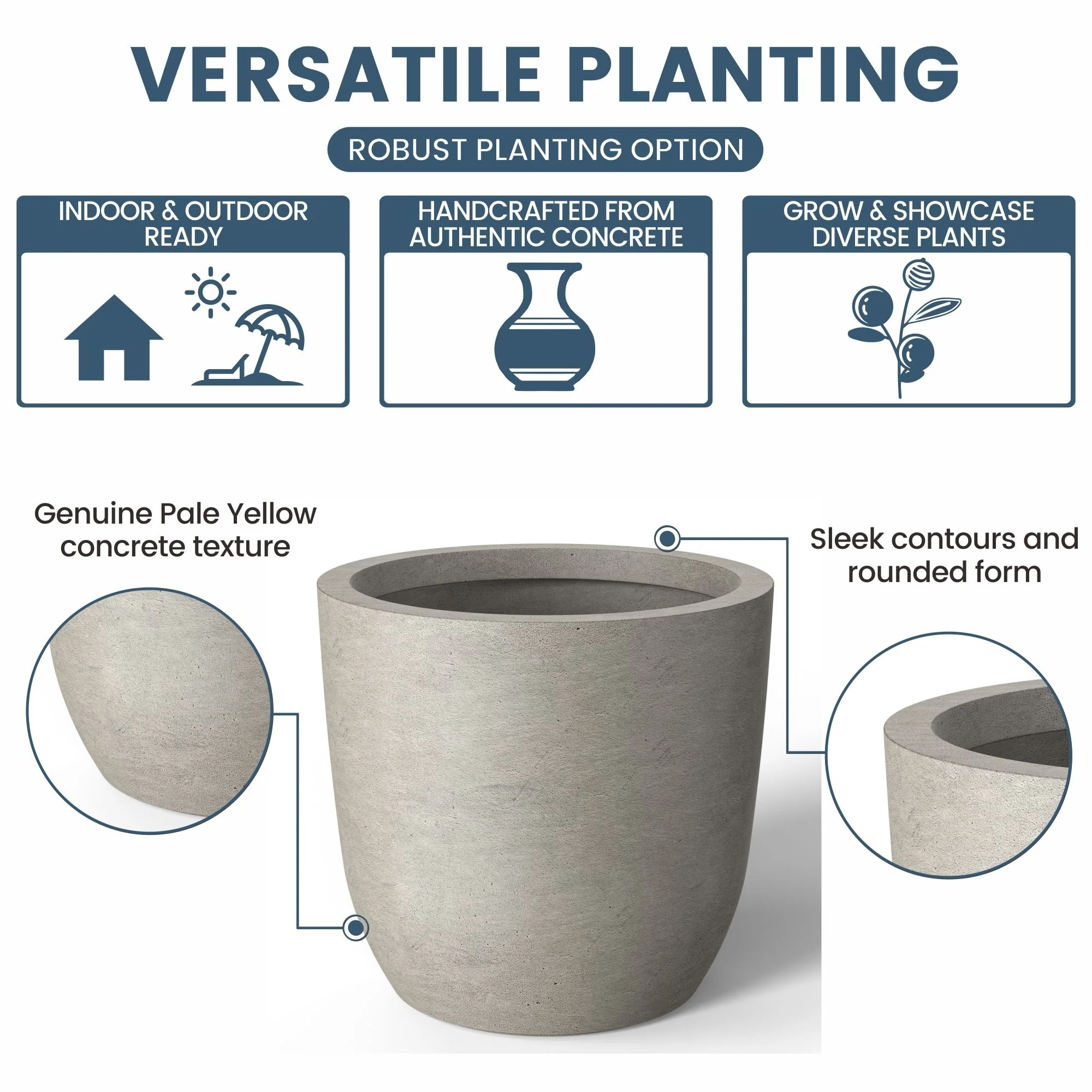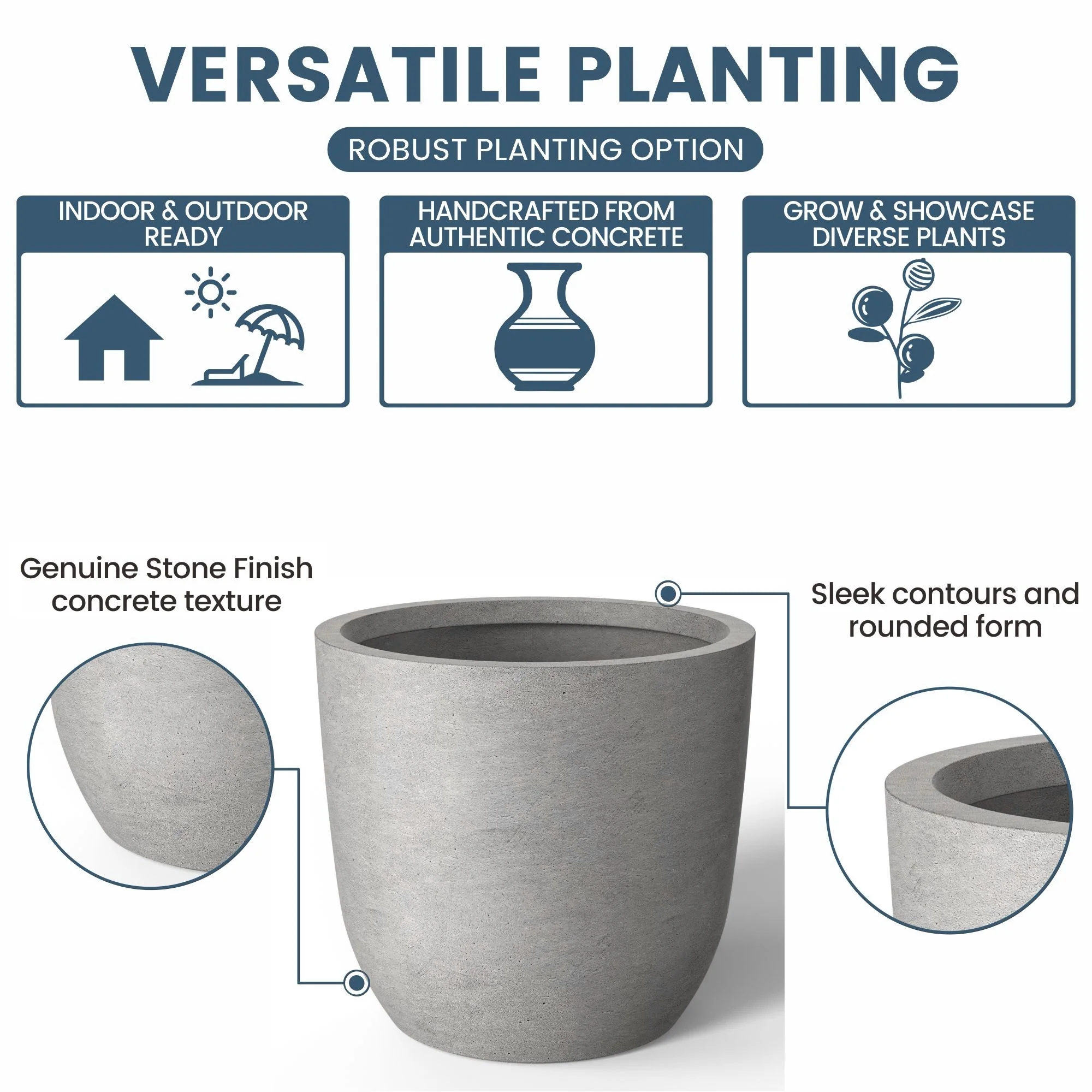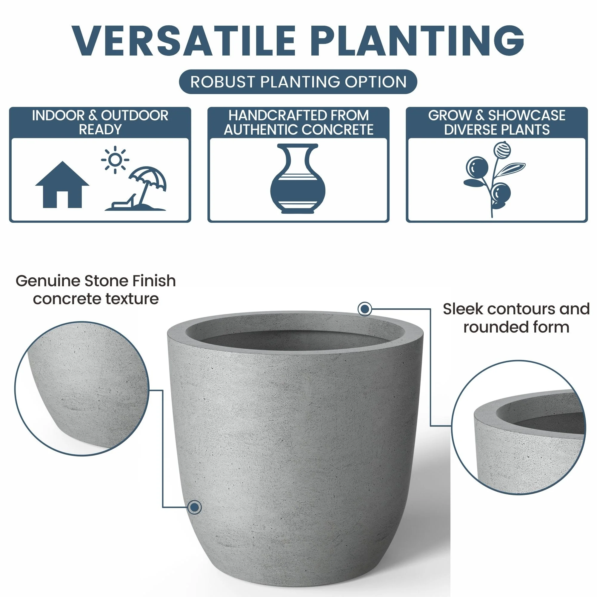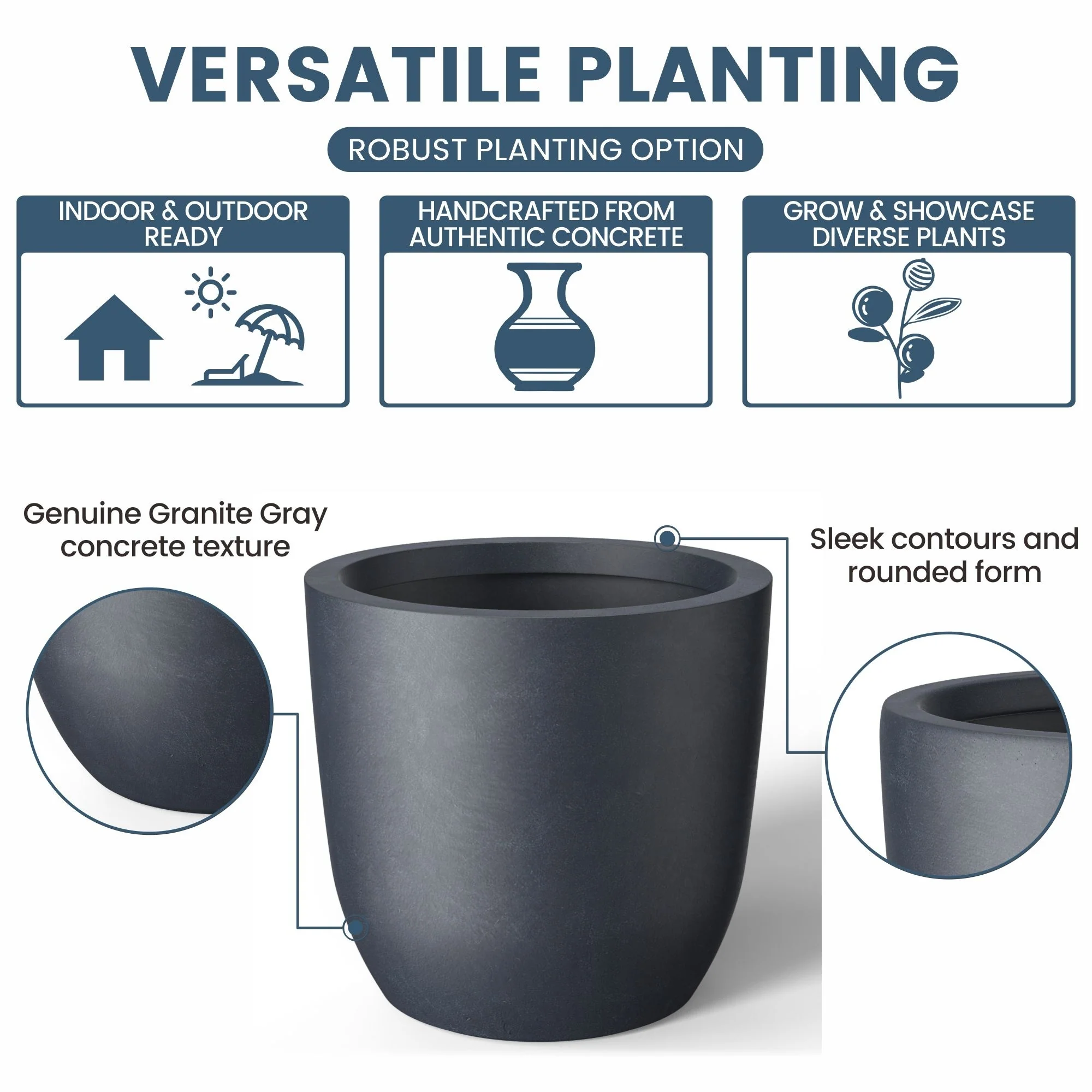 *Rust Resistant: With no metal parts to worry about, these round cement planters resist rusting, ensuring a pristine look through all weather conditions