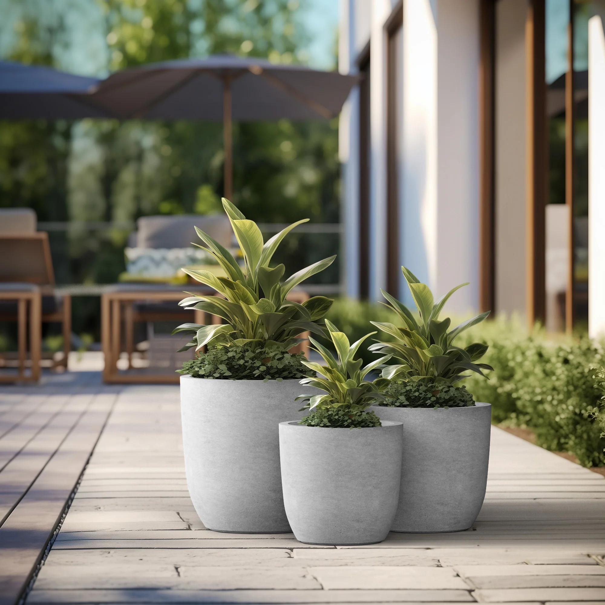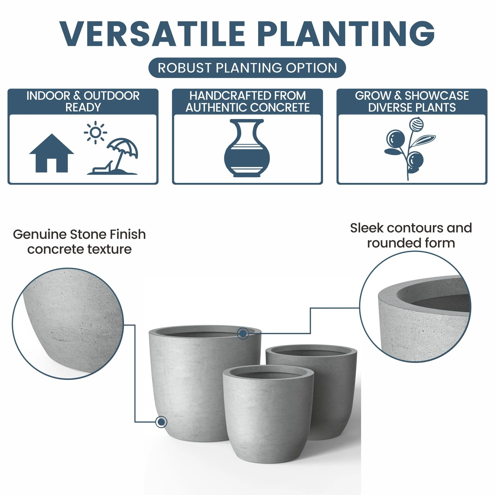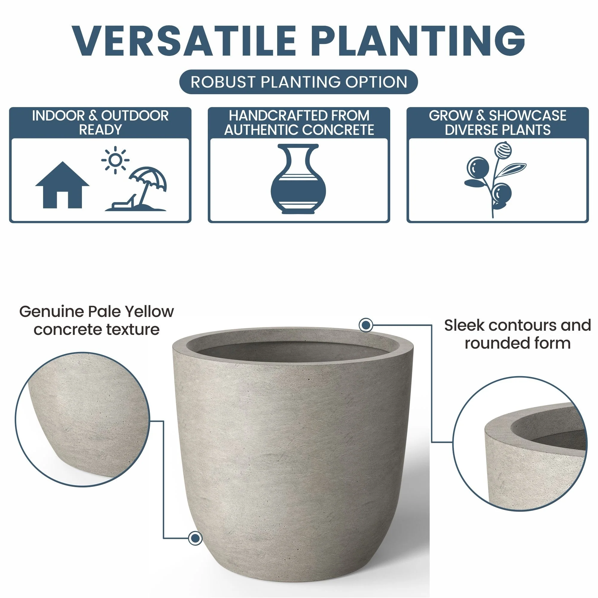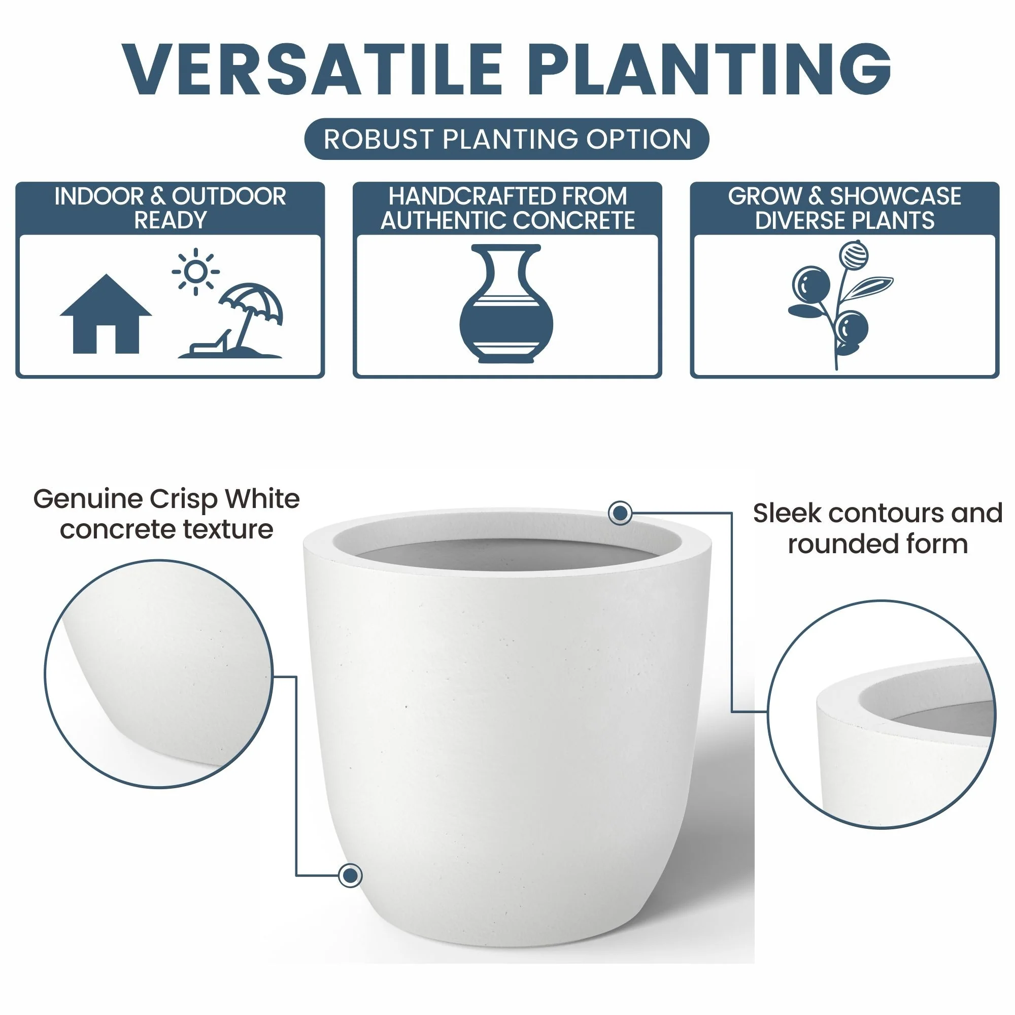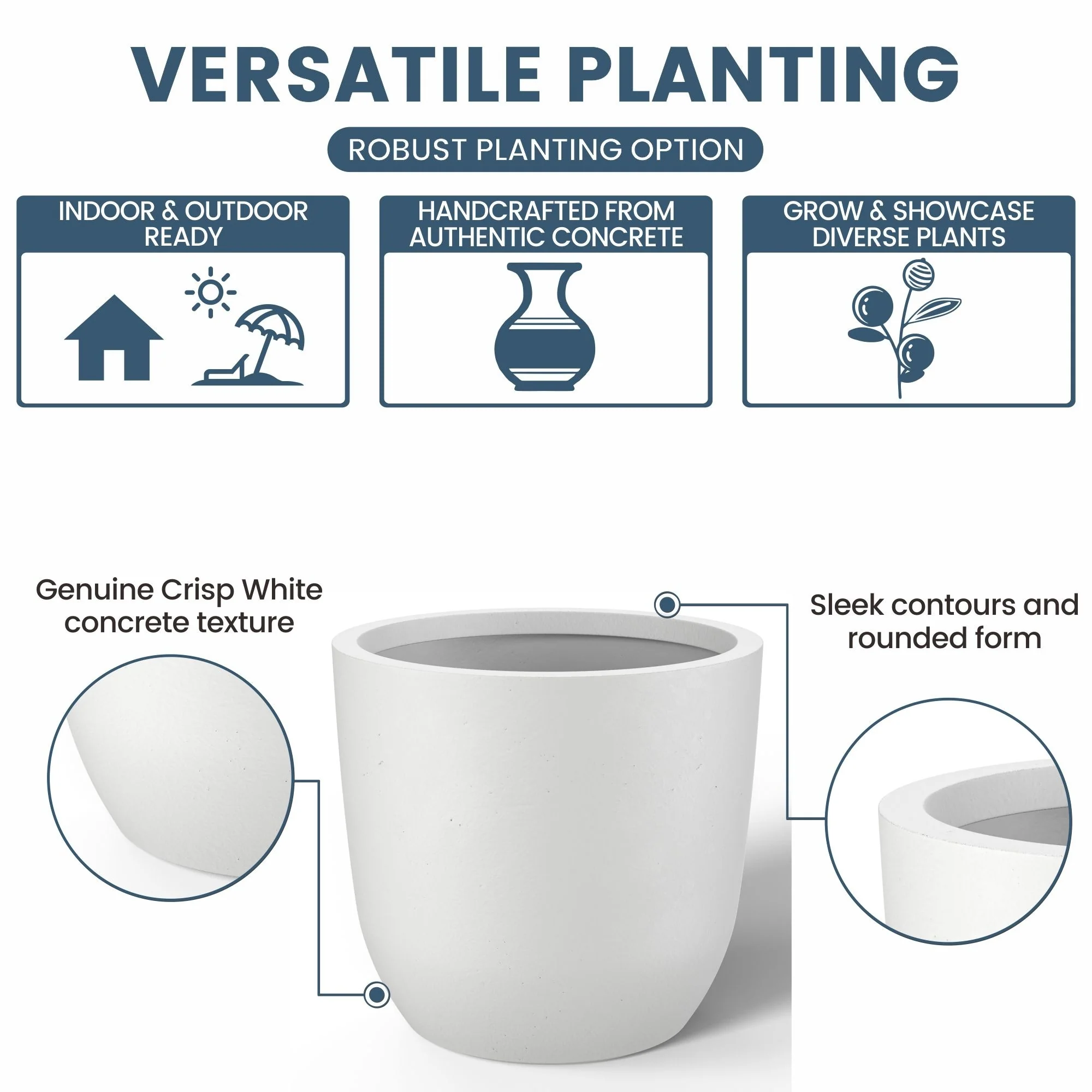 *Rust Resistant: With no metal parts to worry about, these round cement planters resist rusting, ensuring a pristine look through all weather conditions