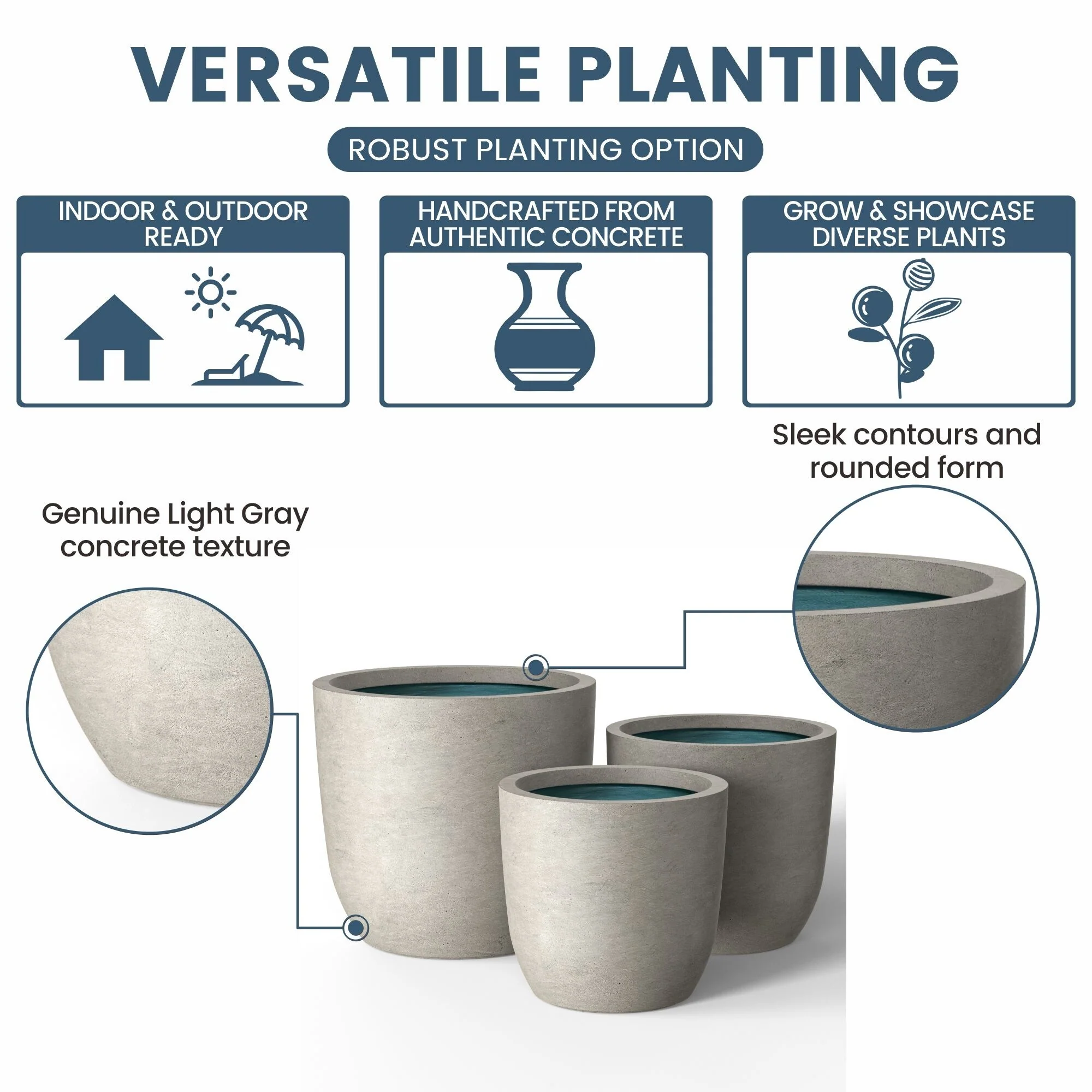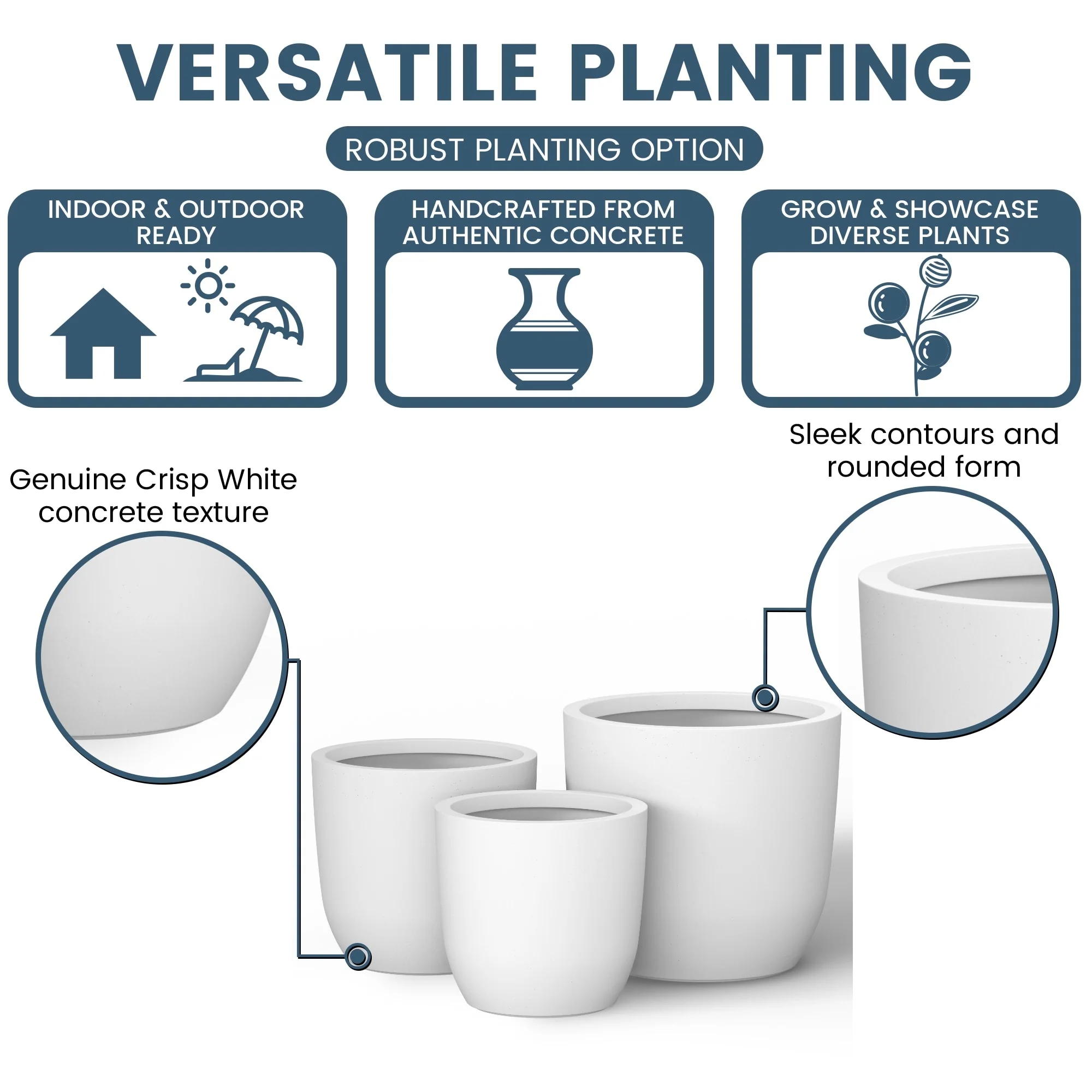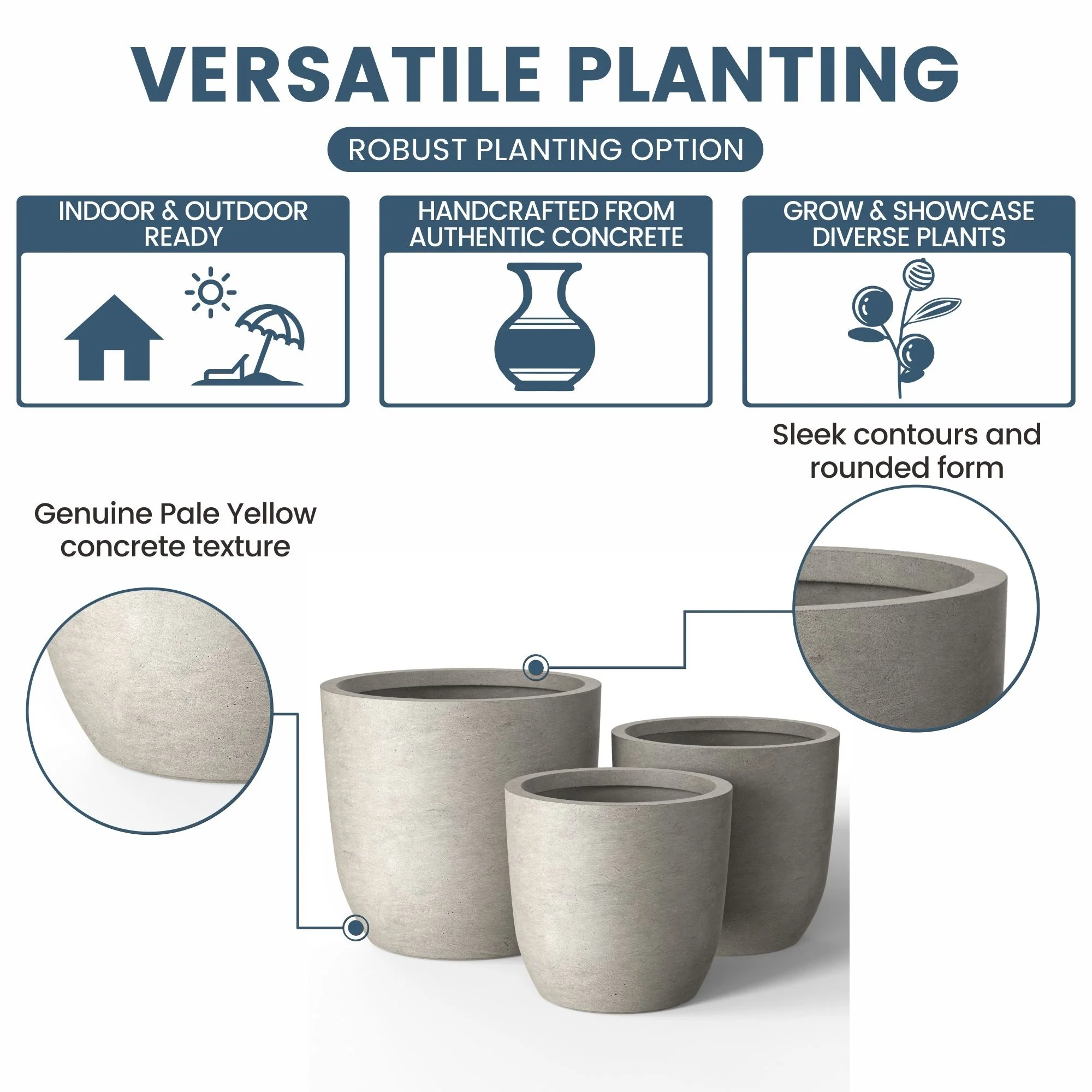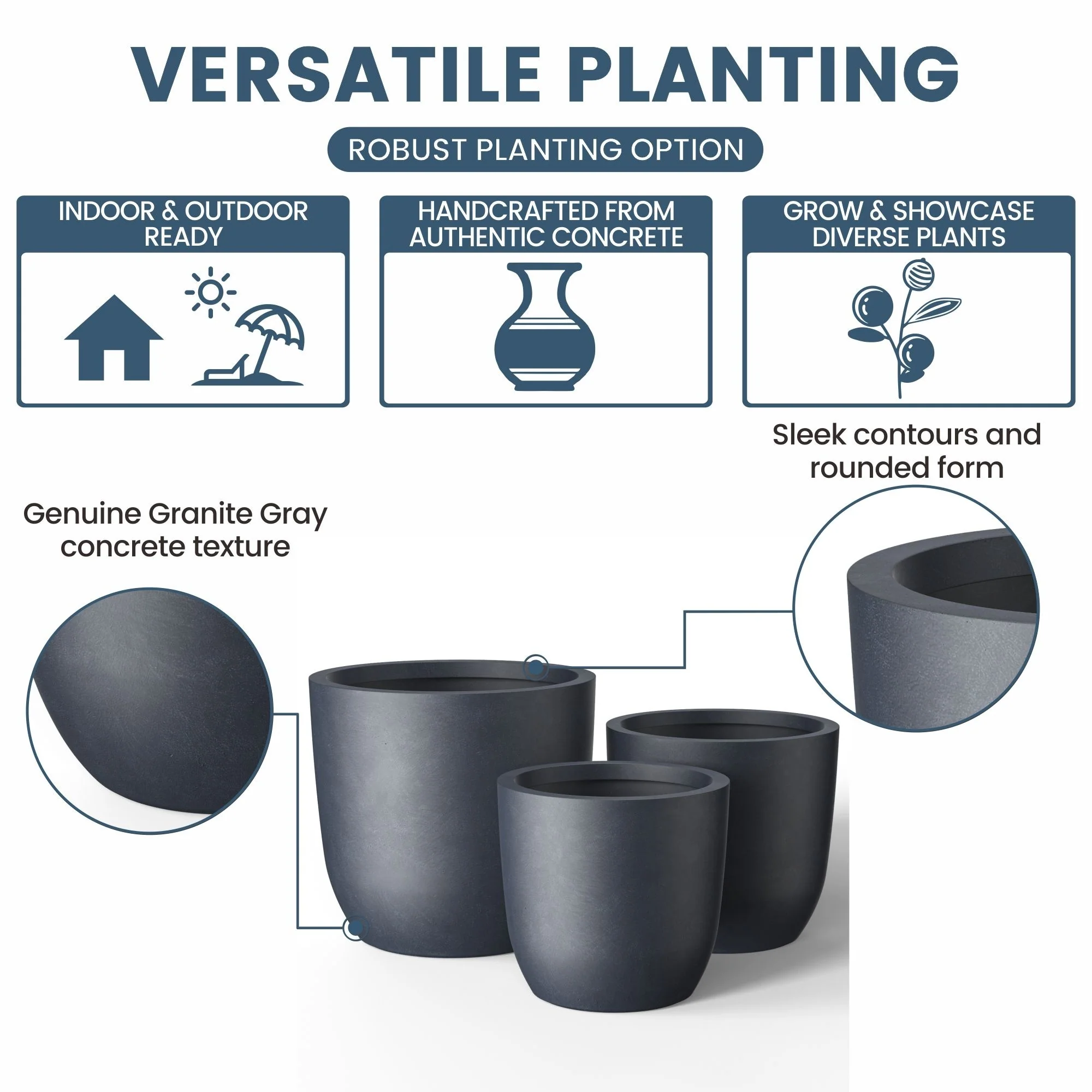 *Rust Resistant: With no metal parts to worry about, these round cement planters resist rusting, ensuring a pristine look through all weather conditions