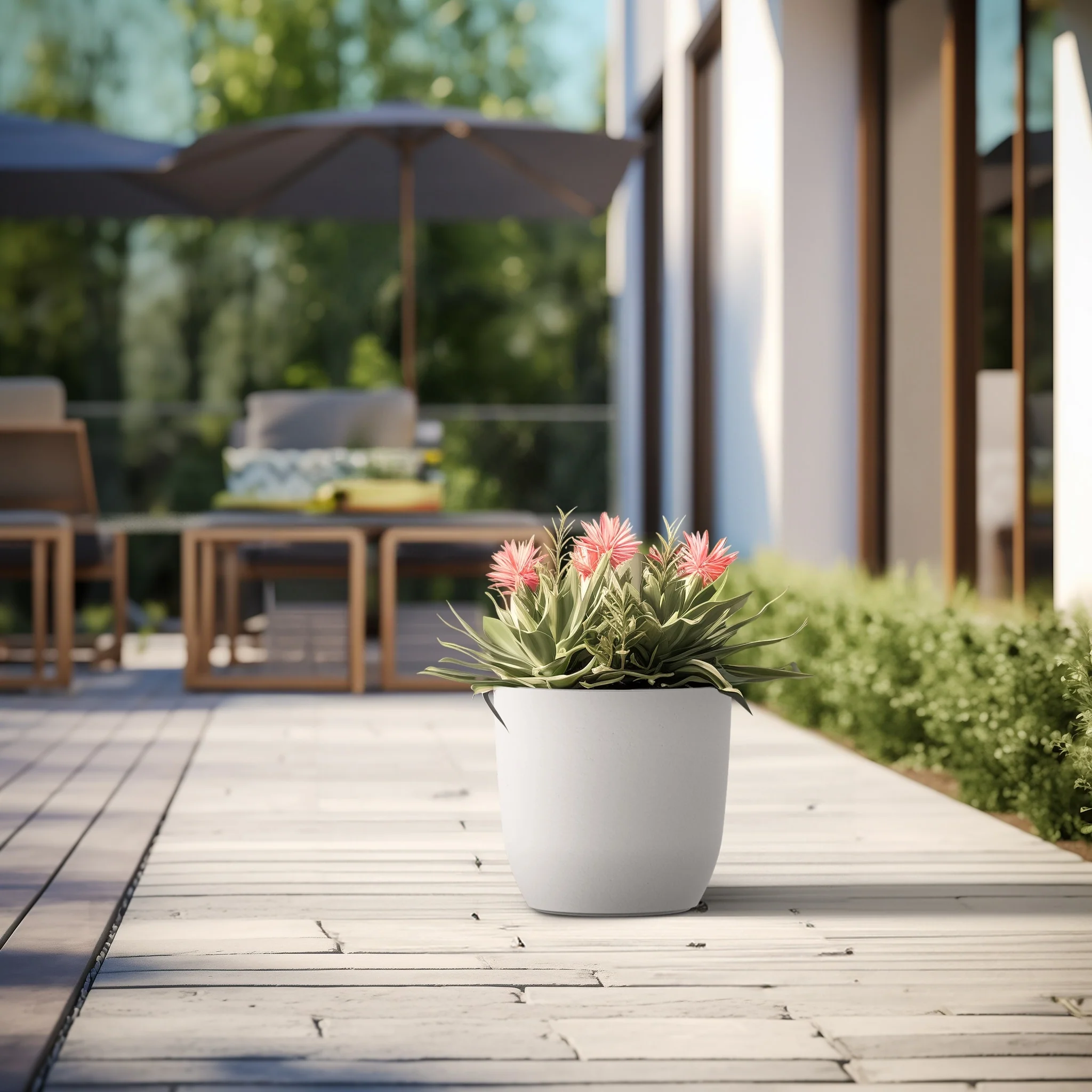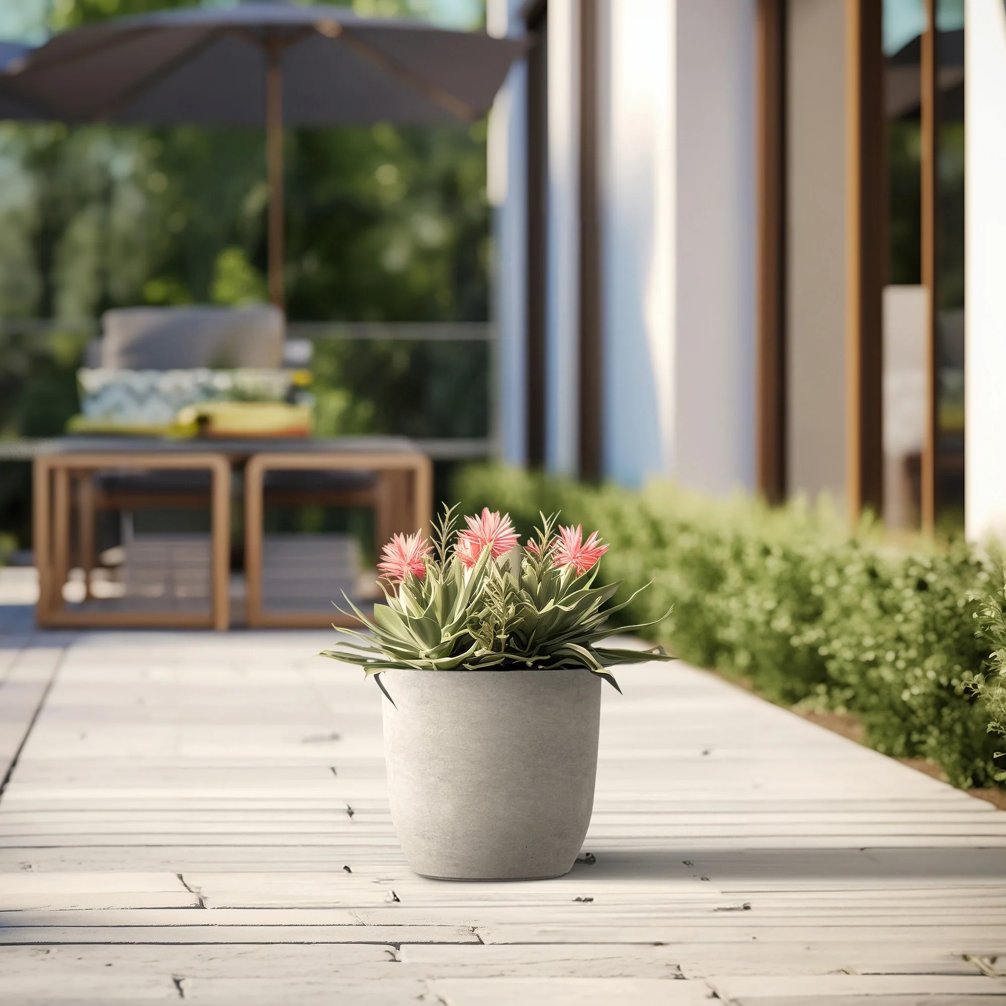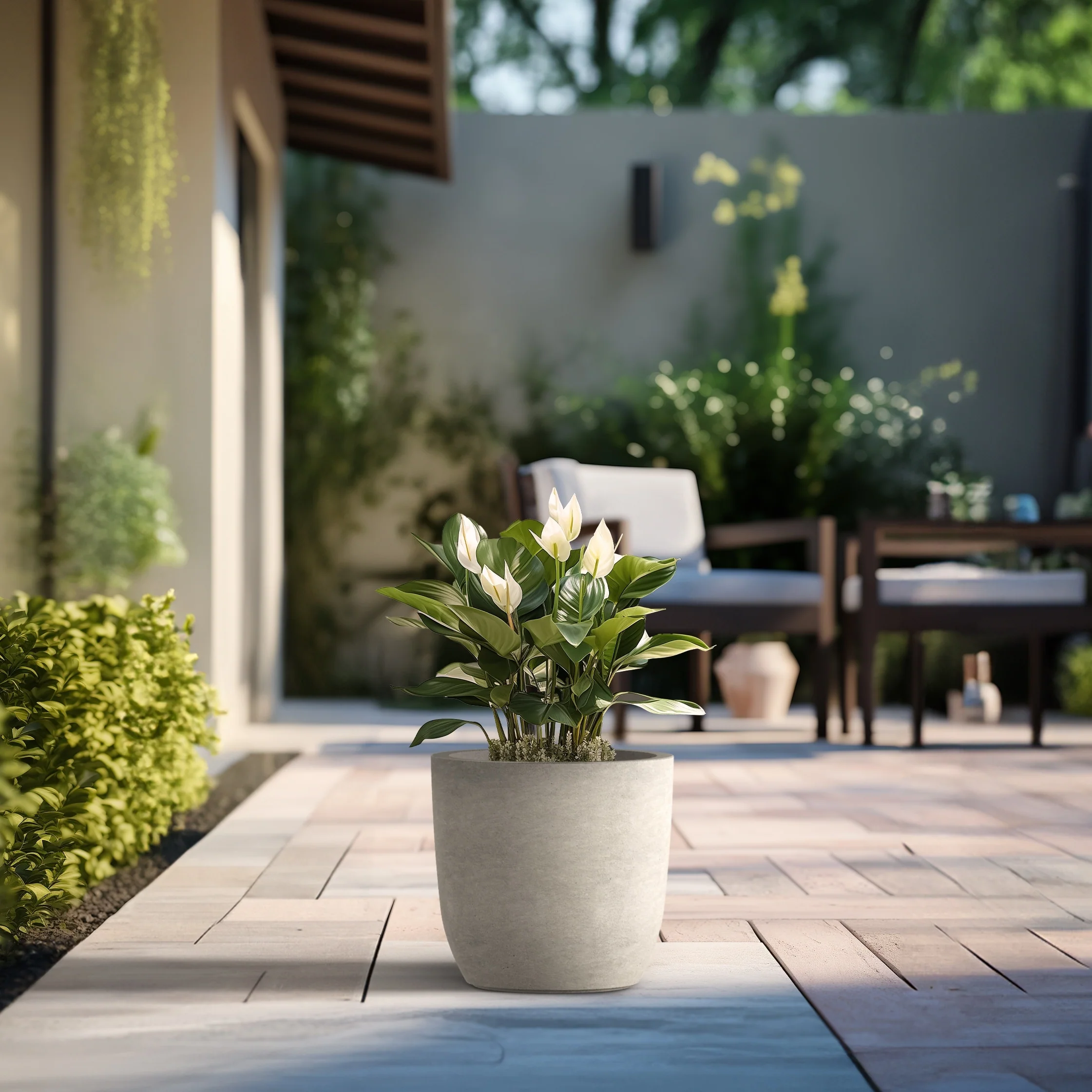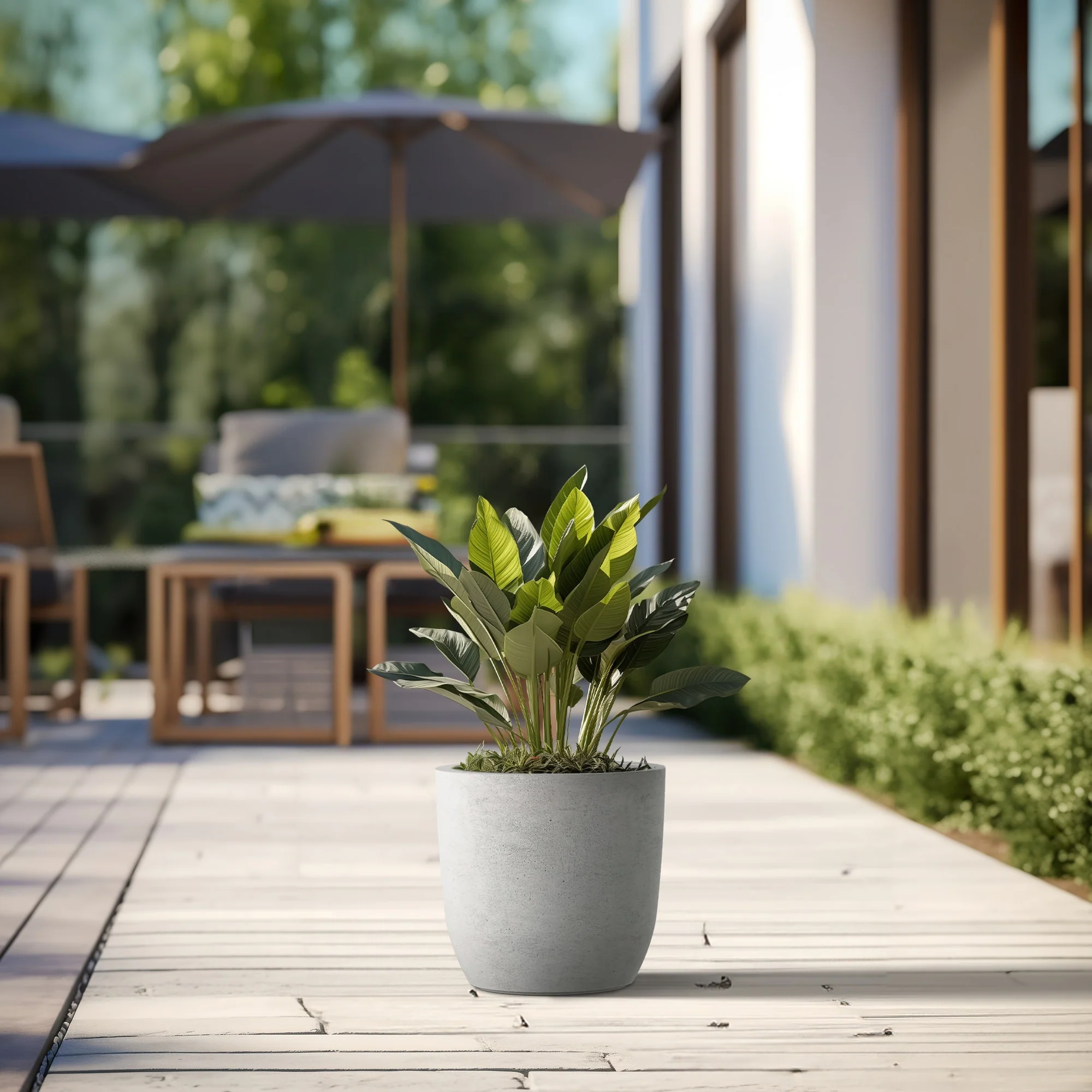 Unveil a sanctuary of green with our Durx-litecrete planters, where every piece is a blend of art and utility. These elegant planters boast a sophisticated concrete finish with visible pores, a testament to their authentic, contemporary design. Their weight is a pleasant surprise, substantial in appearance yet light enough to grace both indoor and outdoor settings. The smooth texture stands in stark contrast to the traditional rough concrete, making these planters a perfect match for the modern North American home. Spacious enough to house a diverse plant life, they sit beautifully on an apartment balcony or a vast backyard patio, infusing harmony and style with their versatile concrete finish.