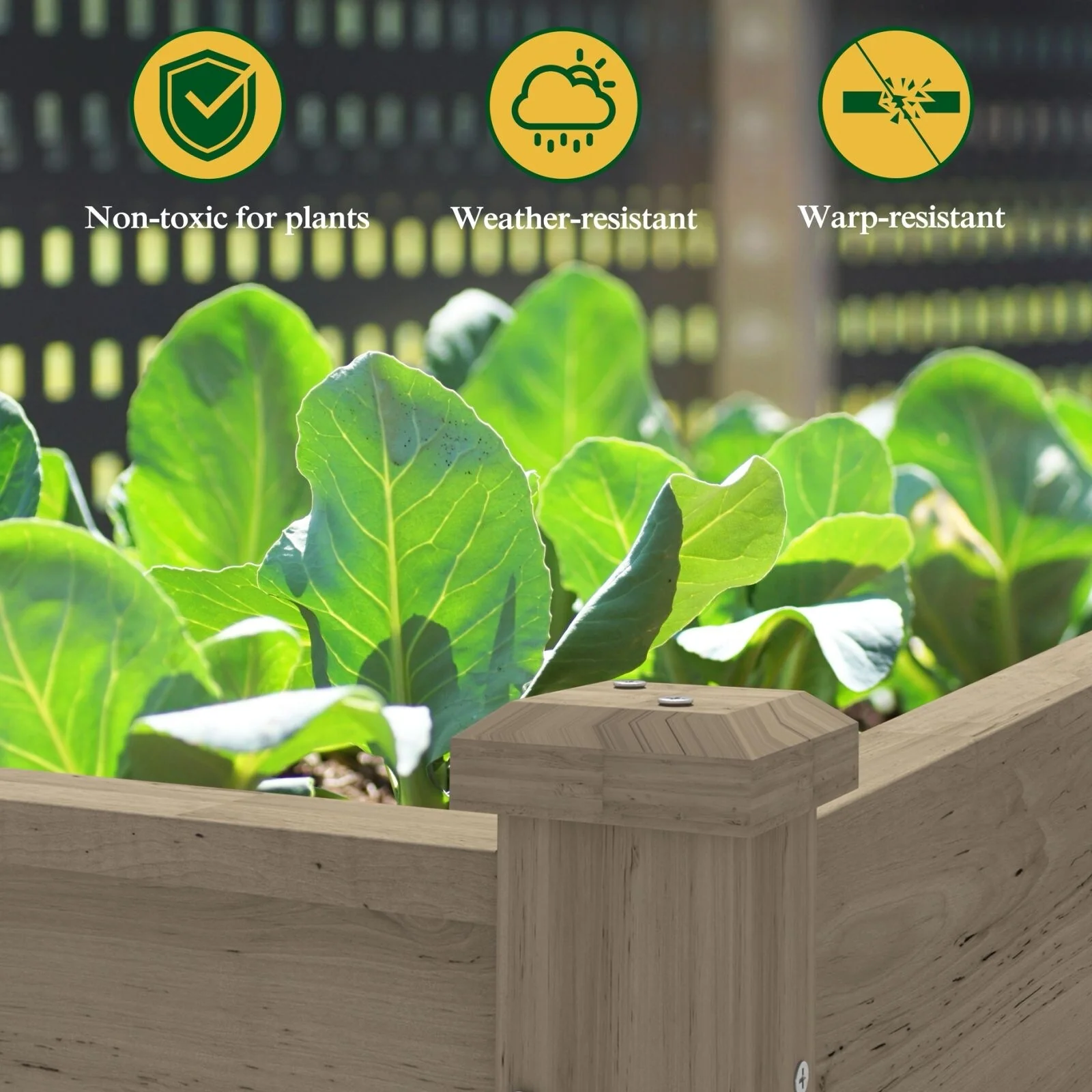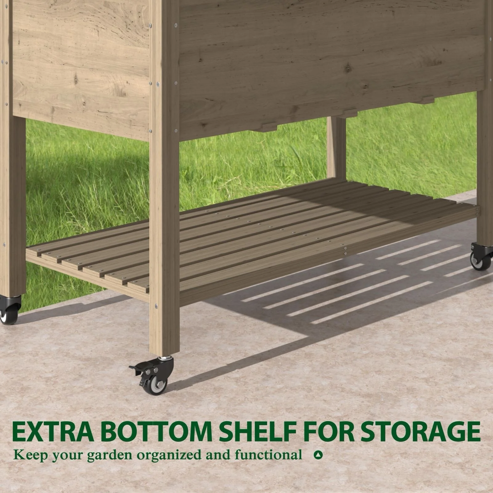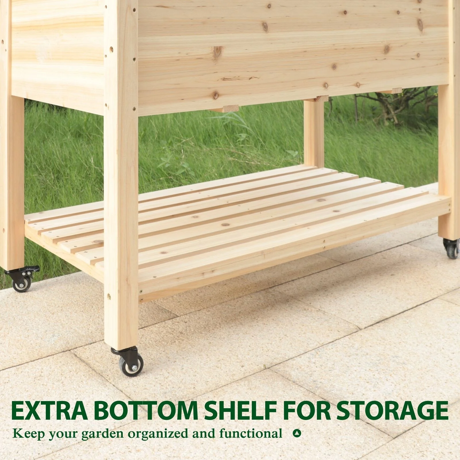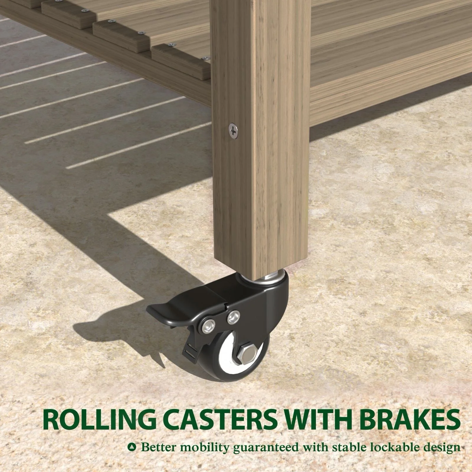 Upgrade your gardening game with the VEIKOUS Raised Garden Bed Planter Box! Made with non-toxic and eco-friendly cedar, this wood garden bed is both sturdy and safe for your crops. The four metal wheels make it easy to move around, while the four brakes provide added safety when you need to keep it in place. With an unfinished wood color, you can customize the look of the planter to fit your garden or patio decor. Enjoy the convenience and durability of this outdoor garden bed for both indoor and outdoor use.