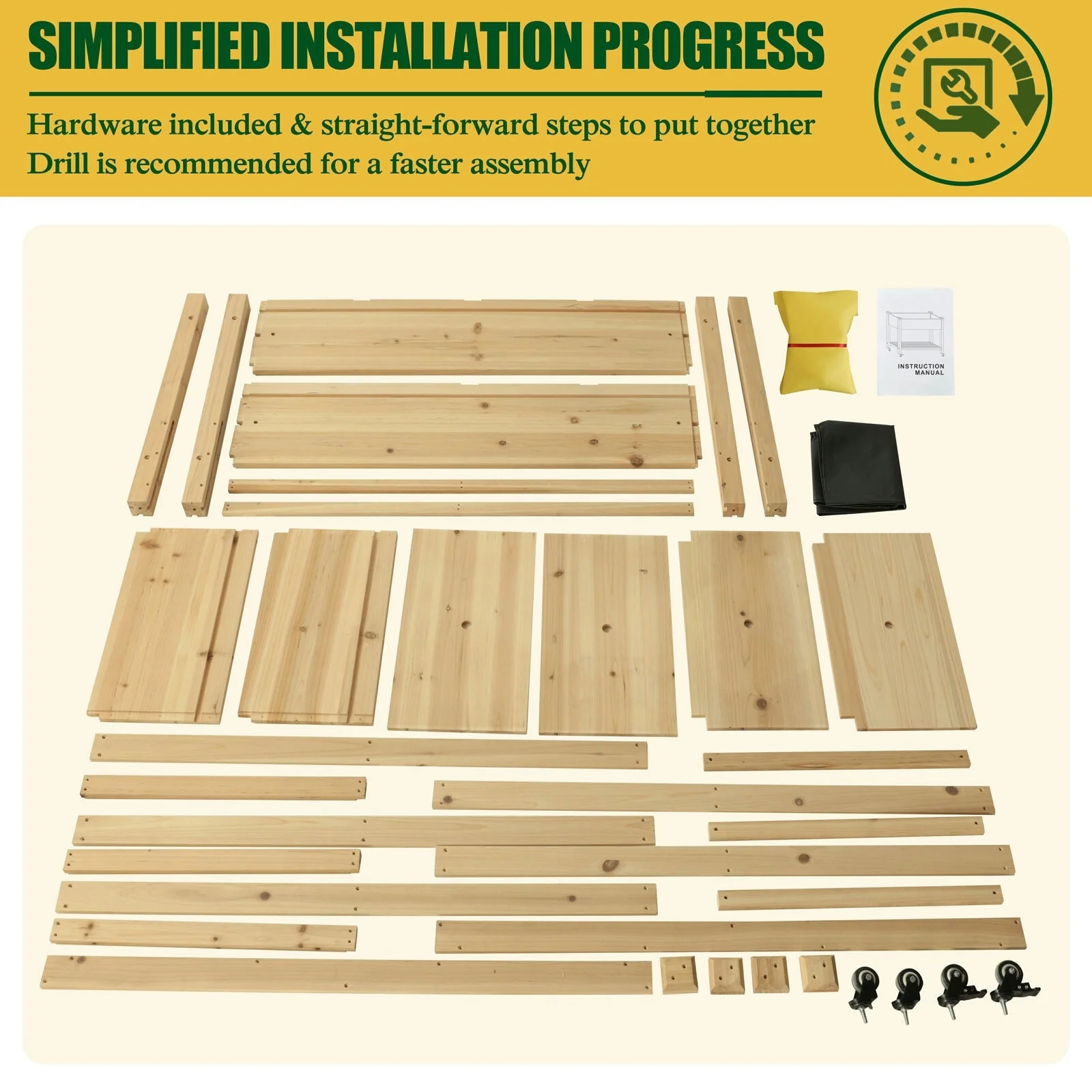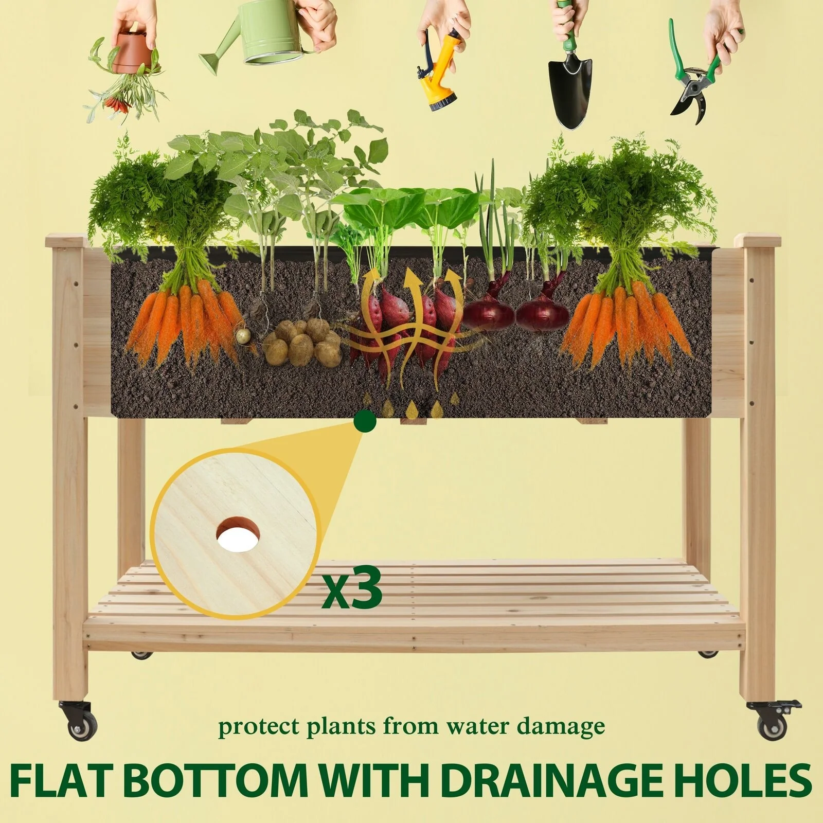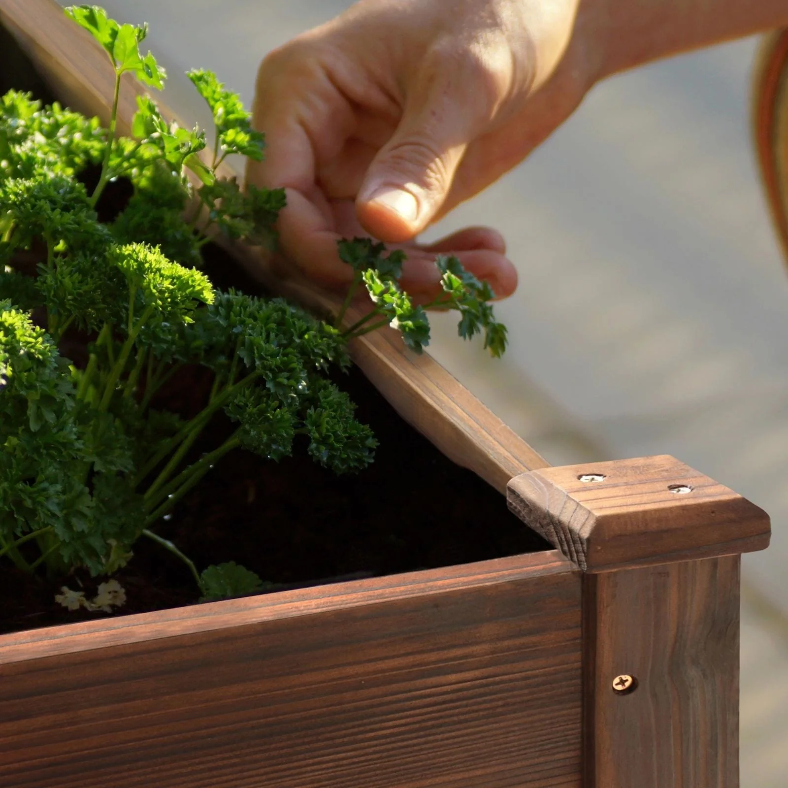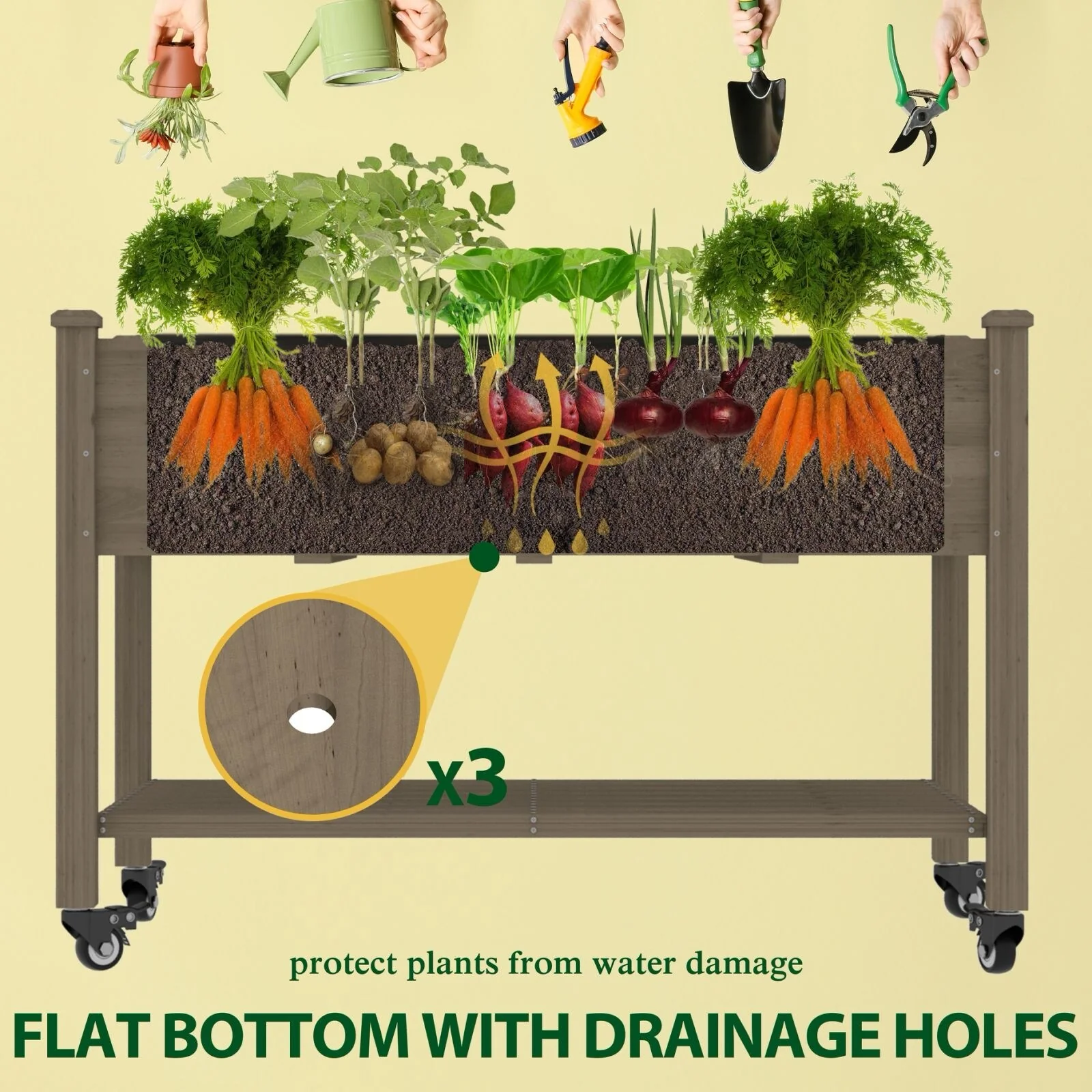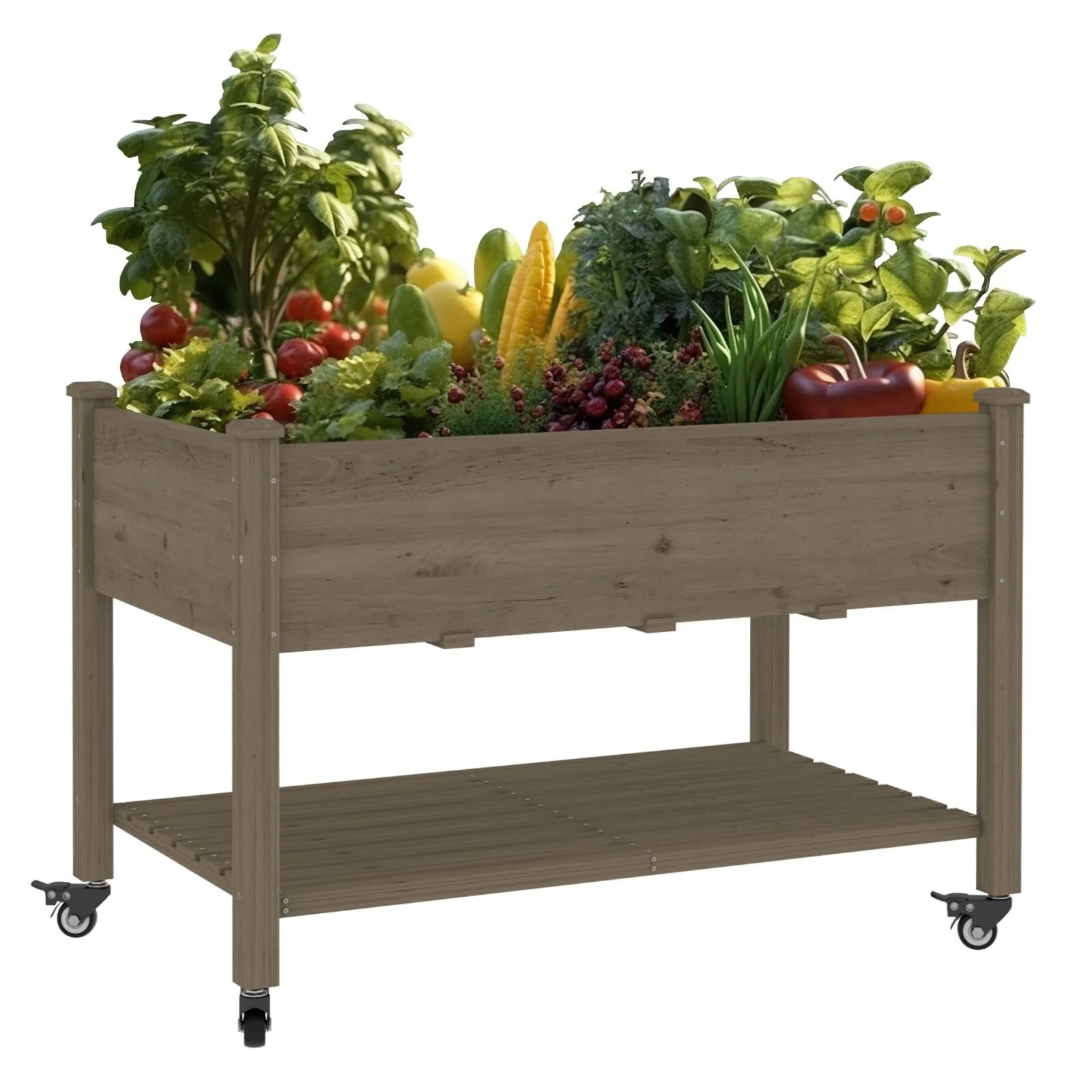 Upgrade your gardening game with the VEIKOUS Raised Garden Bed Planter Box! Made with non-toxic and eco-friendly cedar, this wood garden bed is both sturdy and safe for your crops. The four metal wheels make it easy to move around, while the four brakes provide added safety when you need to keep it in place. With an unfinished wood color, you can customize the look of the planter to fit your garden or patio decor. Enjoy the convenience and durability of this outdoor garden bed for both indoor and outdoor use.