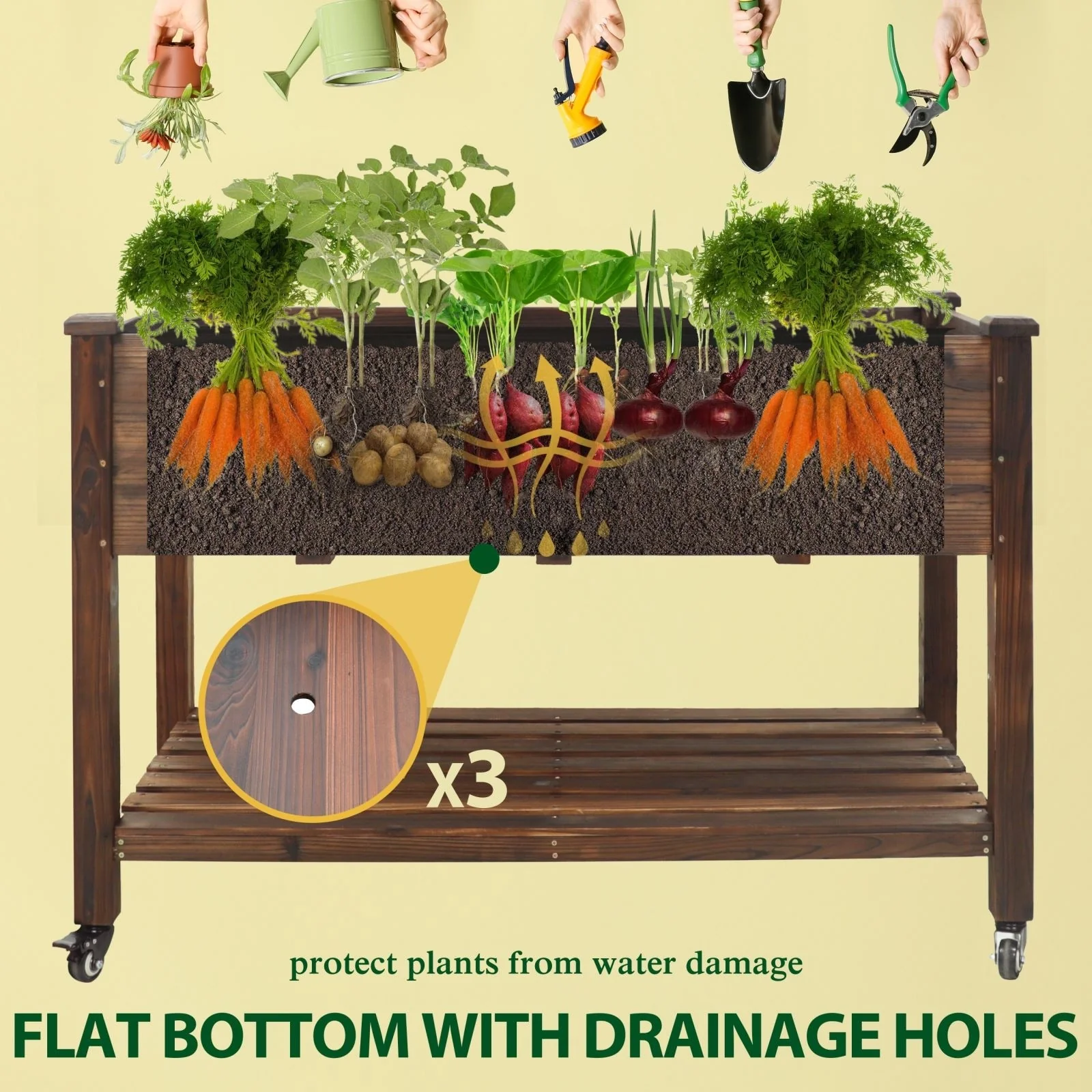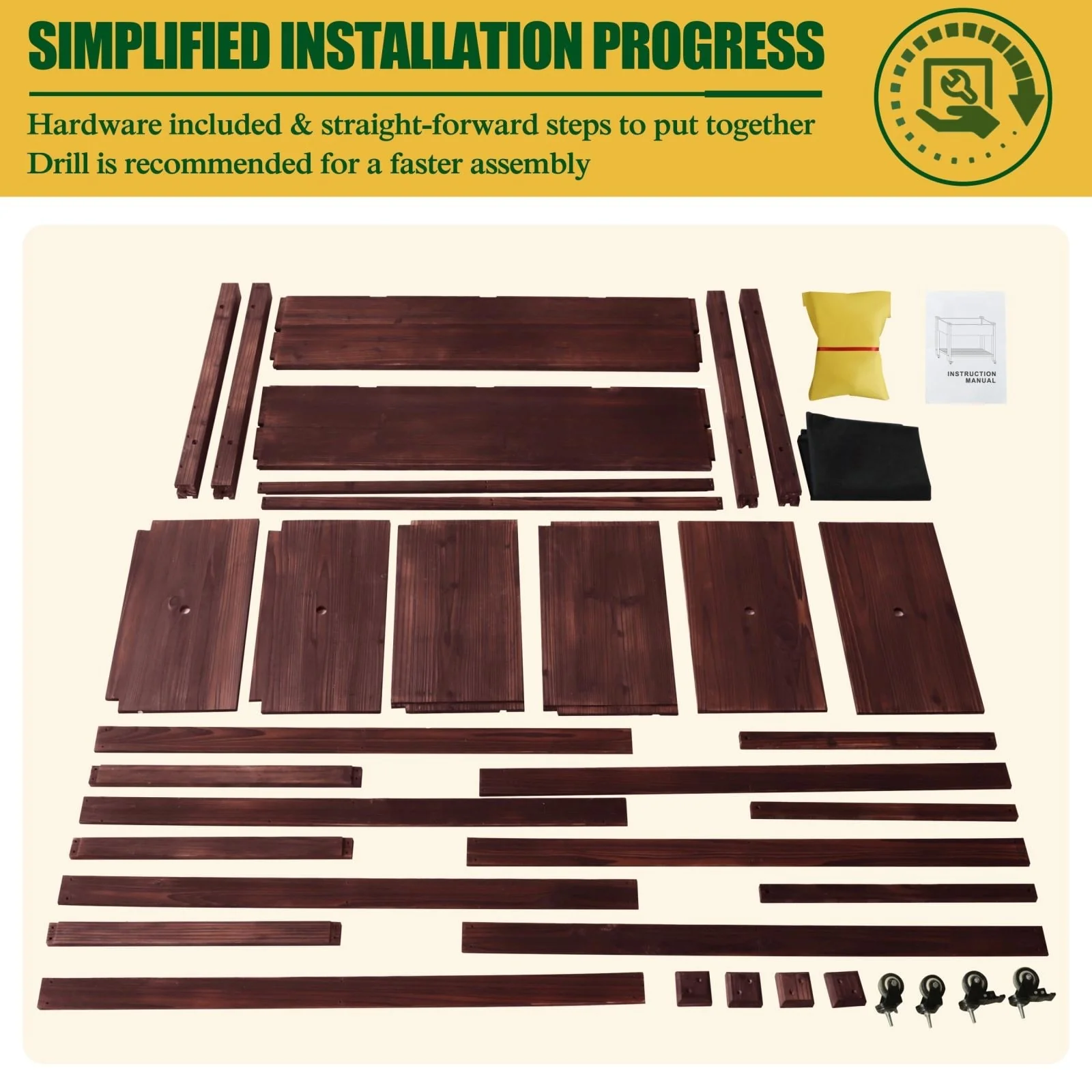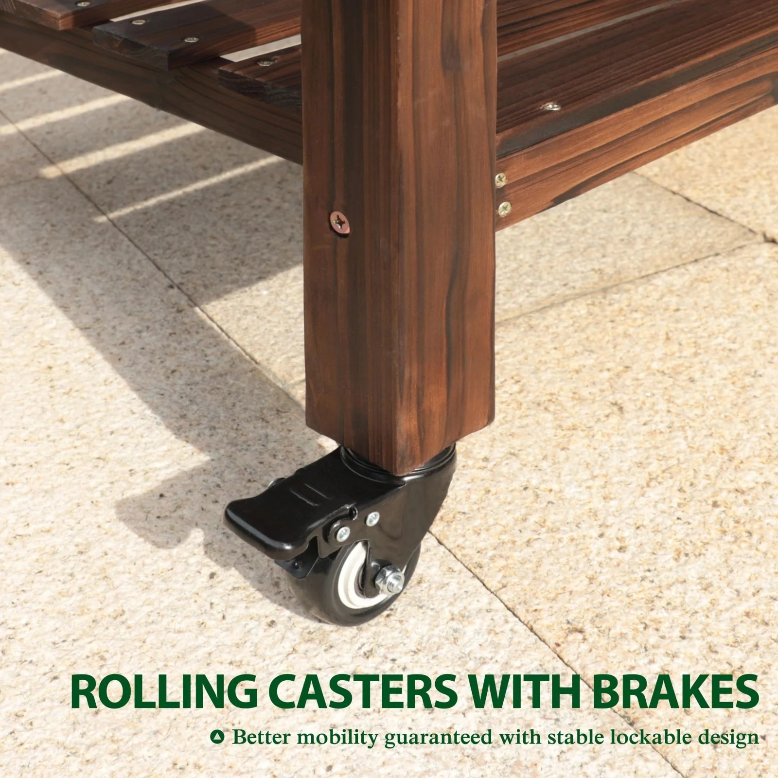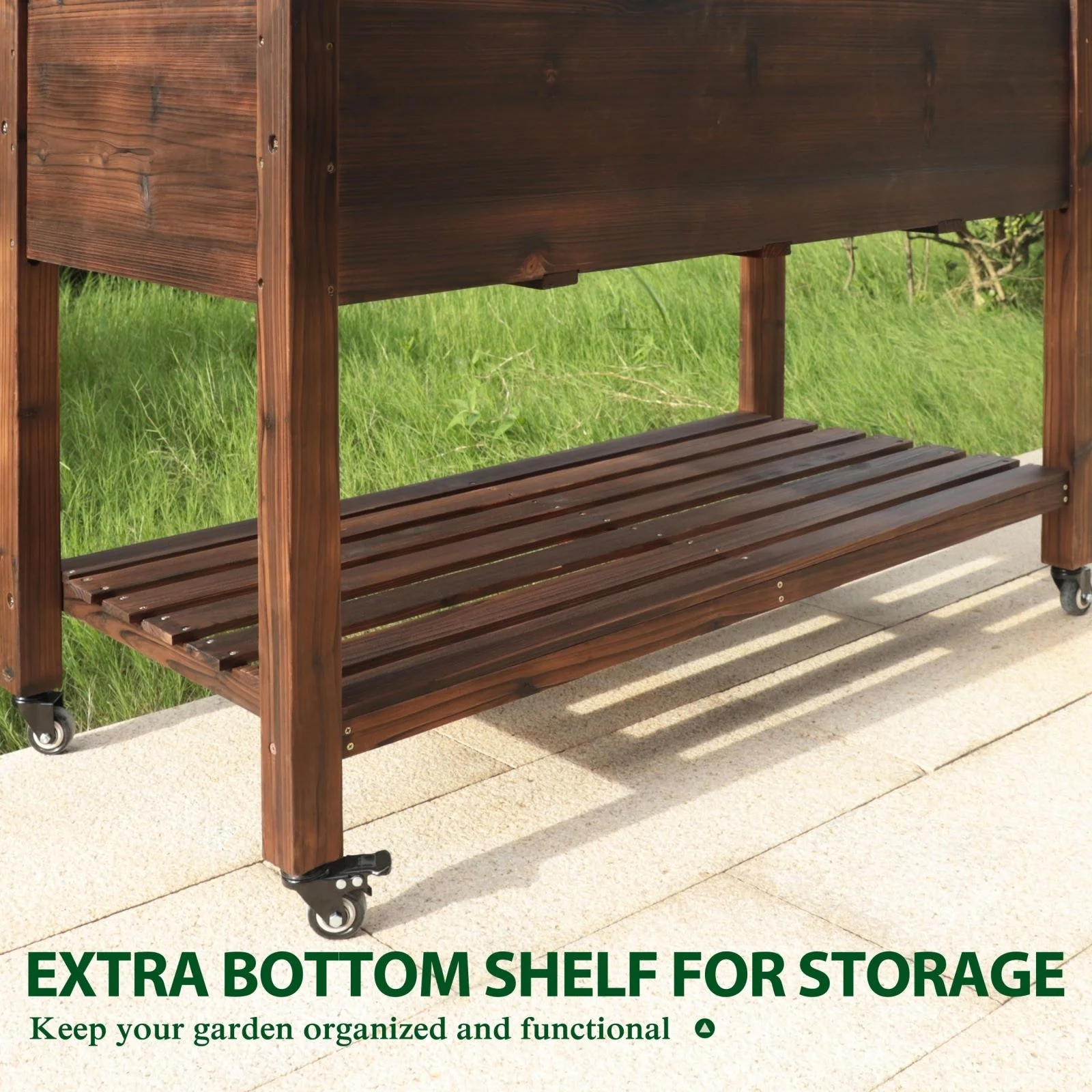 Upgrade your gardening game with the VEIKOUS Raised Garden Bed Planter Box! Made with non-toxic and eco-friendly cedar, this wood garden bed is both sturdy and safe for your crops. The four metal wheels make it easy to move around, while the four brakes provide added safety when you need to keep it in place. With an unfinished wood color, you can customize the look of the planter to fit your garden or patio decor. Enjoy the convenience and durability of this outdoor garden bed for both indoor and outdoor use.