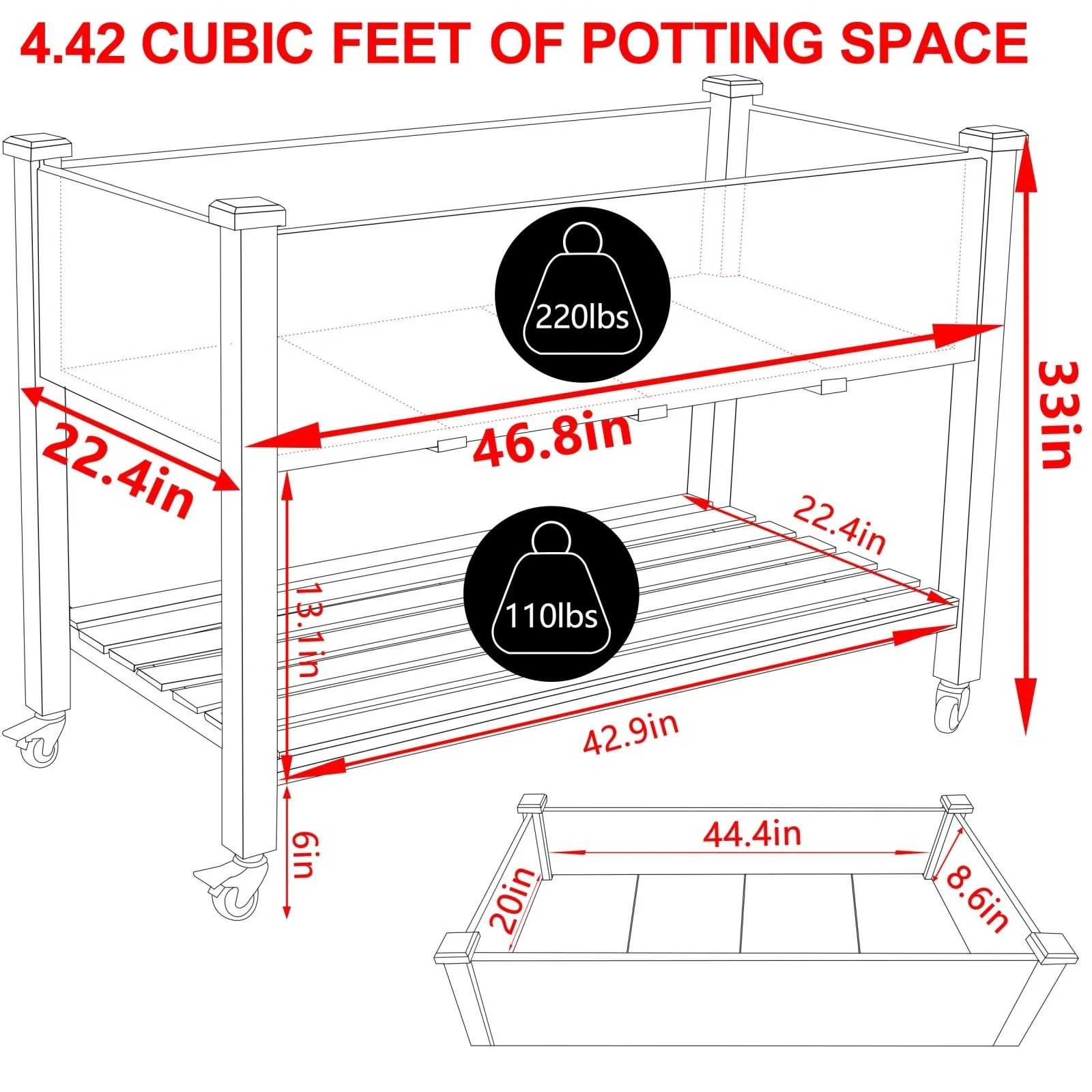- Weight capacity of 220lbs for the garden bed and 110lbs for the shelf