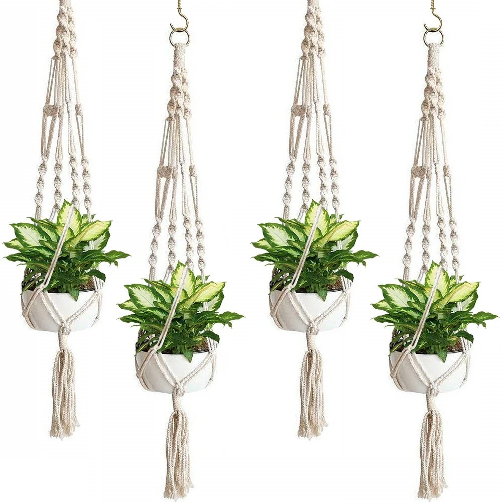 Macrame Plant Hanger (4, 6, 8 Pack) Indoor Outdoor Hanging Plant Pots Cotton Rope, Elegant for Home, Patio, Garden