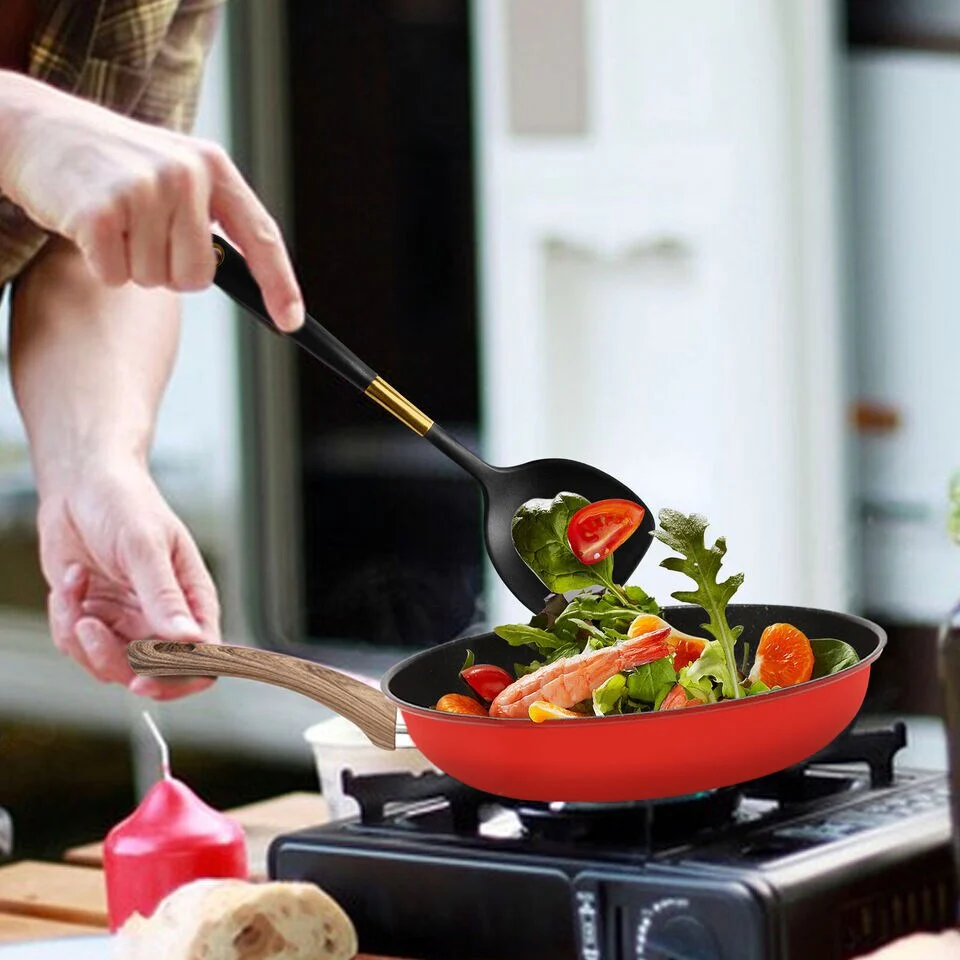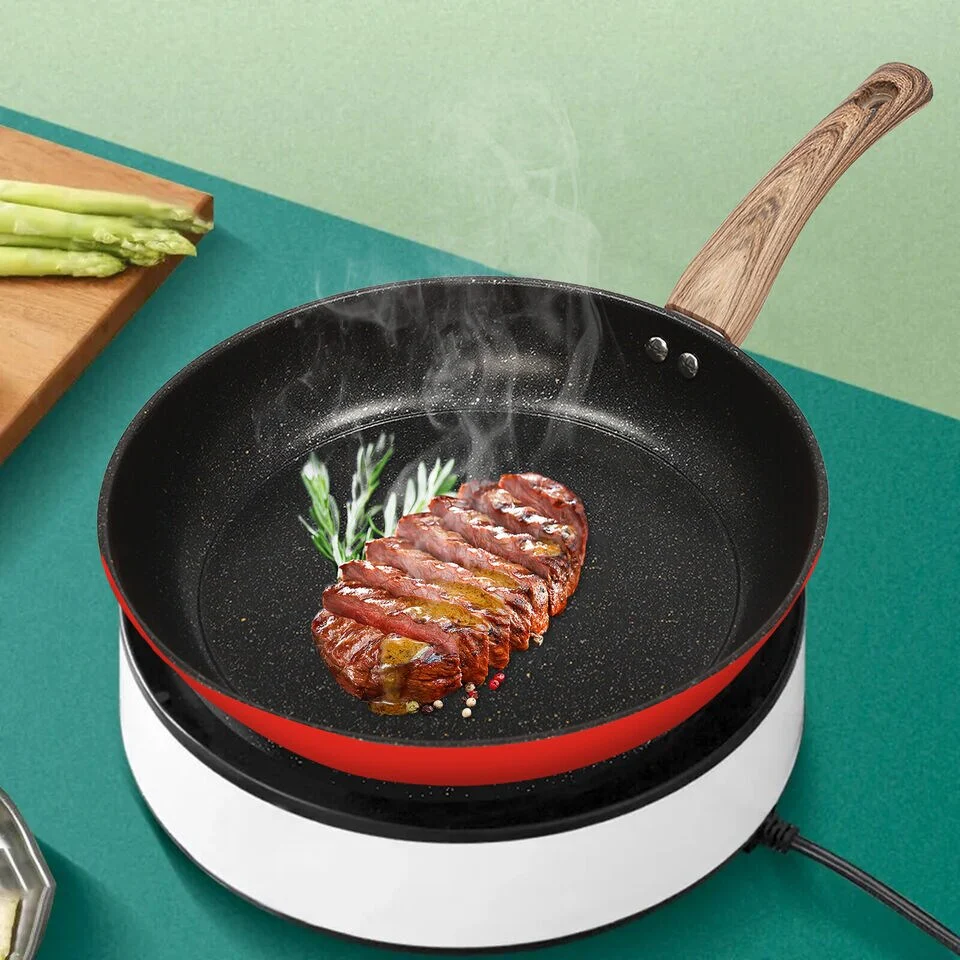 - Even Heat Distribution: Constructed with a thick, encapsulated base, the frying pan ensures even heat distribution across the cooking surface, preventing hot spots and allowing for consistent cooking results every time.