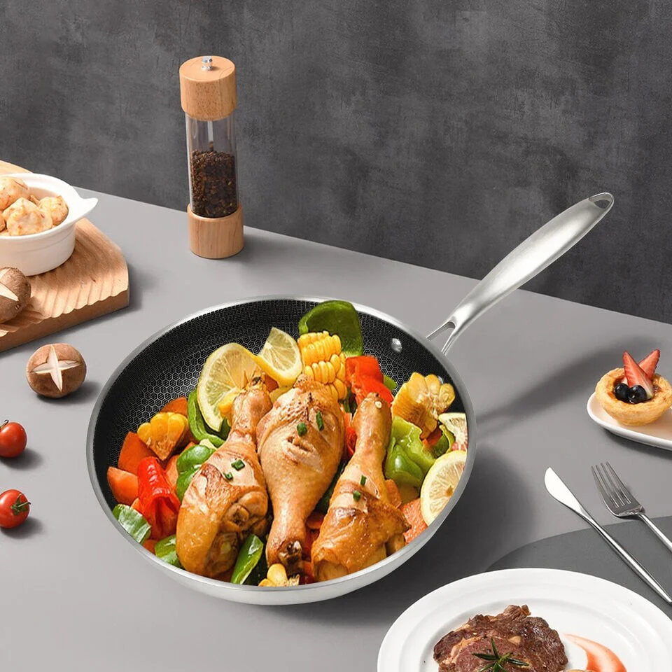 - Premium Stainless Steel Construction: Crafted from high-quality stainless steel, this frying pan offers exceptional durability, corrosion resistance, and heat retention, ensuring long-lasting performance.