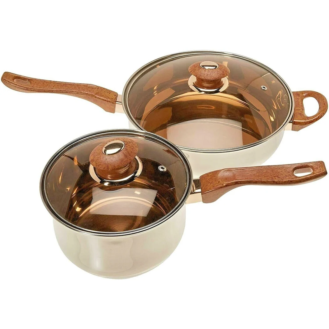 2. Comprehensive Selection: The set includes a variety of pots, saucepans, and a frying pan, covering all your cooking requirements. Whether you're simmering sauces, boiling pasta, or sautéing ingredients, this set has you covered.