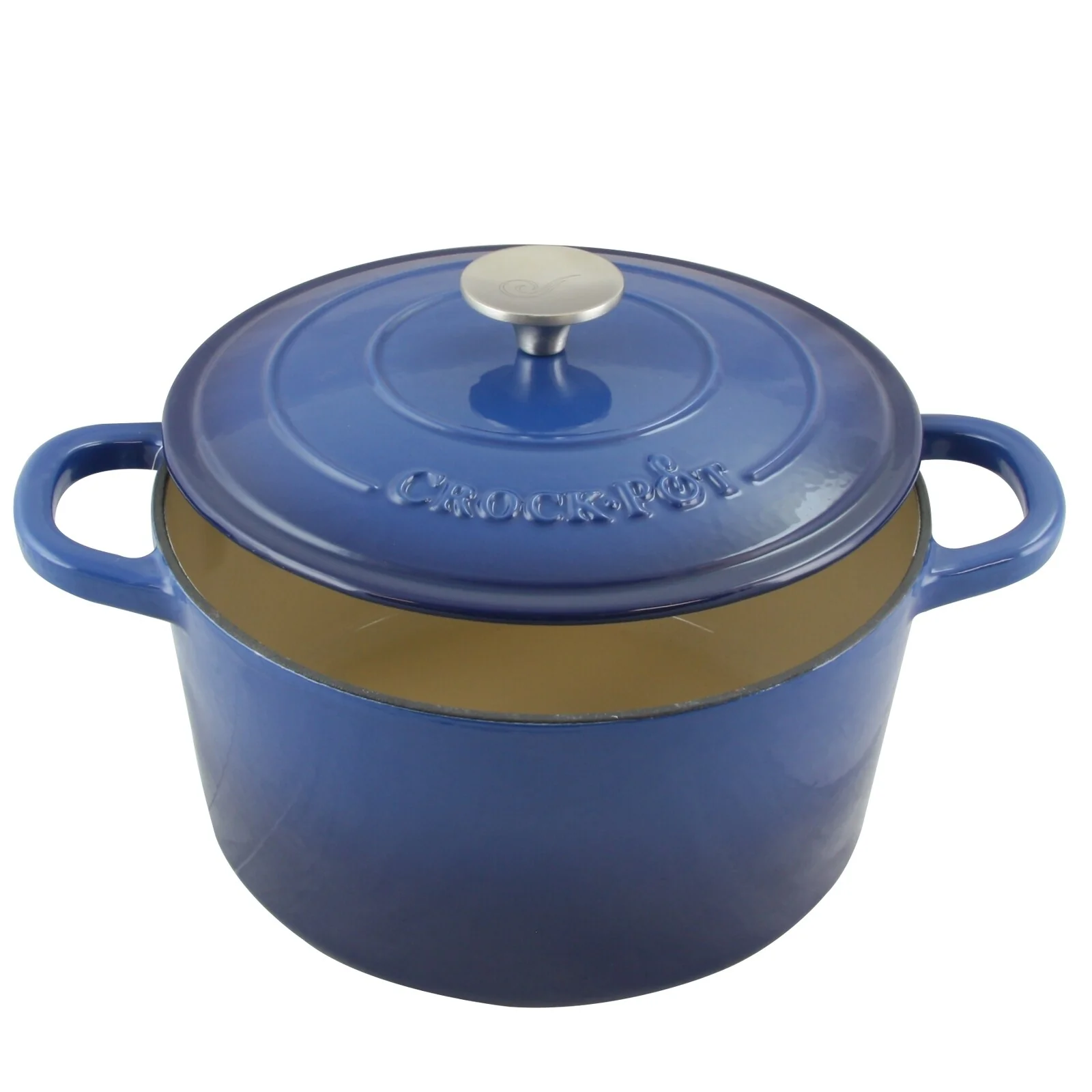 This 5 Quart Cast Iron Dutch Oven with a Self-basting Lid is ideal for delicious dinners for any occasion. The self-basting lid creates a continuous basting environment for more flavorful meals. The Dutch Oven distributes and retains heat evenly and allows for a multitude of cooking techniques. The oversized handles and stainless steel knob provide a sturdy grip for easy handling and carrying.Includes: One 5 Quart Dutch Oven with LidFeatures:Made of enameled cast iron with a non-sticksurface for even heat distribution and retentionPerfect for cooking, serving and storingOversized handles for easy handlingSelf basting lidEasy to clean and rust freeHand wash recommended