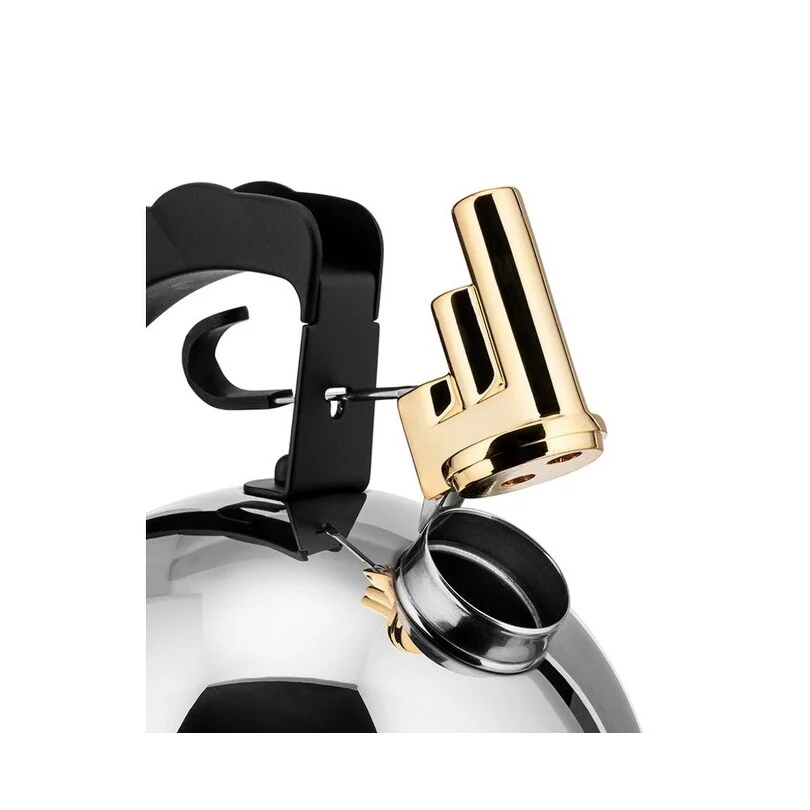 The 9091 water boiler by Richard Sapper was the first designer kettle by Alessi and introduced a new era of water boilers starting in 1983 - for Alessi and many other kettle manufacturers. It is suitable for electric, gas, and induction stoves. The actual heart of the water boiler are the brass pipes whose tubes create polyphonic sounds (mi and si) and a harmonious melody as soon as the steam flows through.