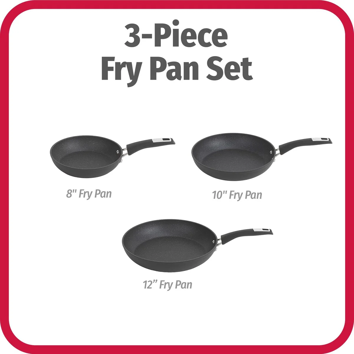 - 3-PIECE FRY PAN SET: Includes 8-in. fry pan, 10-in. fry pan, and 12-in. fry pan all with generous vessel depths so you'll always have the right pan for your needs