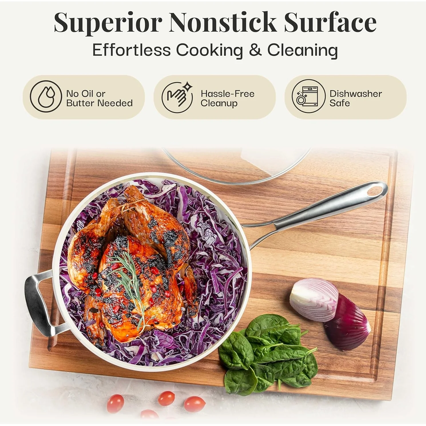 - Ultra-Nonstick Ceramic Coating: Ti-Cerama coating combines titanium strength with ceramic smoothness for effortless food release, making cooking and cleanup a breeze.