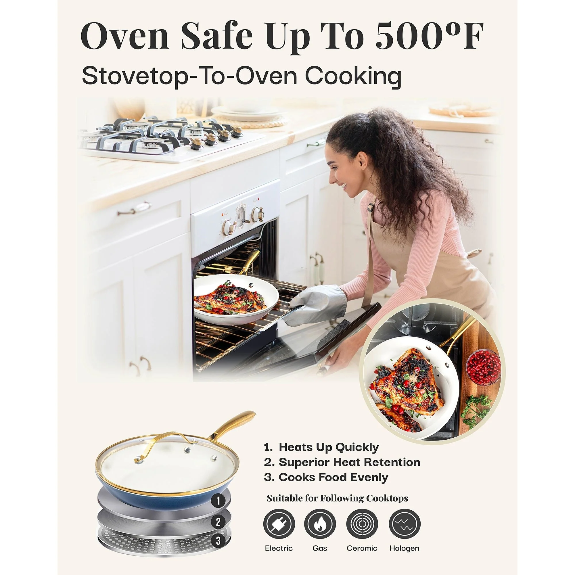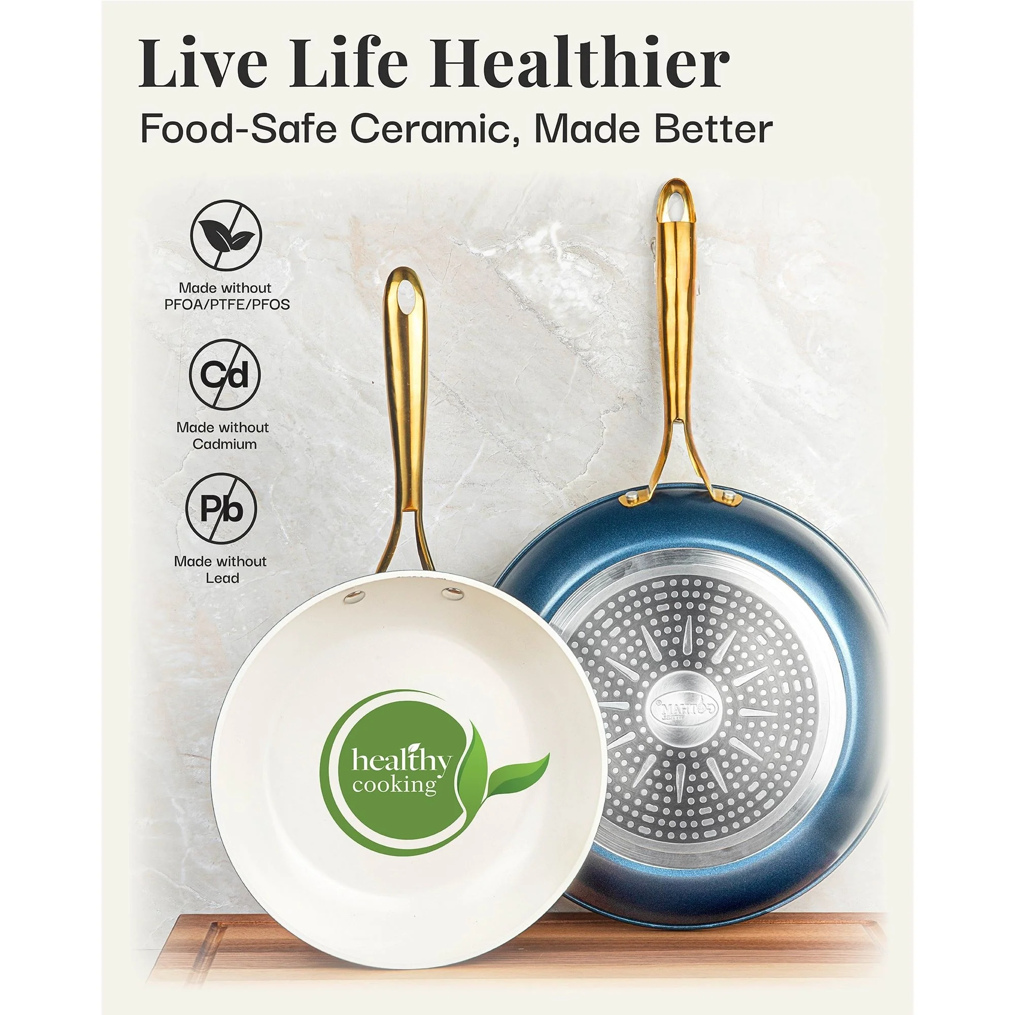 - Non-Toxic and Food Safe: Made with non-toxic, food-safe ceramic, free from harmful chemicals like PFOA, PTFE, PFOS, cadmium, and lead, for safe and healthy cooking.