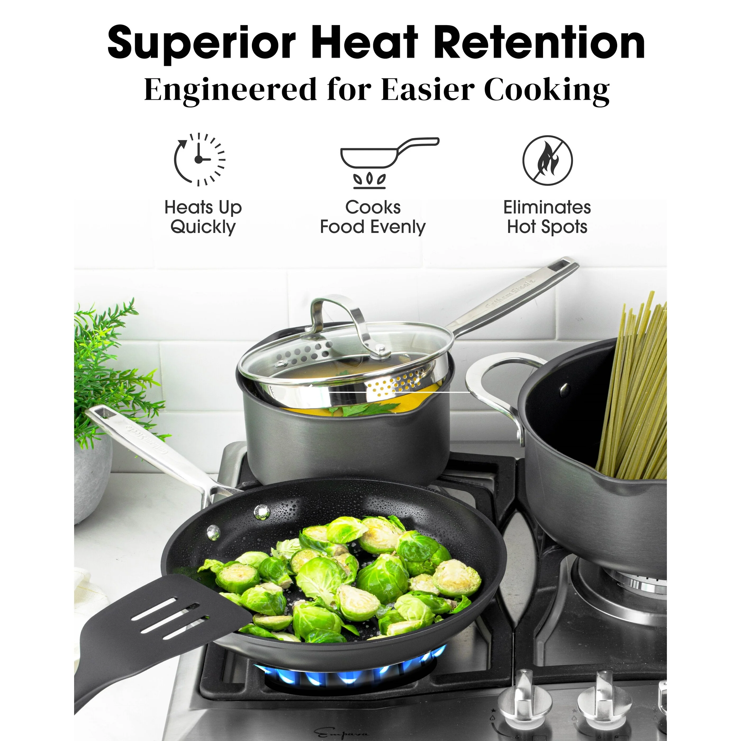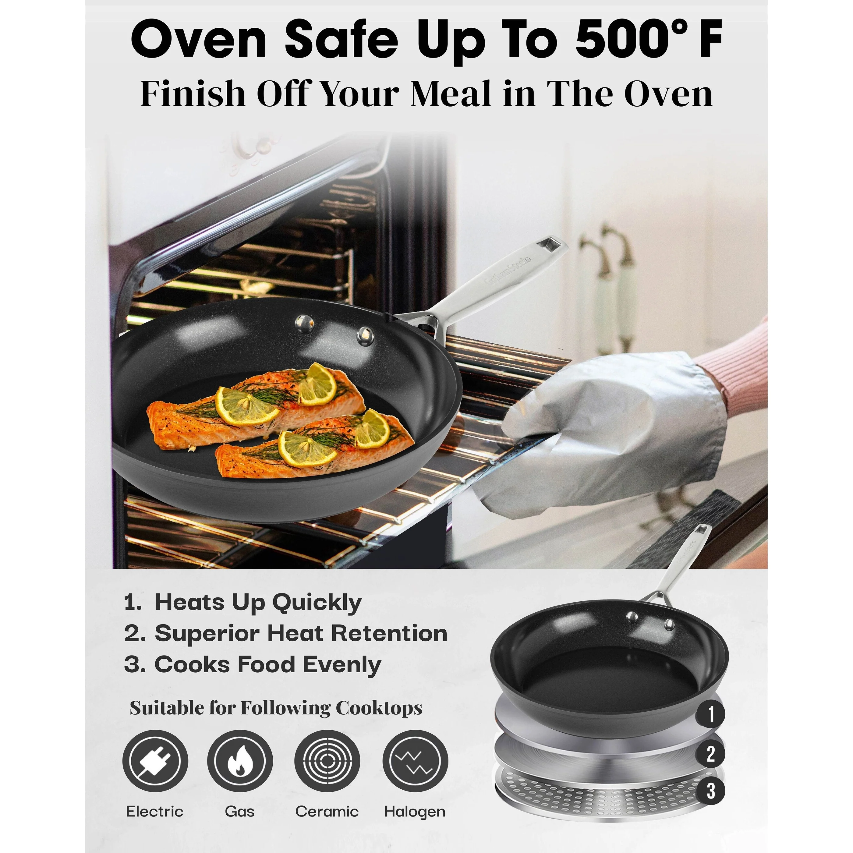 - Professional Grade Construction: Built with a heavy-duty hard anodized aluminum exterior and a ceramic nonstick interior, this skillet offers top-tier durability and exceptional cooking performance.