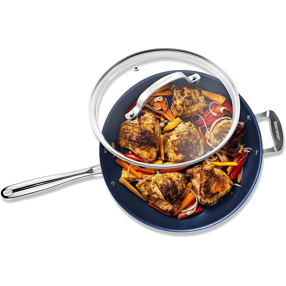 - Tempered Glass Lid: Comes with a shatter-resistant tempered glass lid that locks in moisture and heat, allowing you to monitor your cooking while keeping flavors intact. Features a stainless steel handle for easy handling.