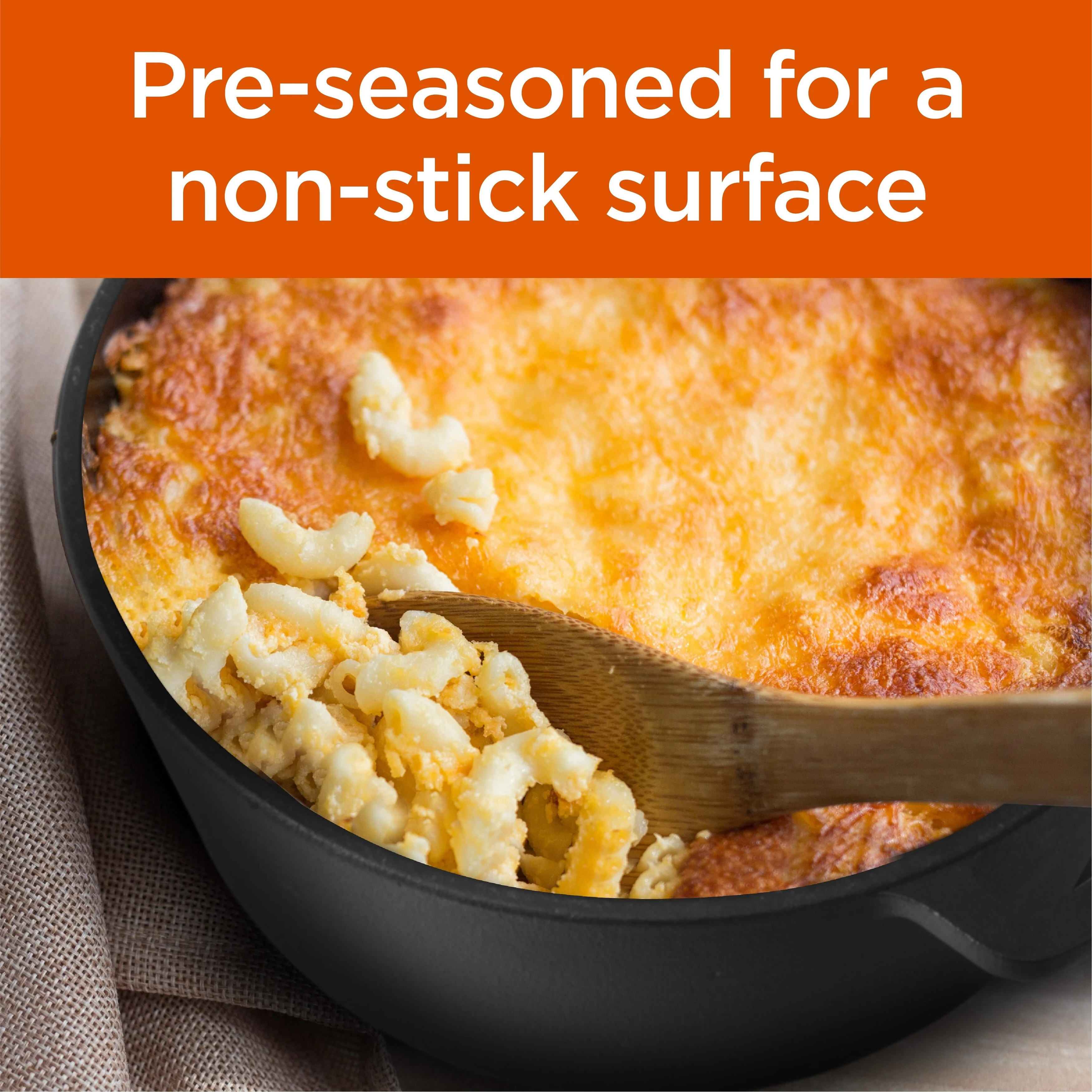 • Two products in one • Five quart Dutch Oven, perfect for lamb, chicken, pork or even risotto • Tight fitting lid doubles as 10 1/4 inch skillet for sautéing on the stovetop or baking in the oven • Super versatility - use in the oven, in the broiler or even over a campfire • Pre-seasoned to protect against rust and provide natural, non-stick surface • Easy to grip, integrated handles on both the base and lid • Thick walled construction provides excellent heat retention to keep foods warm