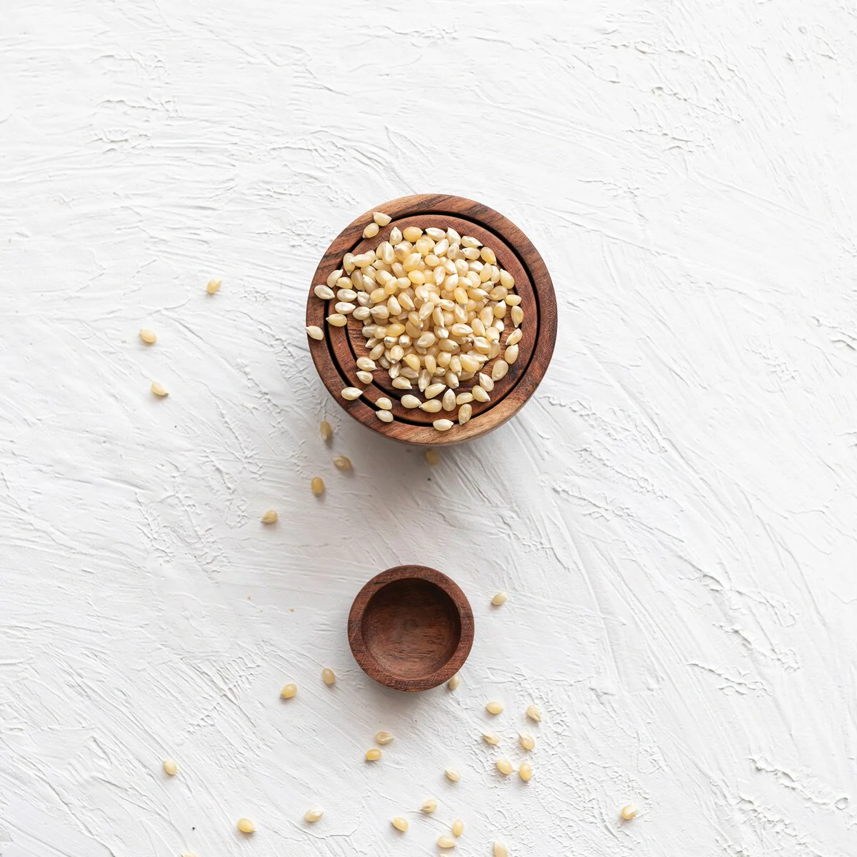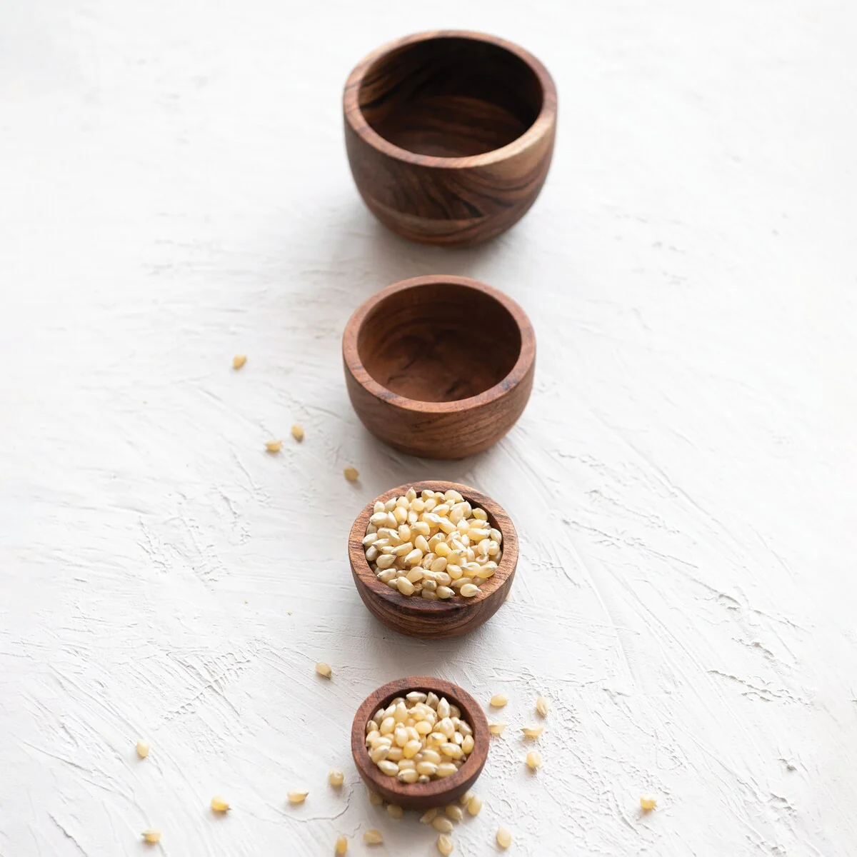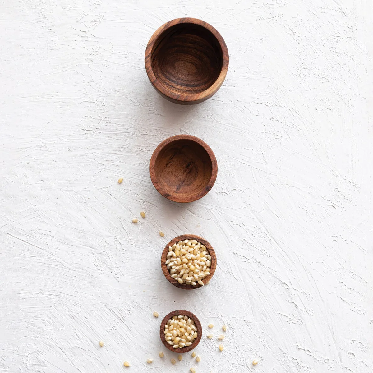 - This Scandinavian-inspired set of acacia wood nesting bowls showcases 4 descending sizes in an espresso finish