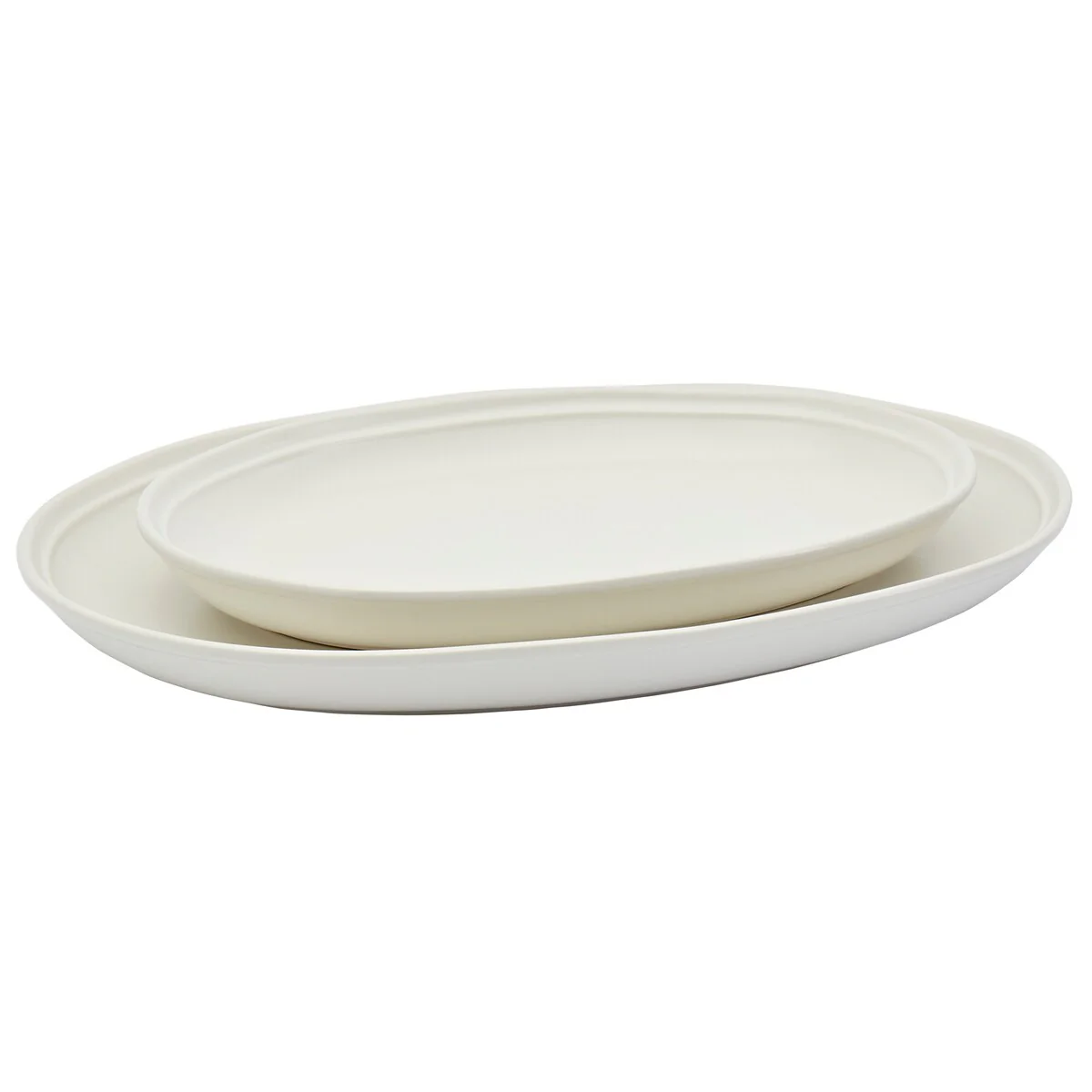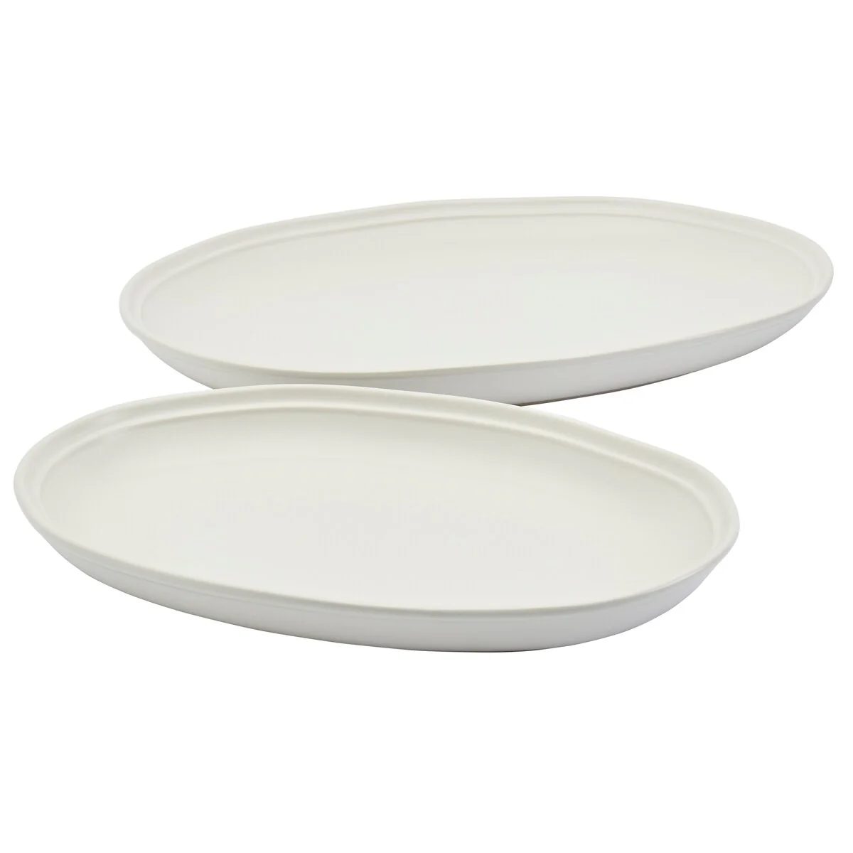 This set of 2 oval platters from Bee & Willow offers a charming, elegant look for all your appetizers, side dishes, and charcuterie spreads. The white ceramic craftsmanship is stylish and durable, designed to be dishwasher safe, and great for indoor or outdoor use.