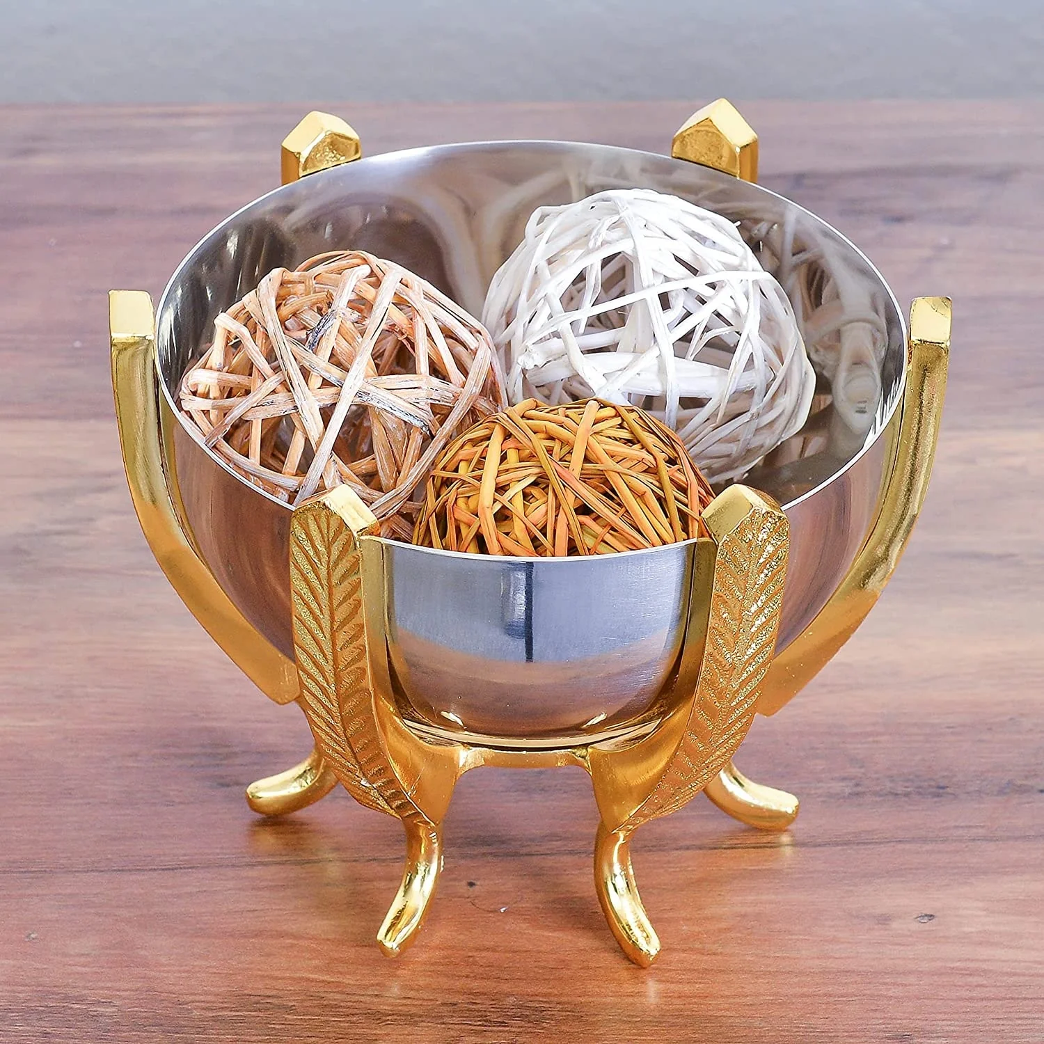 This elegant metal bowl is designed to be both attractive and functional. The shiny gold base features intricate embossed patterned elements that accent the stainless steel bowl. The overall look is “royally” elegant, complementing any home! You can use this versatile bowl throughout your home, as a: