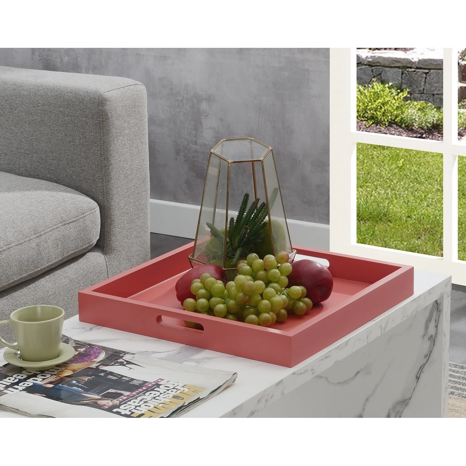 Enhance your home decor with the versatile Palm Beach Tray by Convenience Concepts. This tray infuses any table; ottoman; or counter space with the perfect dose of vibrant color and chic style. Available in a variety of striking finishes; the Palm Beach Tray is not only visually appealing but also practical. Its lightweight design and cut-out handle on both sides make it easy to transport around your home. Adaptable for many uses; this multi-purpose tray can be styled as an elegant decorative piece or a functional serving tray. Expertly crafted from durable manufactured wood and coated with non-lead based paint; this tray is designed with easy maintenance in mind. Whether you're serving guests or simply adding a pop of color to your space; the Palm Beach Tray is the perfect choice to elevate your home’s aesthetic. Enjoy it's modern; stylish look straight out of the box with no assembly required.