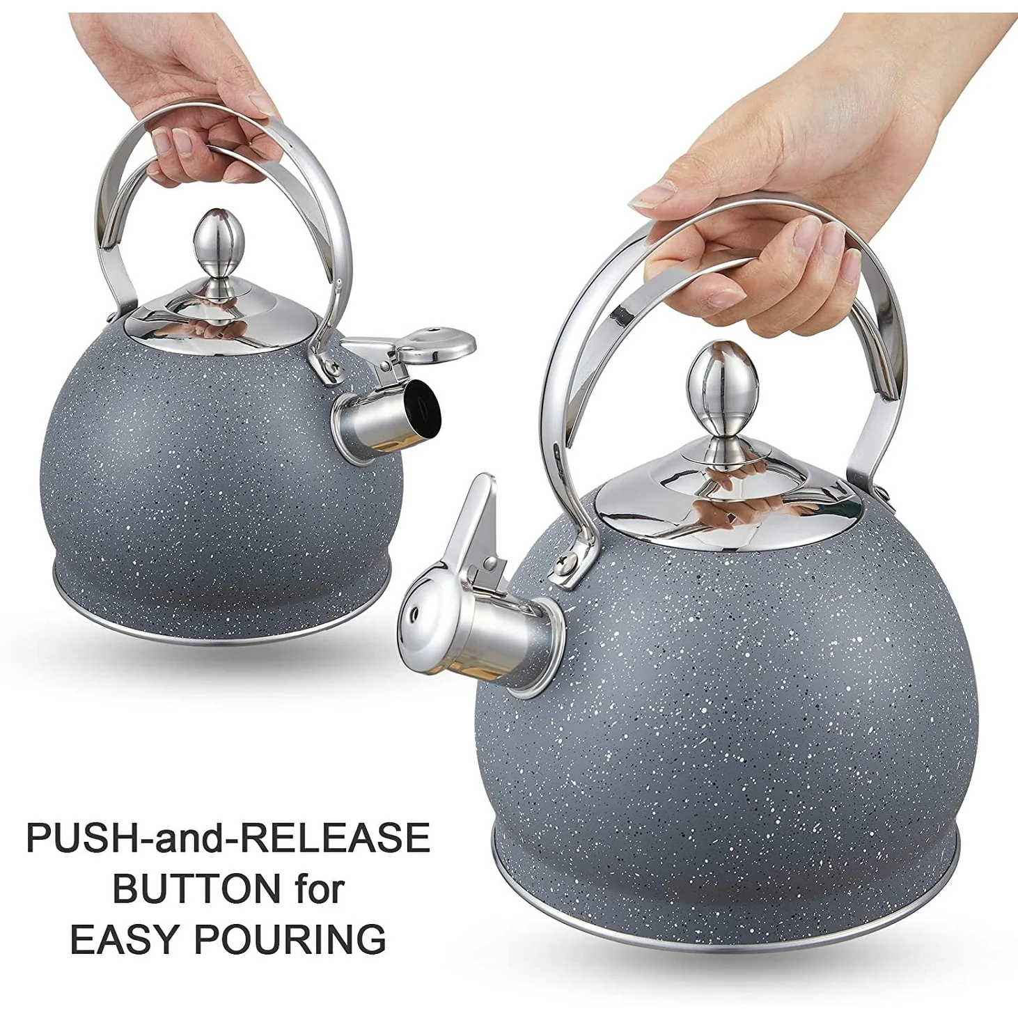 - Safety: Your safety is our main consideration. Therefore, the lid and handle of our stove top kettle are made of heat-resistant materials with a comfortable feel, and there is no need to touch any metal parts during use. A simple touch button of teapot can easily open and close the lid, ensuring that you can stay away from heat and steam while in use, ensuring your safety.