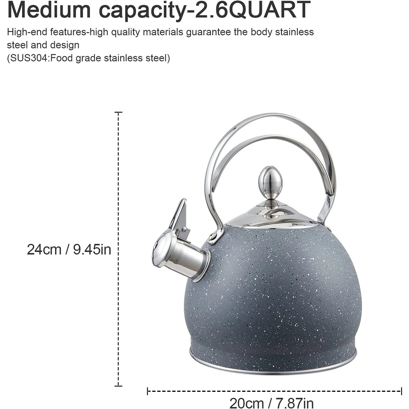 - Proper Capacity: 2.5 QT stainless steel tea kettle is saves your time and energy, suitable for family use. The teapot larger opening makes it easy to fill and clean the stove top tea pot. The unique design of the opening angle of the spout can not only open the lid and fill with water, but also quickly fill with water through the spout.