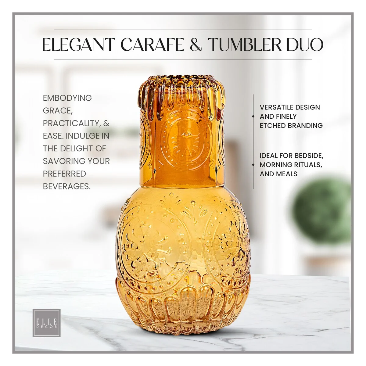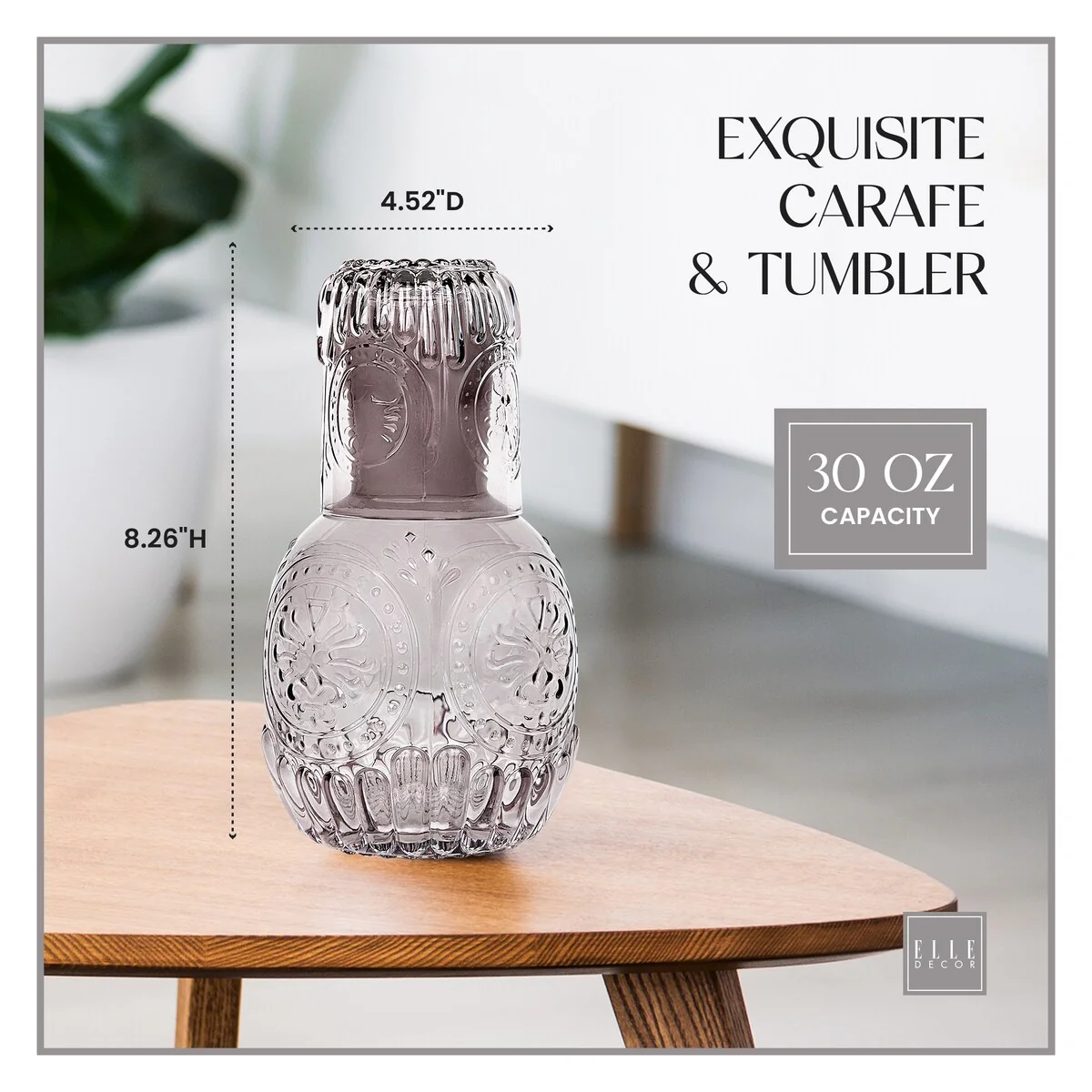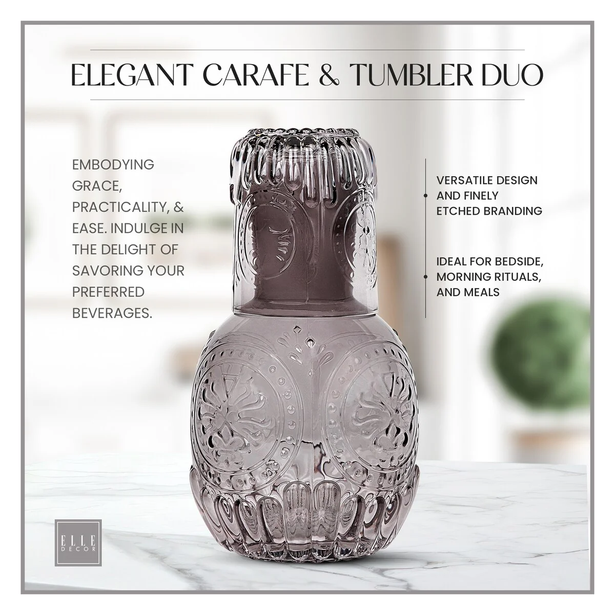 - 2-Piece Bedside Carafe Set - The Elle Décor 2-Piece Carafe with Glass cup will make a great addition to your bedside table. Expertly crafted with glass, this set includes a carafe and a tumbler that serves as a lid to keep water clean for drinking and quenching thirst in the middle of the night.
