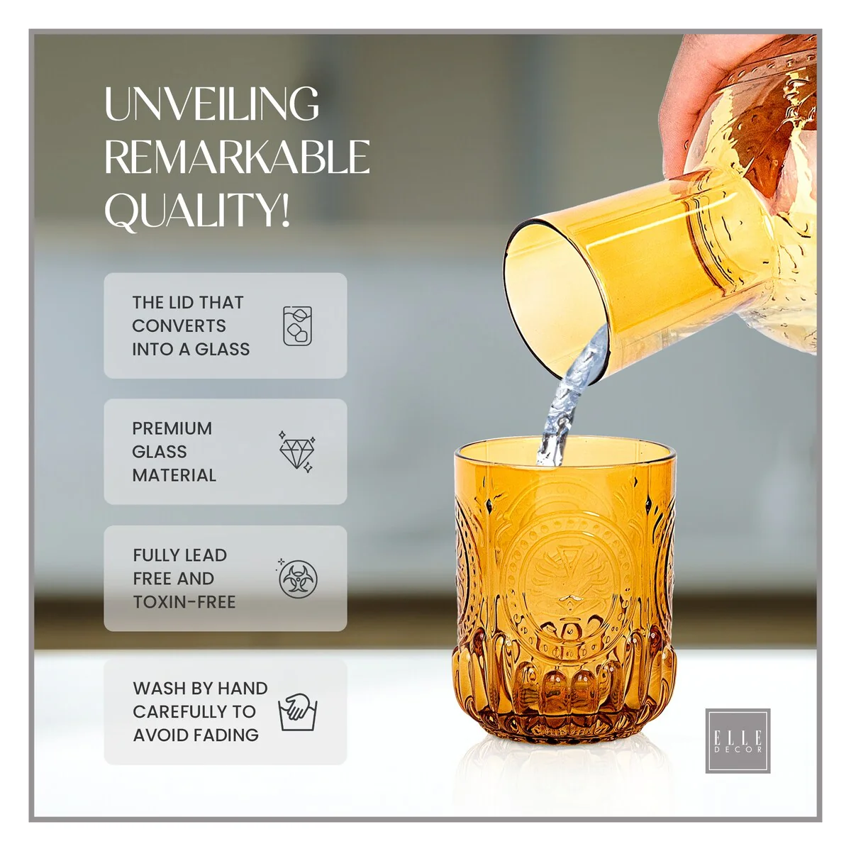 - Retro Relief Design - Our bedside carafe bottle and glass water drinking glass set features a contemporary design that is both sophisticated and visually pleasing.