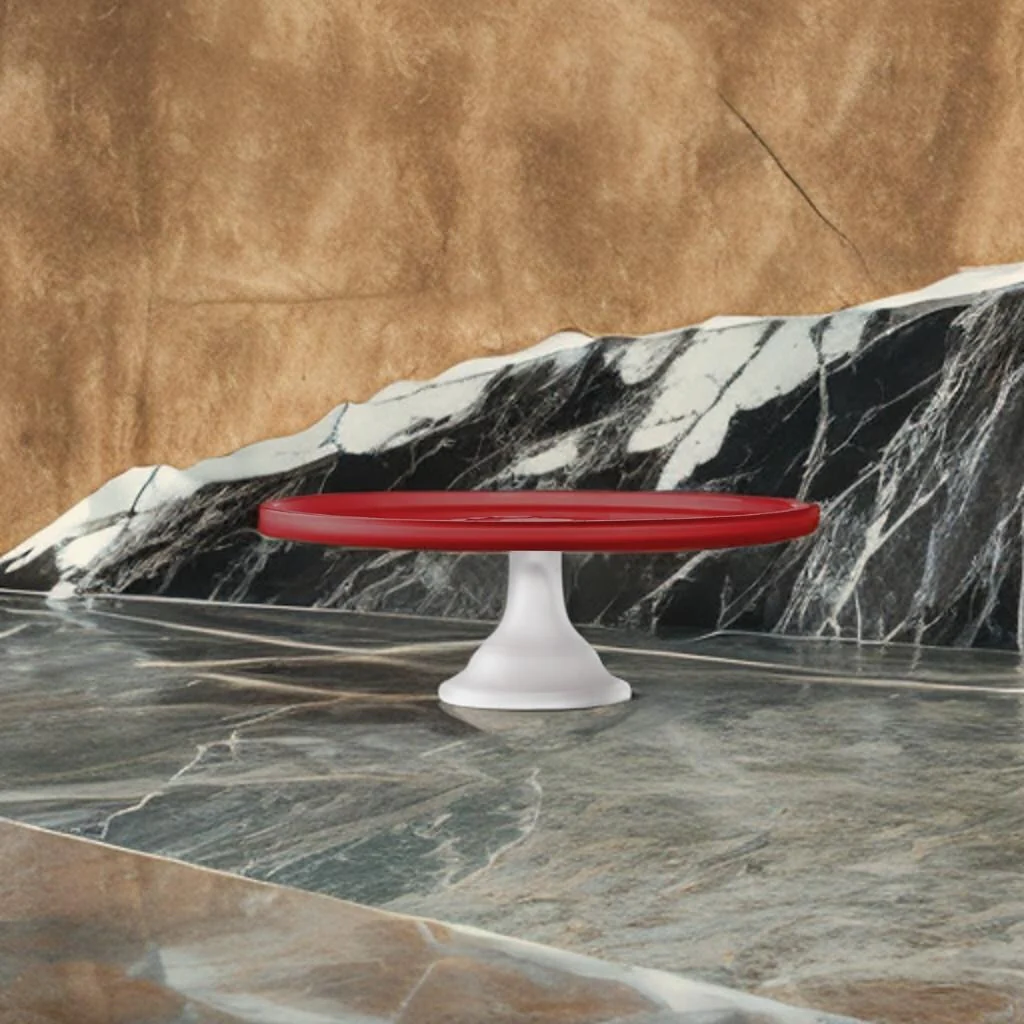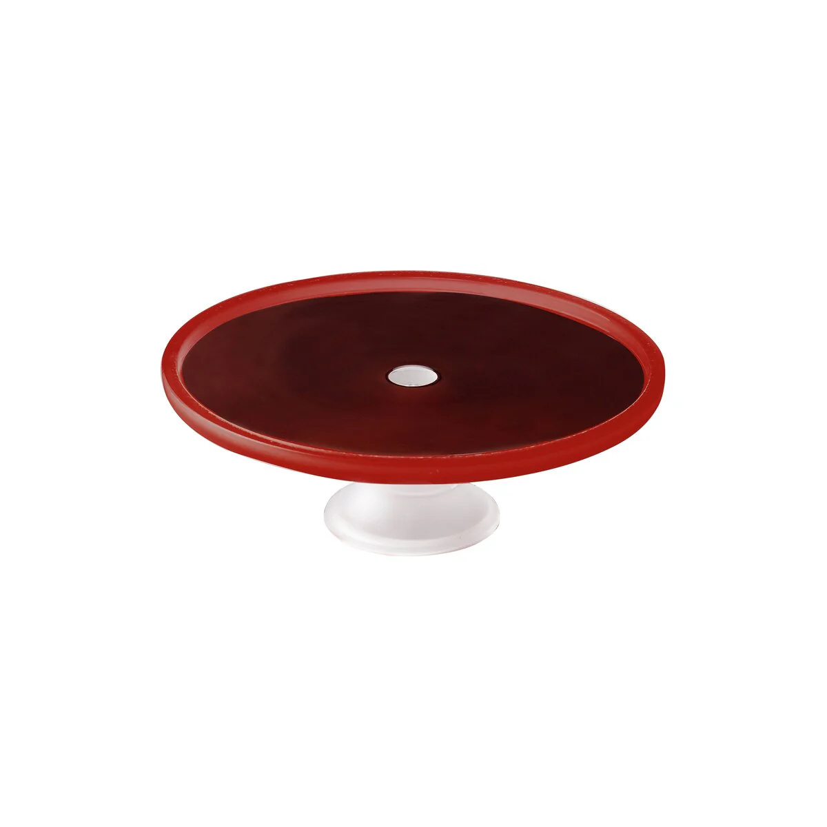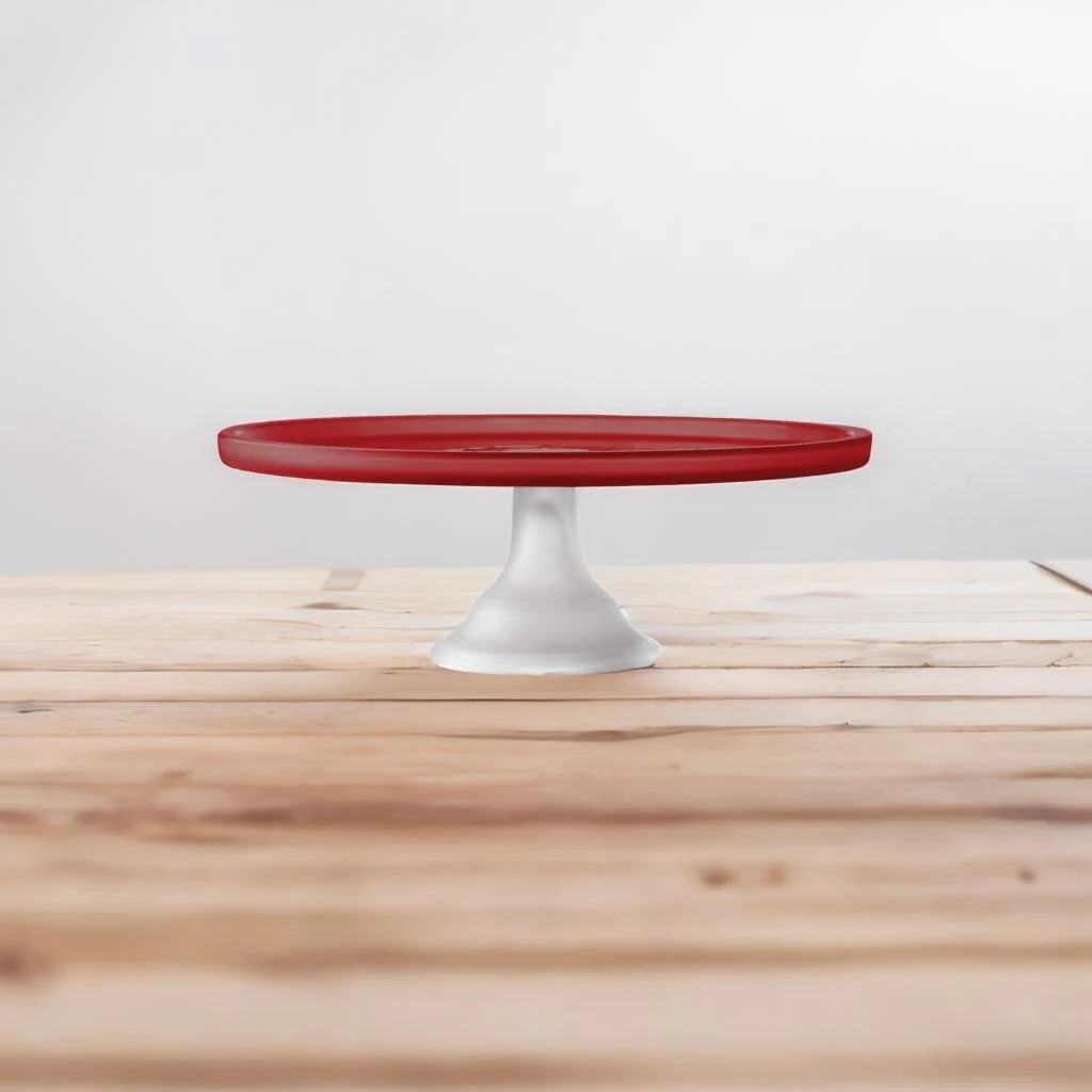 - Versatile and Elegant: The elle décor Glass Cake Plate Stand is a stunning addition to your kitchen and dining decor. Made of frosted glass with an red top and white bottom pedestal, this cake stand measures 11.81'D X 4.33'H, making it suitable for cakes less than 11 inches in diameter.