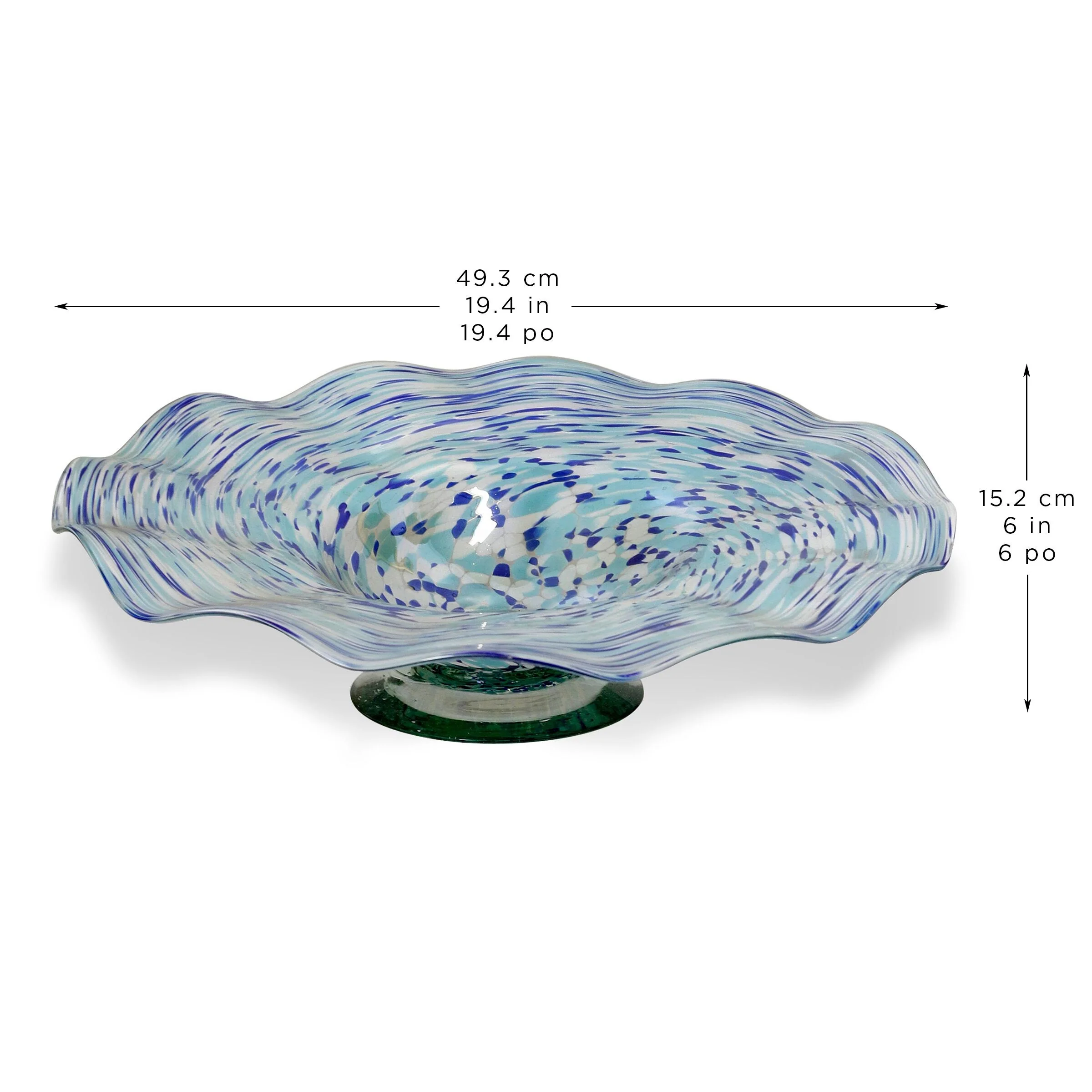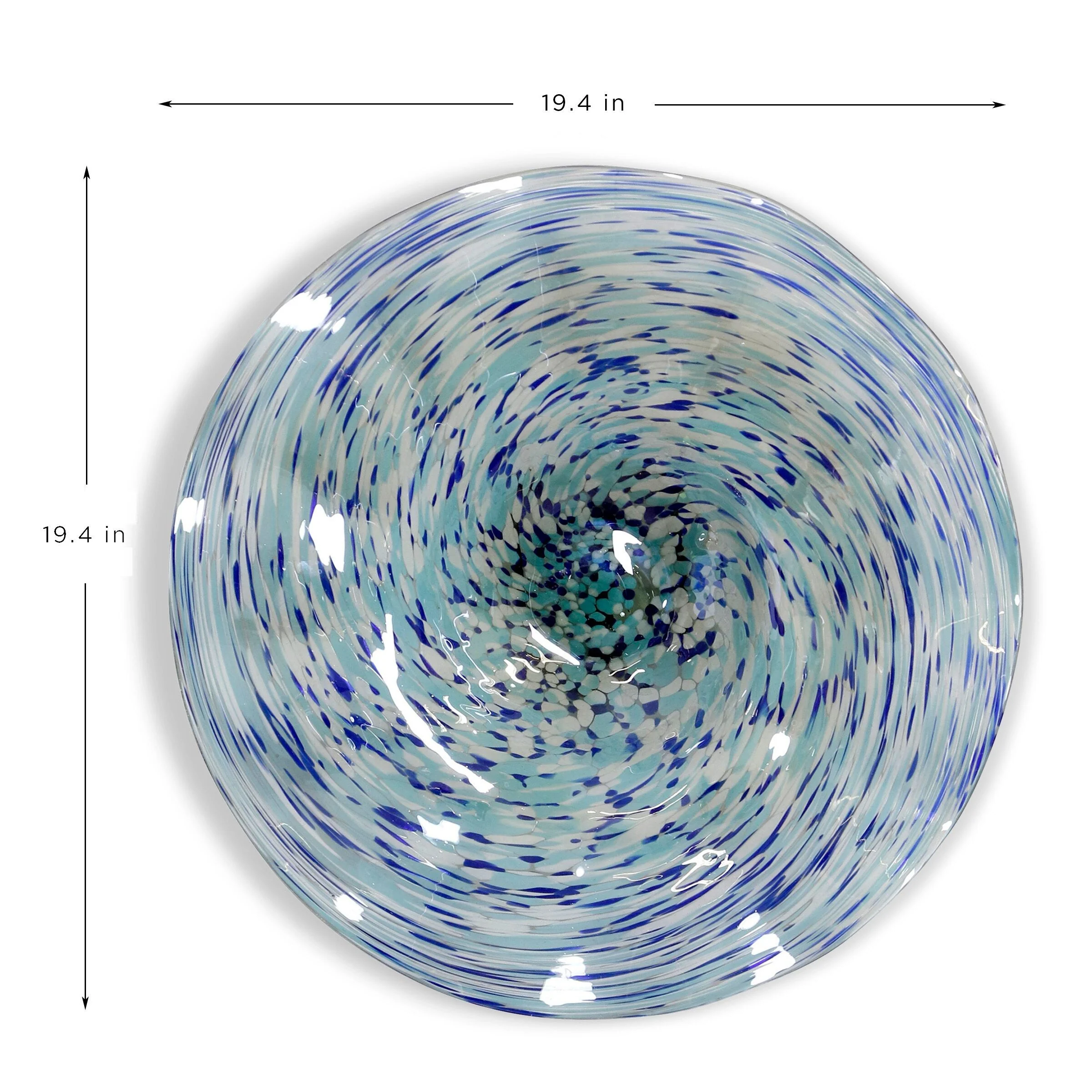 - This is a large platter with twisted spots that are blues and white and then finished with a shiny luster which creates a truly elegant piece.