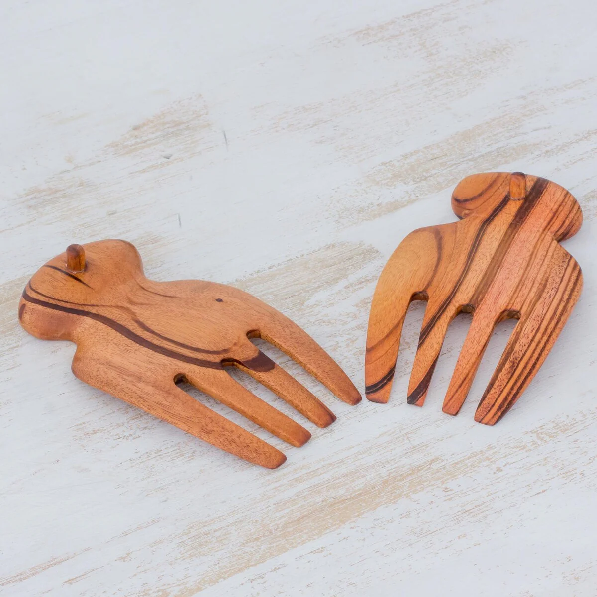 Spice up your meal with these handcrafted salad servers. Made by the talented wood carvers of the Peten Wood Artisan Sculptors, the utensils are made from jobillo wood, a local wood in the artisans' homeland of Guatemala.