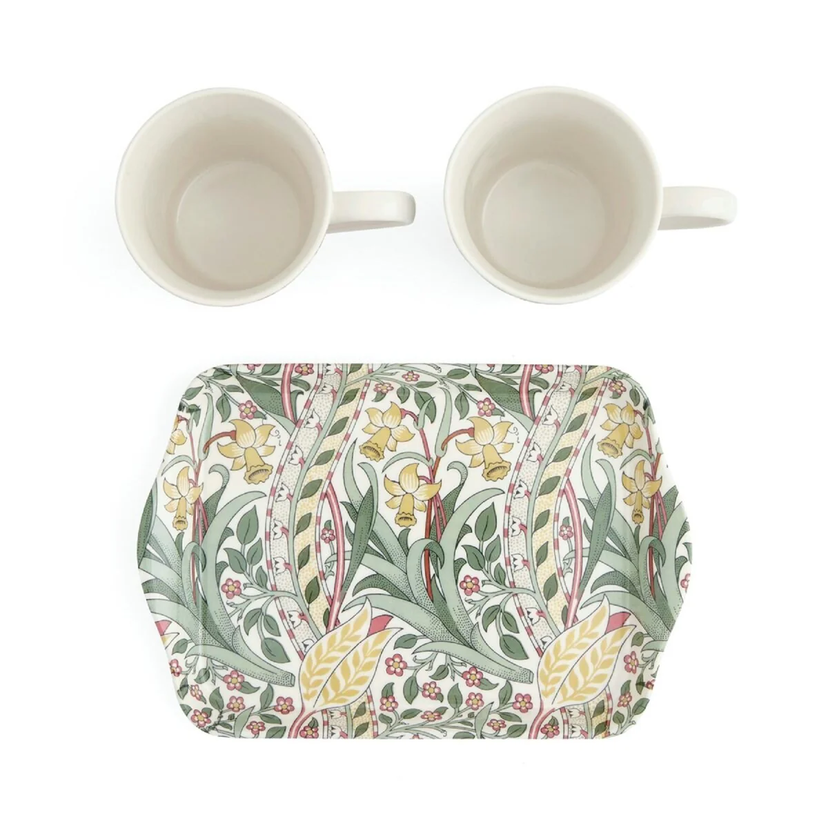 - Charming Coordinated Design: Bring a touch of sophistication to your serving routine with this floral porcelain mug and tray set, showcasing three elegant Morris & Co. patterns in soft, nostalgic tones.