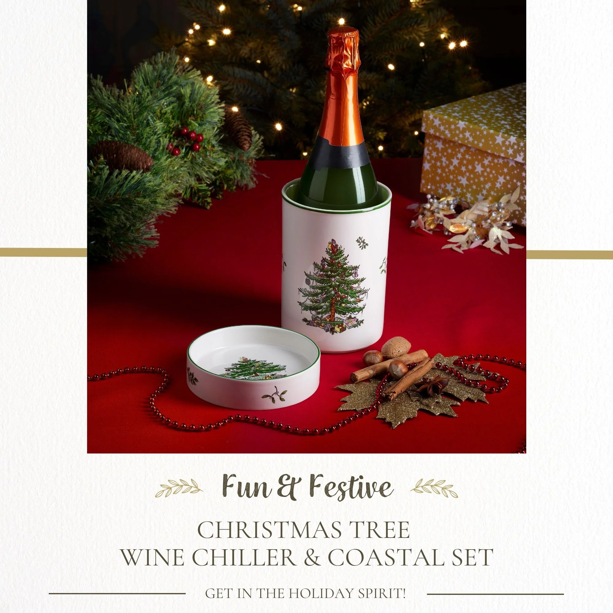 - Festive Design: The Spode Christmas Tree Wine Chiller and Coaster Set showcases the iconic Christmas tree motif, adding distinctive charm and a festive touch to your holiday gatherings.