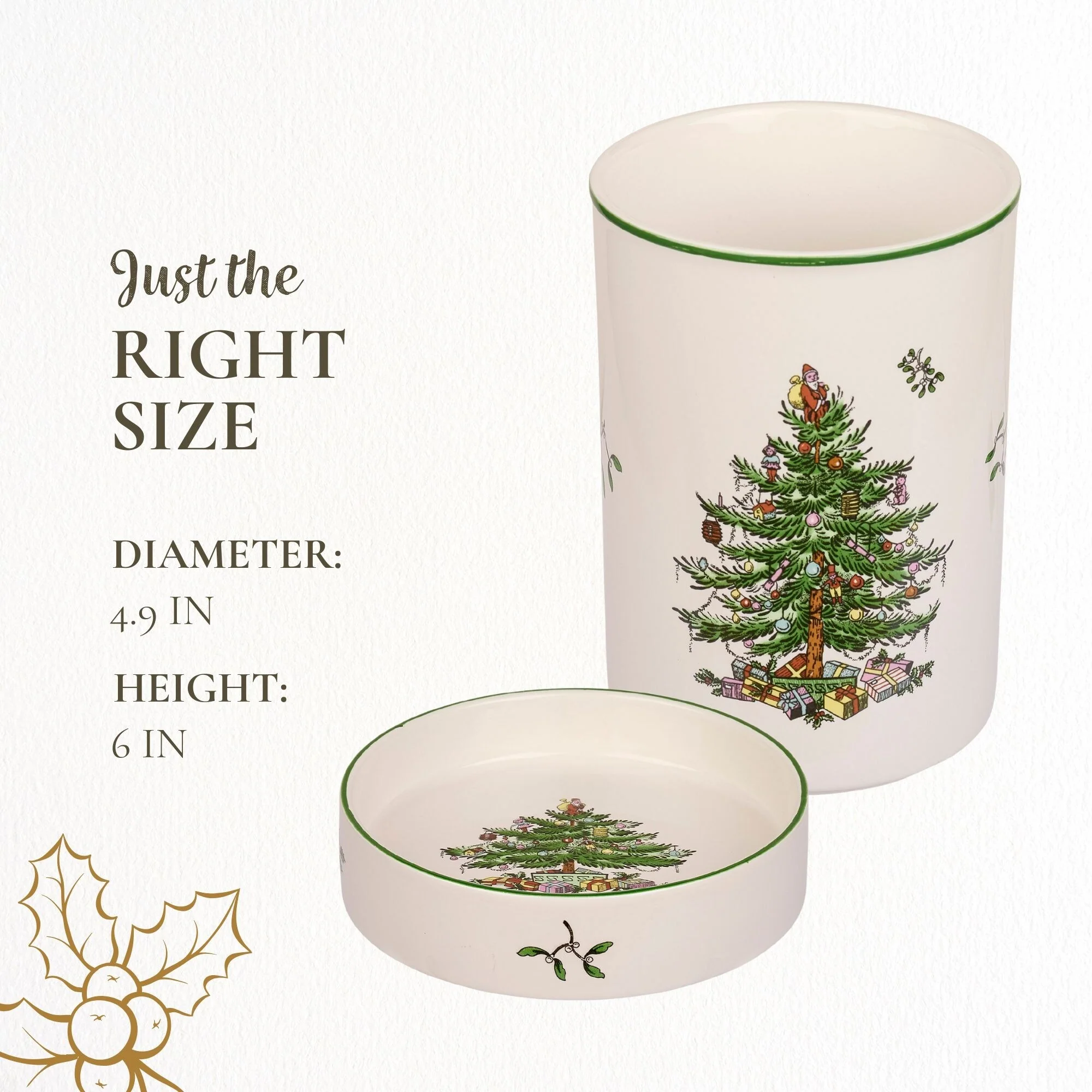 Spode Christmas Tree Wine Chiller & Coaster Set, Dishwasher, Microwave & Freezer Safe - Stoneware Wine Cooler with Festive Coaster - Hostess Gift for Holiday Entertaining - New