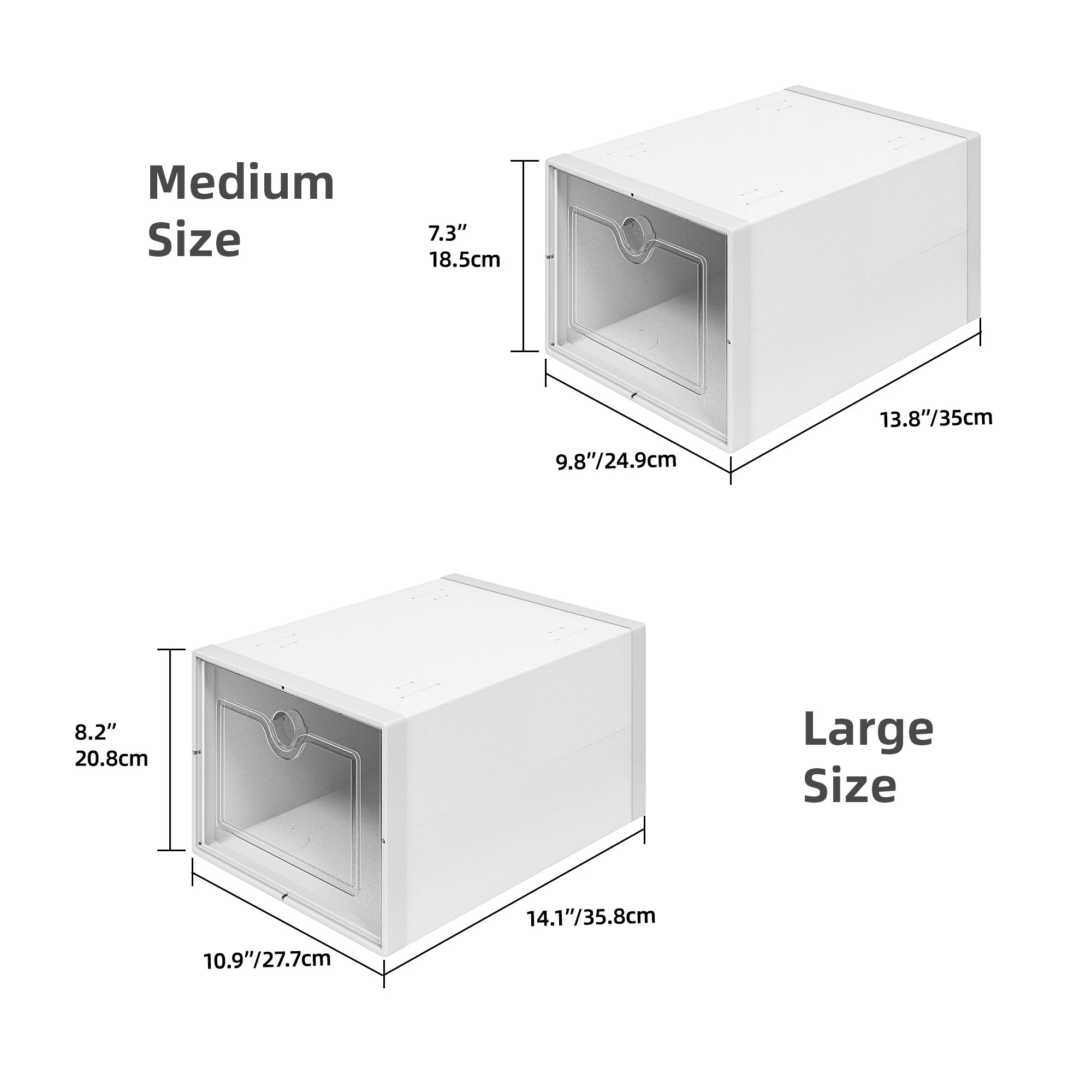 - Box Dimensions: Each box features dimensions of 13.8''L x 9.8''W x 7.3''H; Accommodates up to US Men's size 12 and US Women's size 13