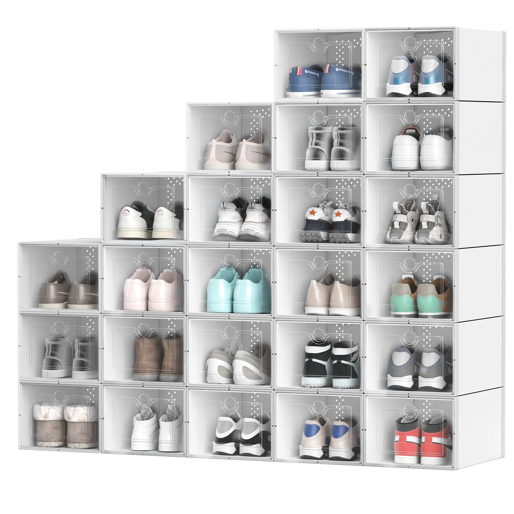 - Space Saving: Great for conserving closet space; Keep a set of stackable shoe boxes in your closet to avoid cluttering up living space and keeping your area neat & organized