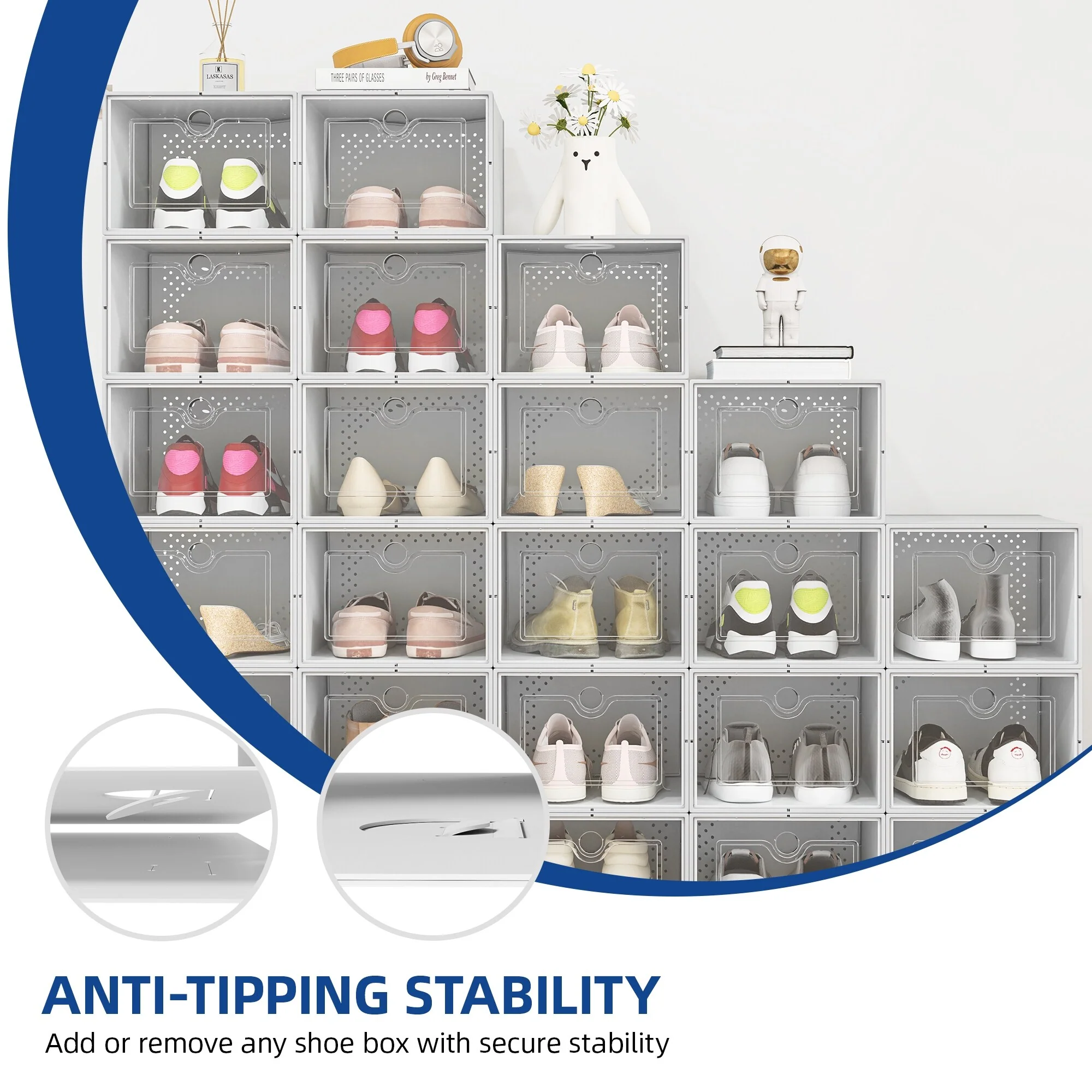 - Multifunctional Use: Ideal for storing sandals, running shoes, flat shoes, high heels (Not suitable for big size shoes or AJ); You can also store other items such as cosmetics, clothing, electronics, etc
