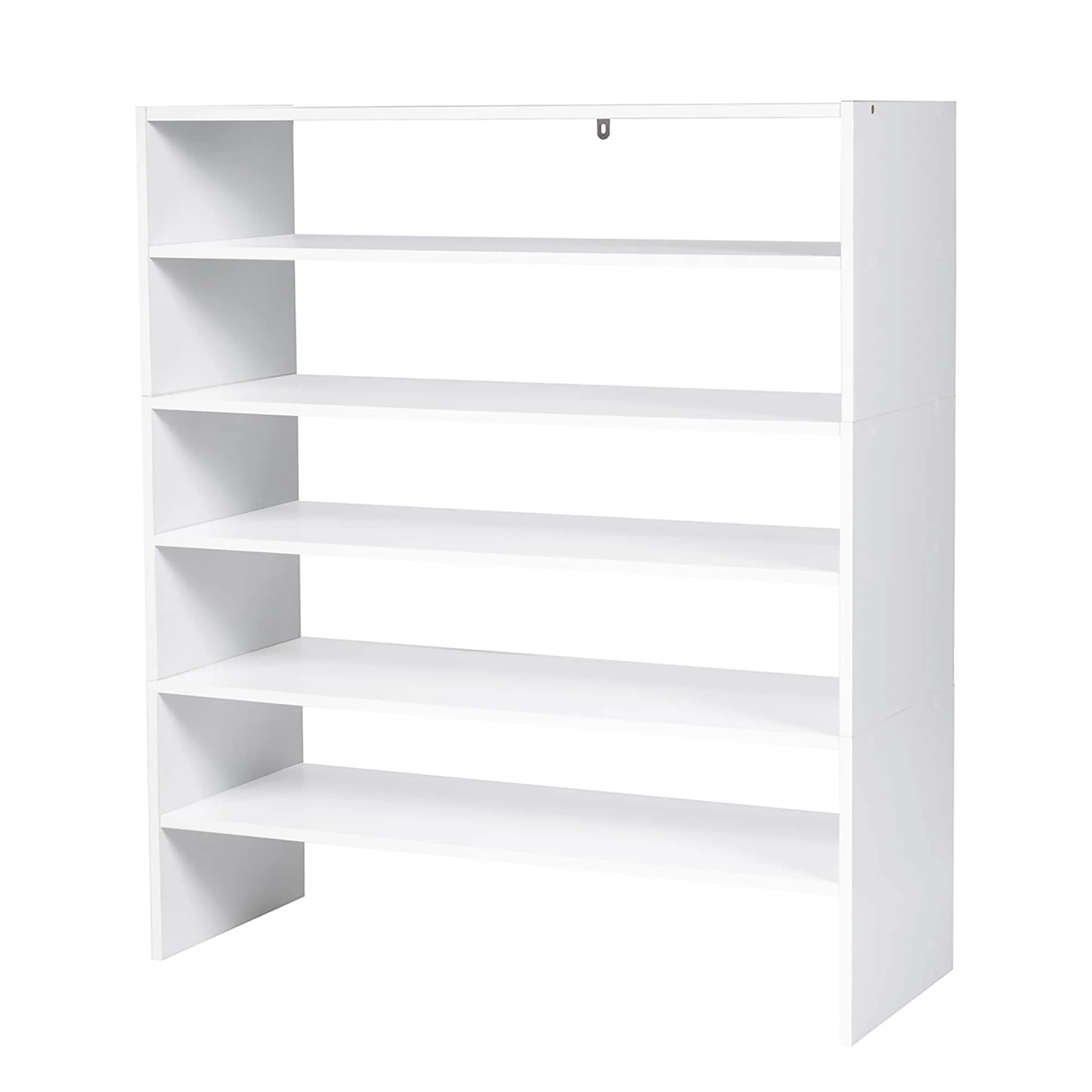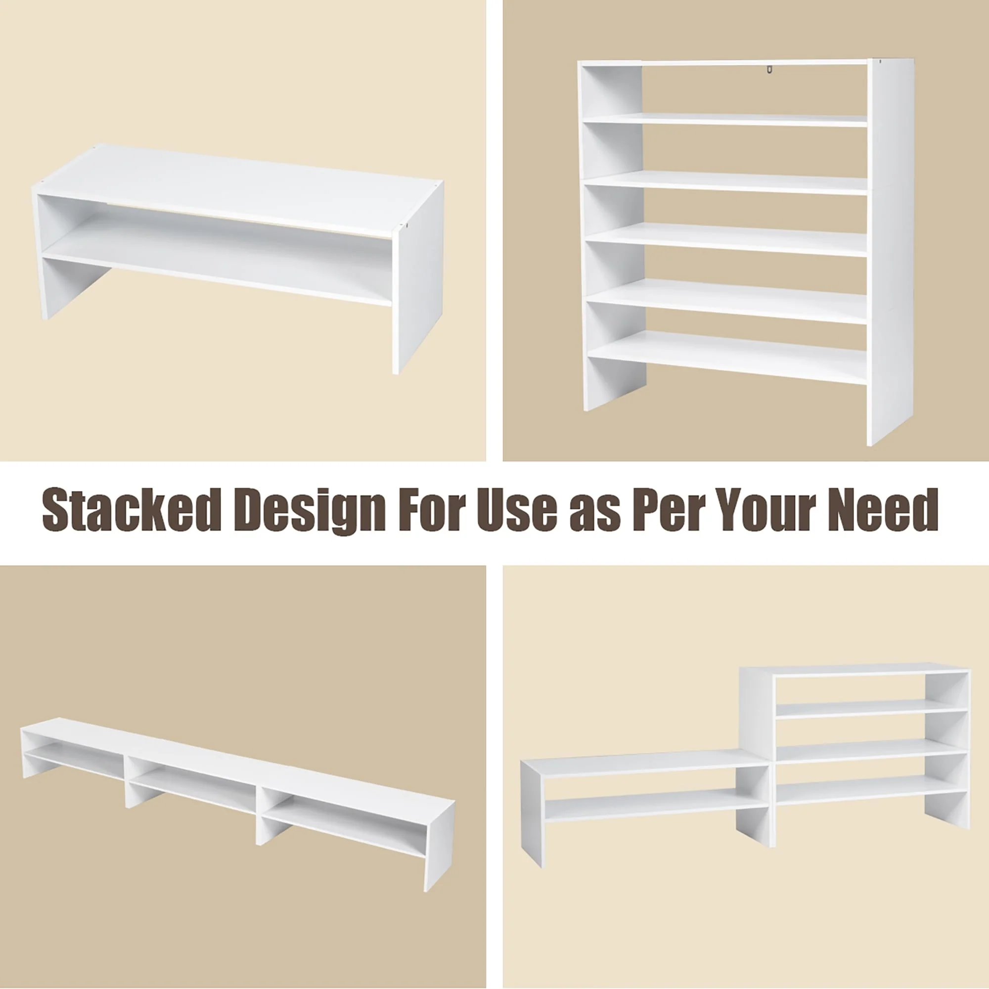 Our shoe rack consists of 3pcs 2-tier storage shelf provides enough storage space for you. Different from other stackable shoe racks, this shoe rack is equipped with a 3 stackable shoe rack to meet your needs and you can combine them freely. Each 2 tier rack can holds 9 pairs of shoes with 11 lbs weight capacity. When you combine three shelves into a 6-tier storage shelf, you can store more shoes and the weight capacity is up to 41 lbs. It can be used as a shoe rack, closet organizer and display shelf. Such a multifunctional shelf is really worth buying!
